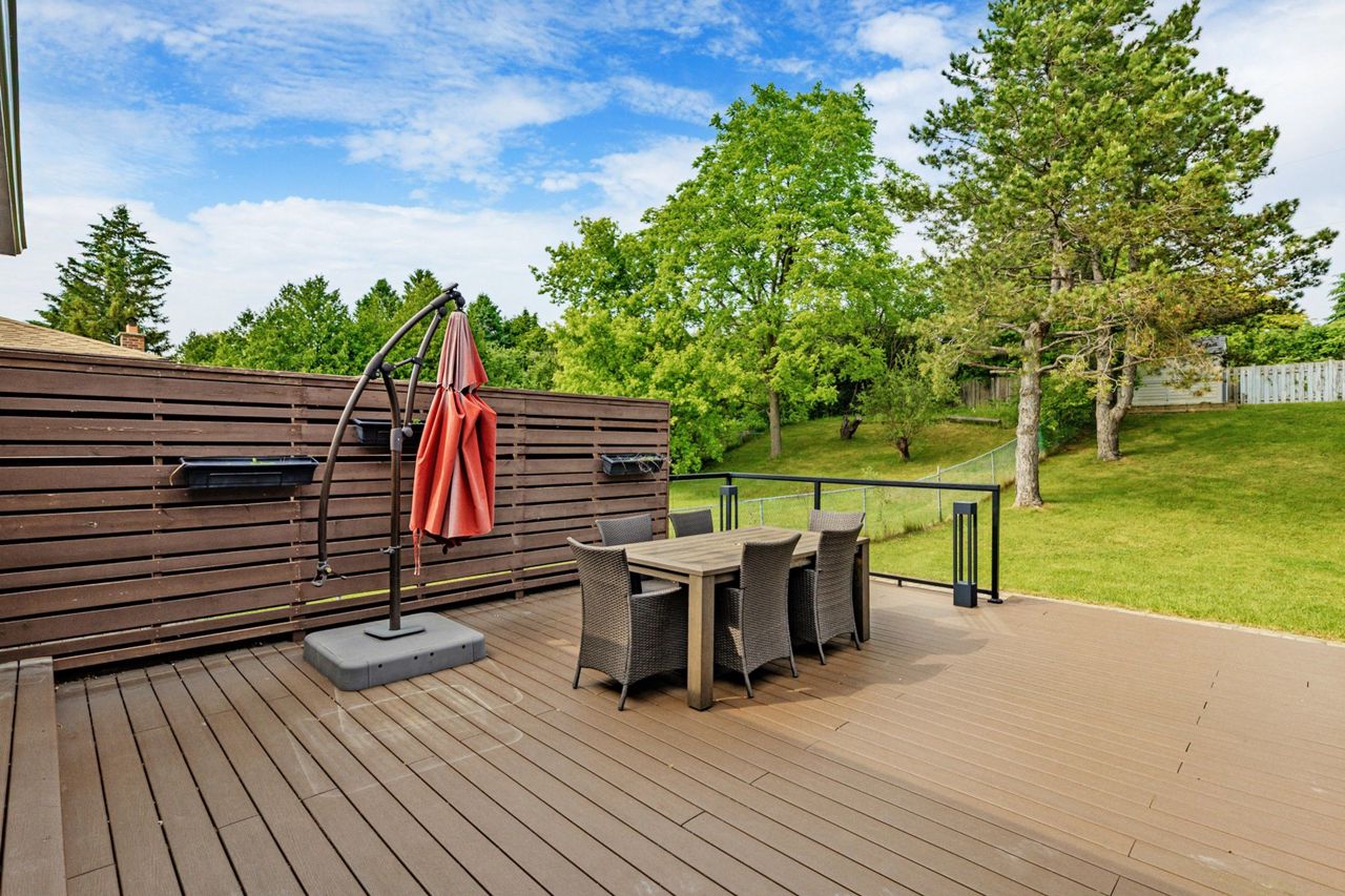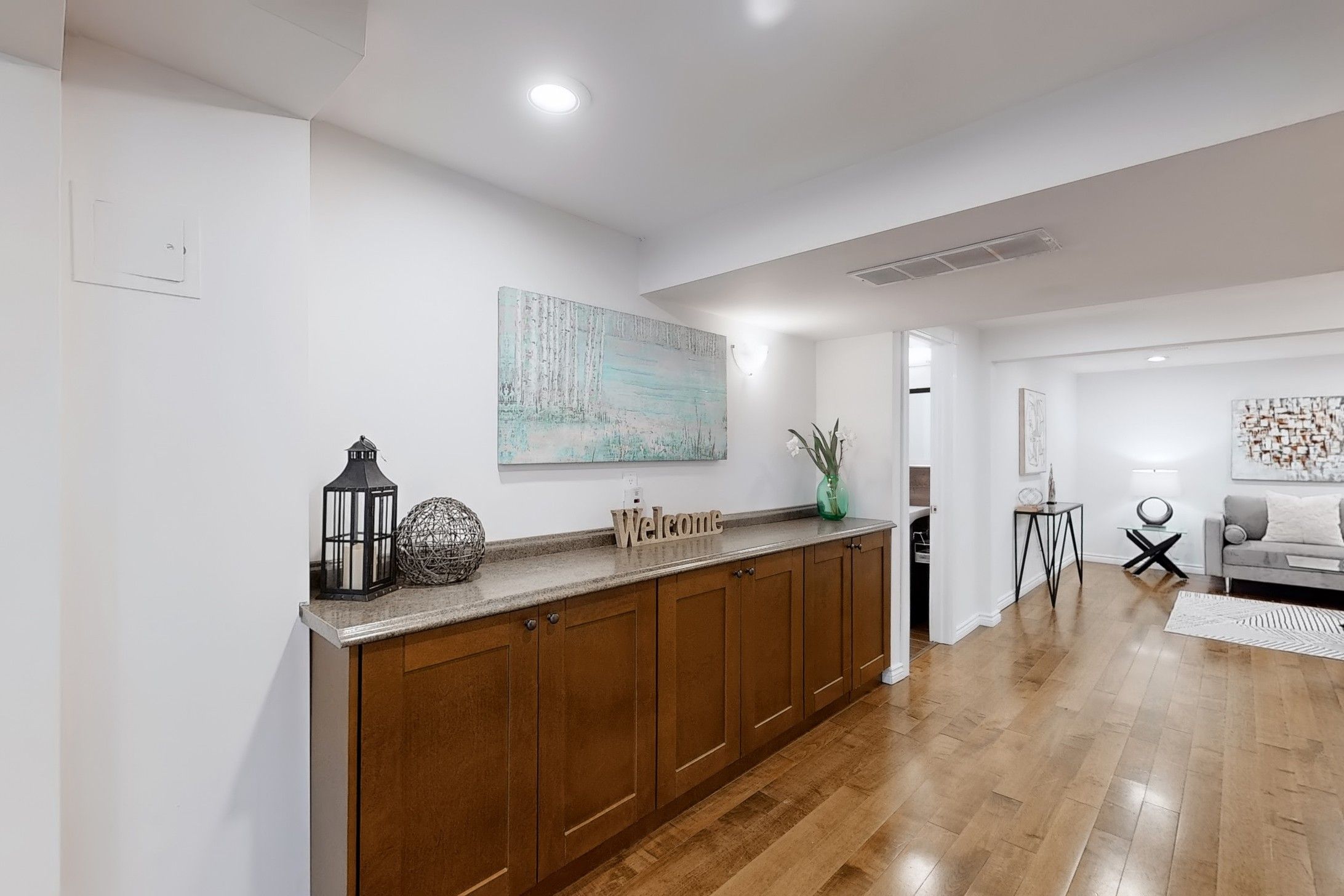 在这座精心维护的平房式住宅中体验风格与便利的完美结合,拥有4间卧室和3个浴室,坐落于理想的Royal Orchard社区。步入室内,迎接您的是开放式起居和餐厅区域,沐浴在充足的自然光线下,并饰有闪亮的硬木地板、精美的踢脚线和现代化的LED筒灯。这套住宅的核心是一间翻新的厨房,拥有不锈钢电器、定制 backsplash、石英台面和一个超大尺寸的中心岛台,真正是款待宾客的理想之选!走出家门,您可以来到宽敞的复合材料甲板,非常适合户外用餐和娱乐,将您的生活空间延伸到风景优美的后院。专业完成的地下室增加了灵活性,拥有优质的复合地板,宽敞的休闲室、3件式浴室和额外的卧室,非常适合家庭或客人入住。享受Royal Orchard生活的最佳体验,周围有风景如画的公园、一流的学校以及各种商店和餐馆,就在不远处。方便地靠近7号公路和407号公路以及公共交通,确保轻松通勤。