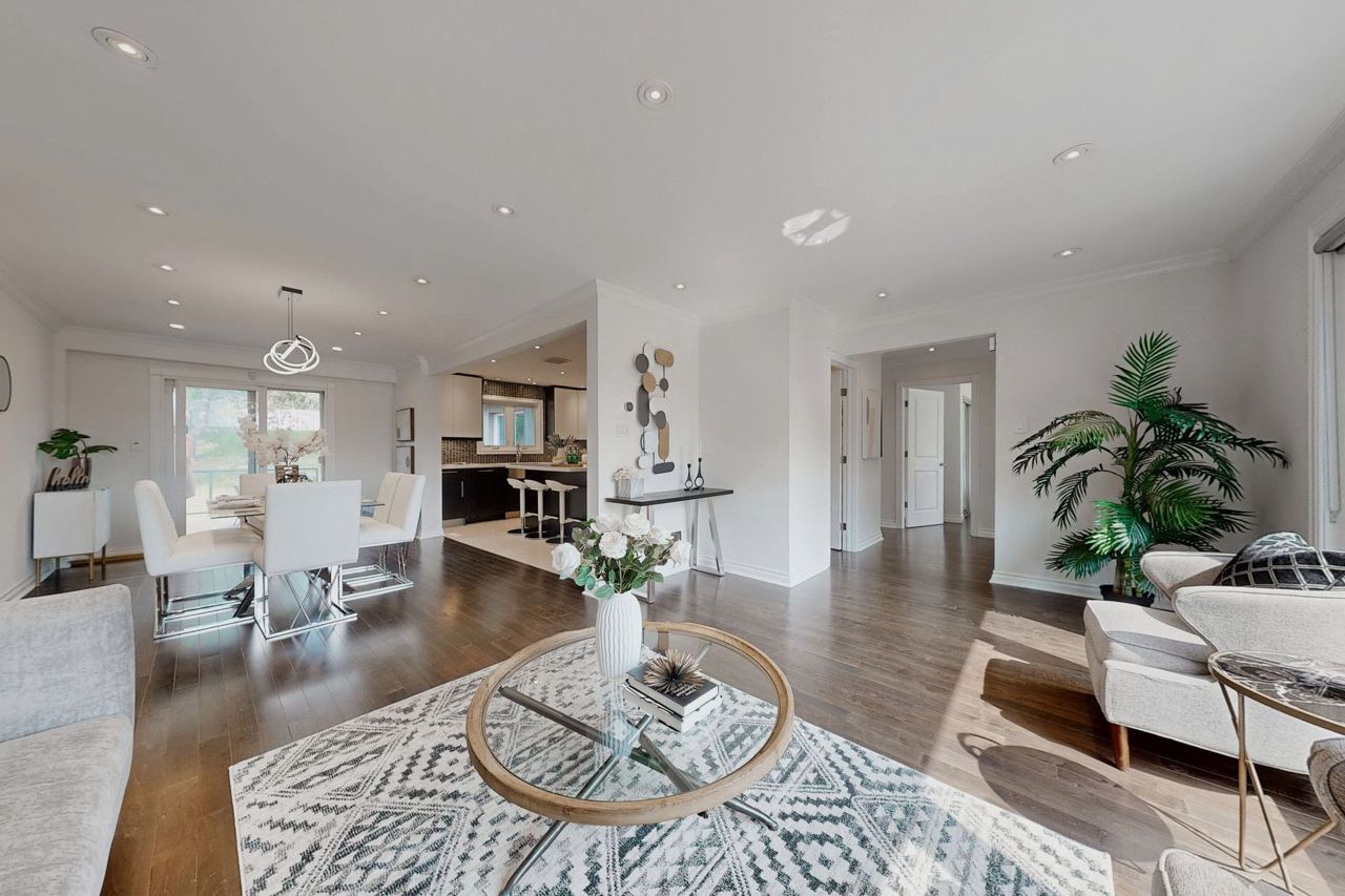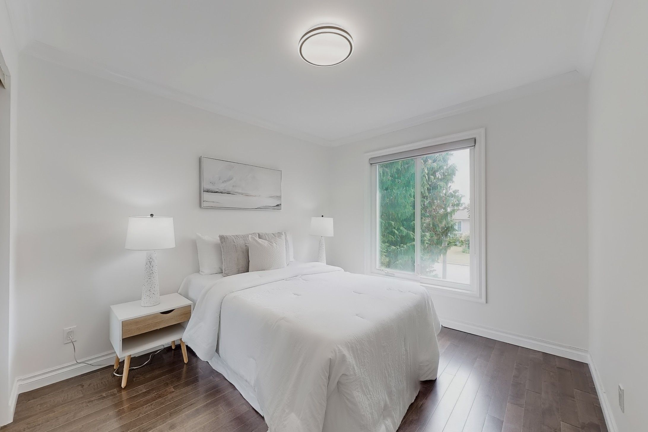 Experience the perfect blend of style and convenience in this meticulously maintained bungalow with 4 Bed and 3 Bath, nestled in the desirable Royal Orchard community. Step inside to an open-concept living and dining area, illuminated by abundant natural light and enhanced by gleaming hardwood floors, crown molding, and modern LED pot lights. The heart of this home is its renovated kitchen, featuring S/S appliances, custom backsplash, quartz countertops, and an oversized center island truly an entertainer's delight! Walk out to a spacious composite deck, perfect for outdoor dining and entertaining, extending your living space into the beautifully landscaped backyard. The professionally finished basement adds flexibility with quality laminate flooring, a generous recreation room, a 3-piece bath, and an extra bedroom ideal for family or guests. Enjoy the best of Royal Orchard living, with scenic parks, top-tier schools, and a variety of shops and restaurants just moments away. Easy access to Highways 7 & 407 and public transit ensures effortless commutes.