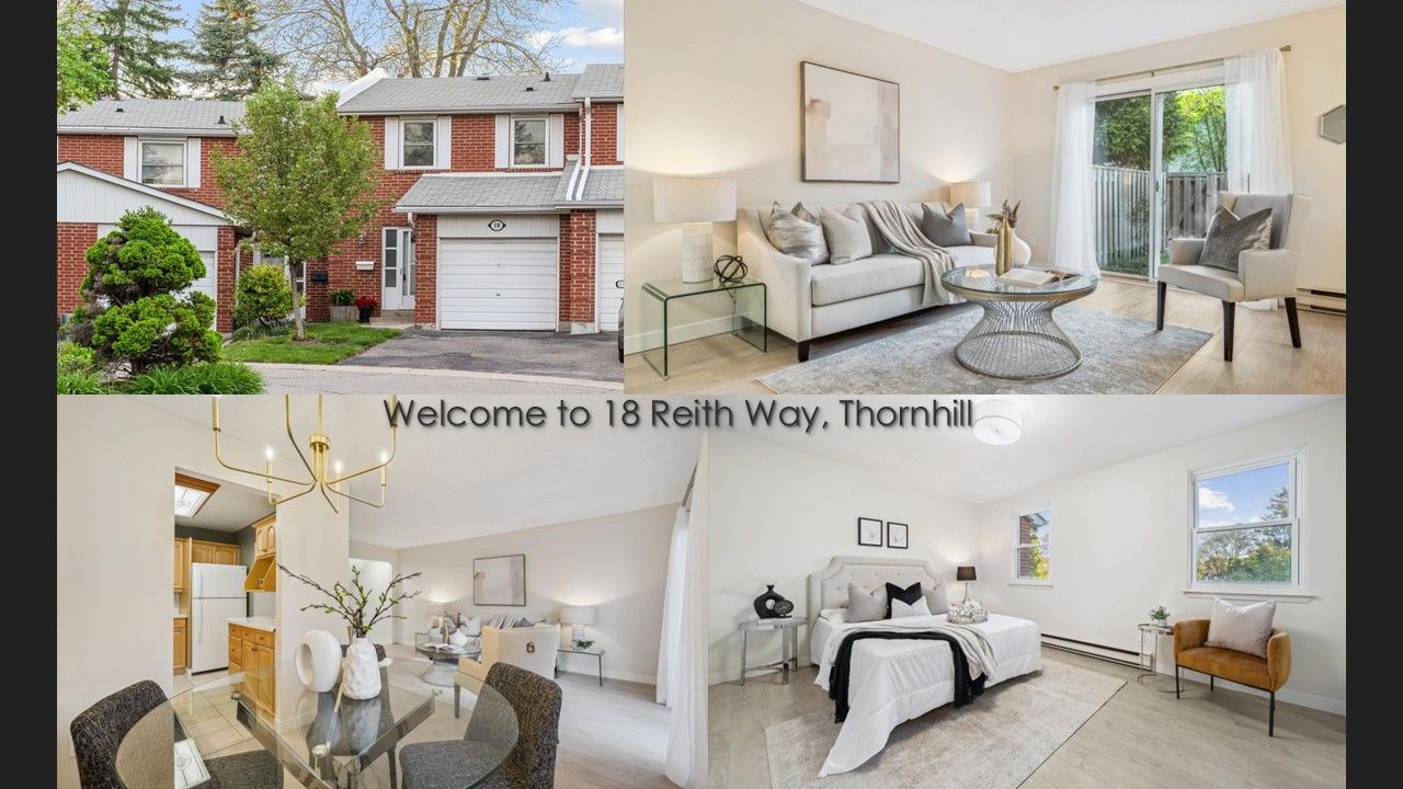 欢迎来到18 Reith Way。 位于一个儿童友好、安静的死胡同! 更新,一尘不染的3卧室、2浴室,从上到下装修好的联排别墅,坐落在Thornhill的中心地带。 非常成熟,黄金地段“Johnsview Village”。 坐落在Thornhill Bayview Ave 和 John St 的东南角。 享受32英亩郁郁葱葱的绿色空间和成熟的社区特色。 这个家闪闪发光,并配有新的豪华最宽条纹乙烯基板地板和主层和二楼的踢脚线,优质厨房,配有实木橱柜、石英台面、镶嵌水槽、咖啡吧和瓷砖地板。 翻新和升级的浴室,3间宽敞的卧室,主卧室提供步入式衣橱和大型双内置衣柜。 阳光充足的起居室和餐厅,带毛绒地毯的地下室,3件套浴室,大型洗衣房/杂物间和充足的额外存储空间。 带漂亮花园和露台的围栏后院! Johnsview Village 提供便利设施,包括; 附近有适合所有年龄段的学校,室外加热游泳池、公园、游乐场、网球场、篮球场和访客停车场。 还可以步行到一流的购物中心、Thornhill图书馆、健身中心、医疗诊所、竞技场(2个溜冰场)、Go Train、Finch地铁和YRT巴士站。 North York General Hospital和400/401/404 & 407高速公路都近在咫尺! 电费(卖家使用)$1655/年=$137.91/月。 热水箱$25.69/月。 水费已含。 公寓费用$558.50/月。 物业税$2871.56/2024。 状态证明已准备就绪。 房产上没有标牌。 所有看房需预约。 请欣赏虚拟参观,今天就来拥有这处可爱的房产吧。