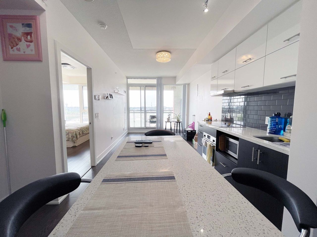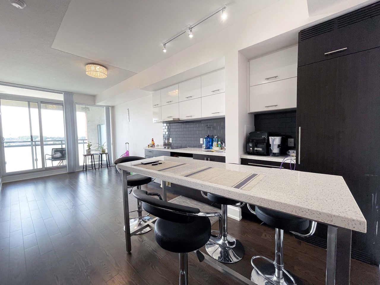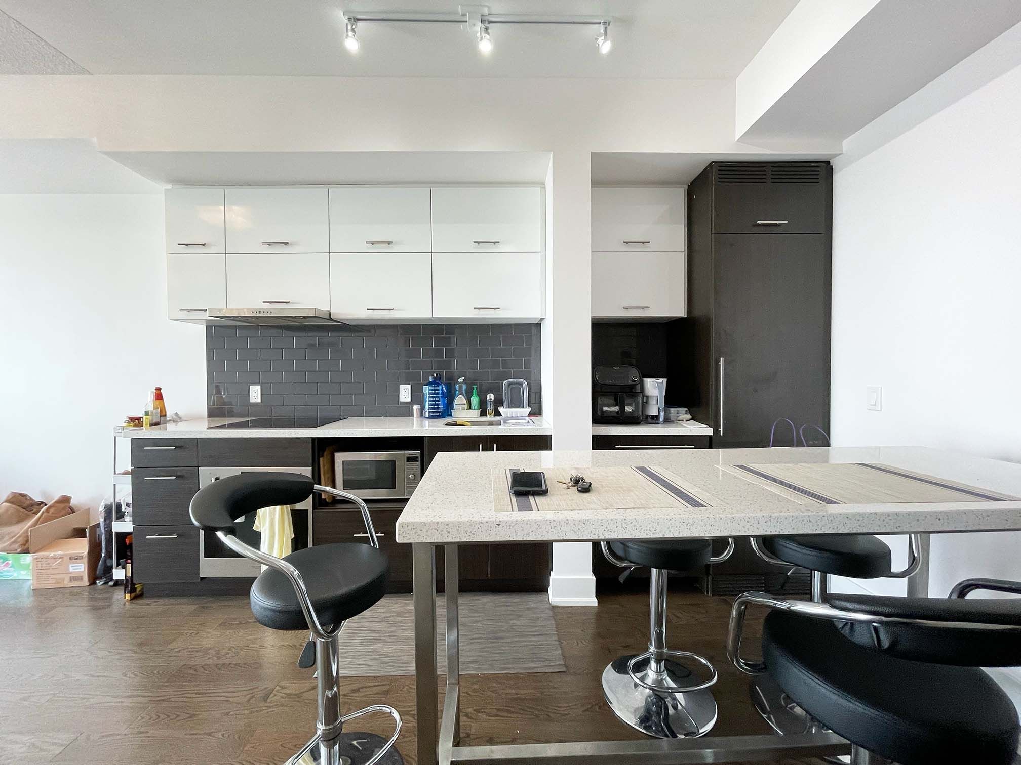 South facing sunlight filled condo unit in the heart of downtown Markham with hotel amenities. Large unobstructed floor to ceiling windows fill the rooms with lots of sunlight. Master bedroom has a walking closet and private ensuite. Den can be used as a 2nd bedroom. Modern open concept kitchen features S/S Appliances, Quartz counter top, and breakfast island. 9ft Ceilings. Close to Hwy 404/407, grocery, public transit, and restaurants. Short walk to Cineplex, and future York University Campus. Unit comes partially furnished.Fridge, Stove, Rangehood, Dishwasher, Washer & Dryer, Existing Light Fixtures, and One Parking Included.