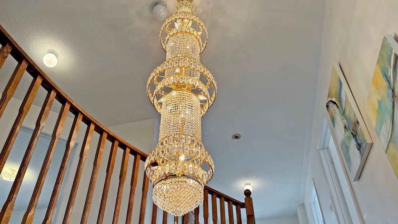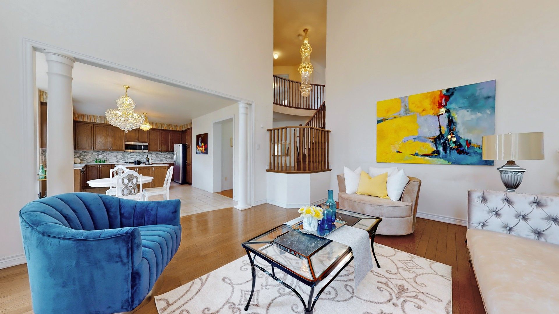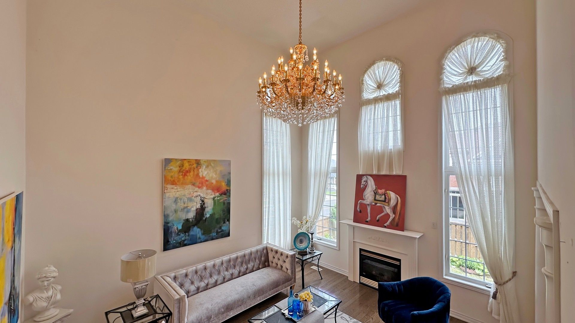 Main Floor Features An Eat-In Kitchen, Separate Living, Dining & Family Rooms. A 2 Piece Bathroom And A Laundry Room. The Kitchen Has A Centre Island, Quartz Counter Top And Tiles Backsplash. The Breakfast Area Has A Walkout To Rear Deck. The Living, Dining and Family Rooms Have Hardwood Flooring. The Family Room Has A 17.35' Open Ceiling Height And Gas Fireplace Inclusive Of Open Second Floor Area In The Family A Front Bedroom Has A Walkout To A Balcony. Open Computer Nook Area, As Per The Seller, Gold Plated Crystal Chandeliers In The Breakfast Area, Over Main Floor Staircase, In The Living, Dining & Family Room Will Remain In The House As Fixtures.Buyer Or Buyer Agent Need To Verify Measurements And Tax.
