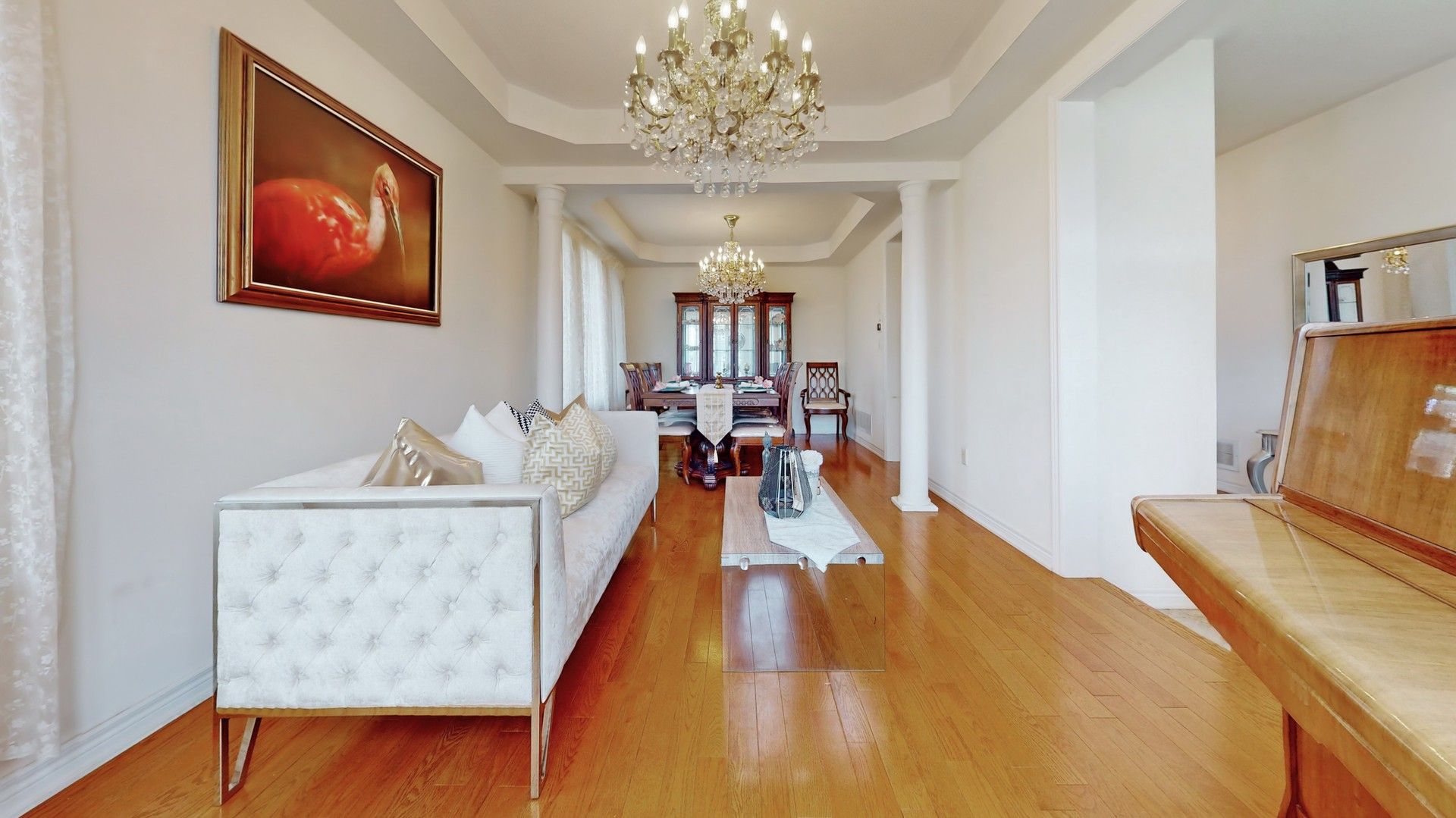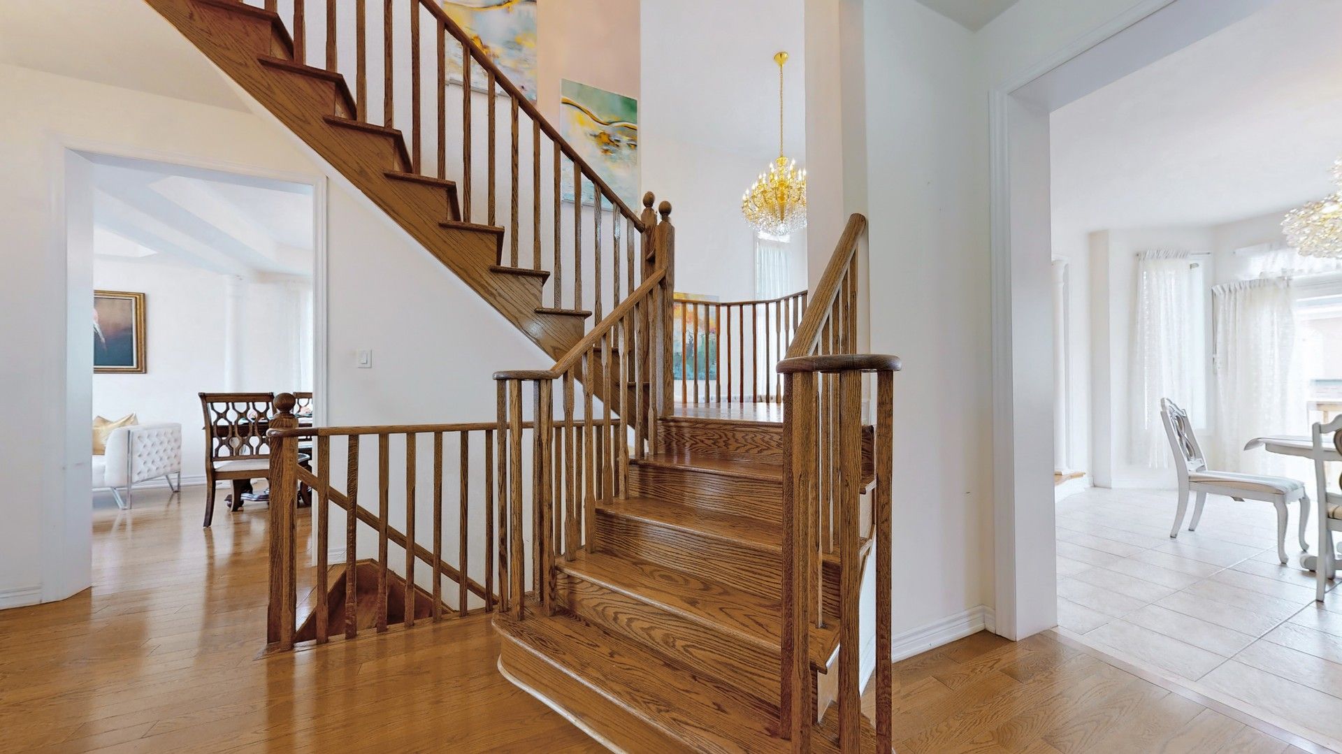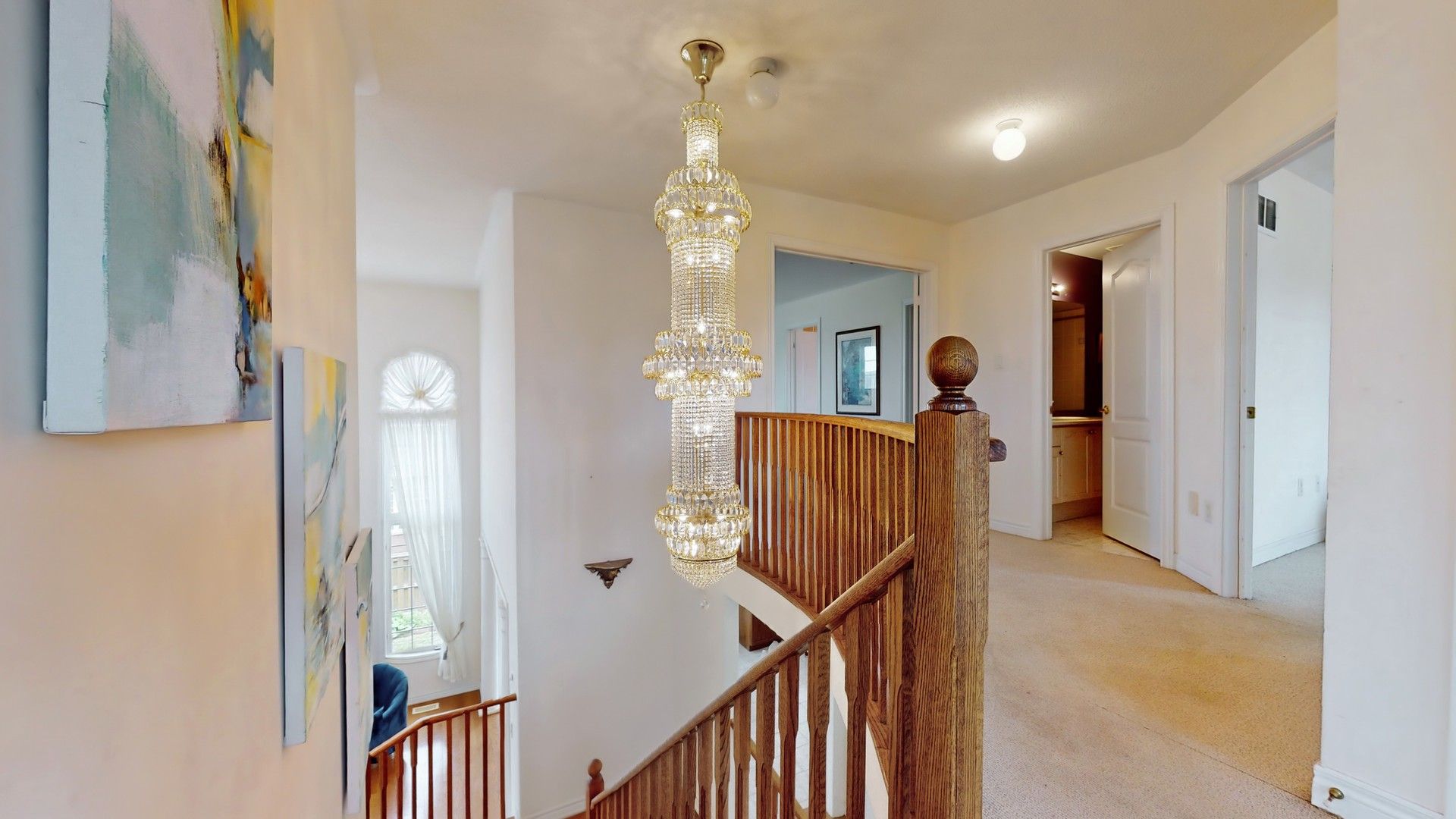 Main Floor Features An Eat-In Kitchen, Separate Living, Dining & Family Rooms. A 2 Piece Bathroom And A Laundry Room. The Kitchen Has A Centre Island, Quartz Counter Top And Tiles Backsplash. The Breakfast Area Has A Walkout To Rear Deck. The Living, Dining and Family Rooms Have Hardwood Flooring. The Family Room Has A 17.35' Open Ceiling Height And Gas Fireplace Inclusive Of Open Second Floor Area In The Family A Front Bedroom Has A Walkout To A Balcony. Open Computer Nook Area, As Per The Seller, Gold Plated Crystal Chandeliers In The Breakfast Area, Over Main Floor Staircase, In The Living, Dining & Family Room Will Remain In The House As Fixtures.Buyer Or Buyer Agent Need To Verify Measurements And Tax.