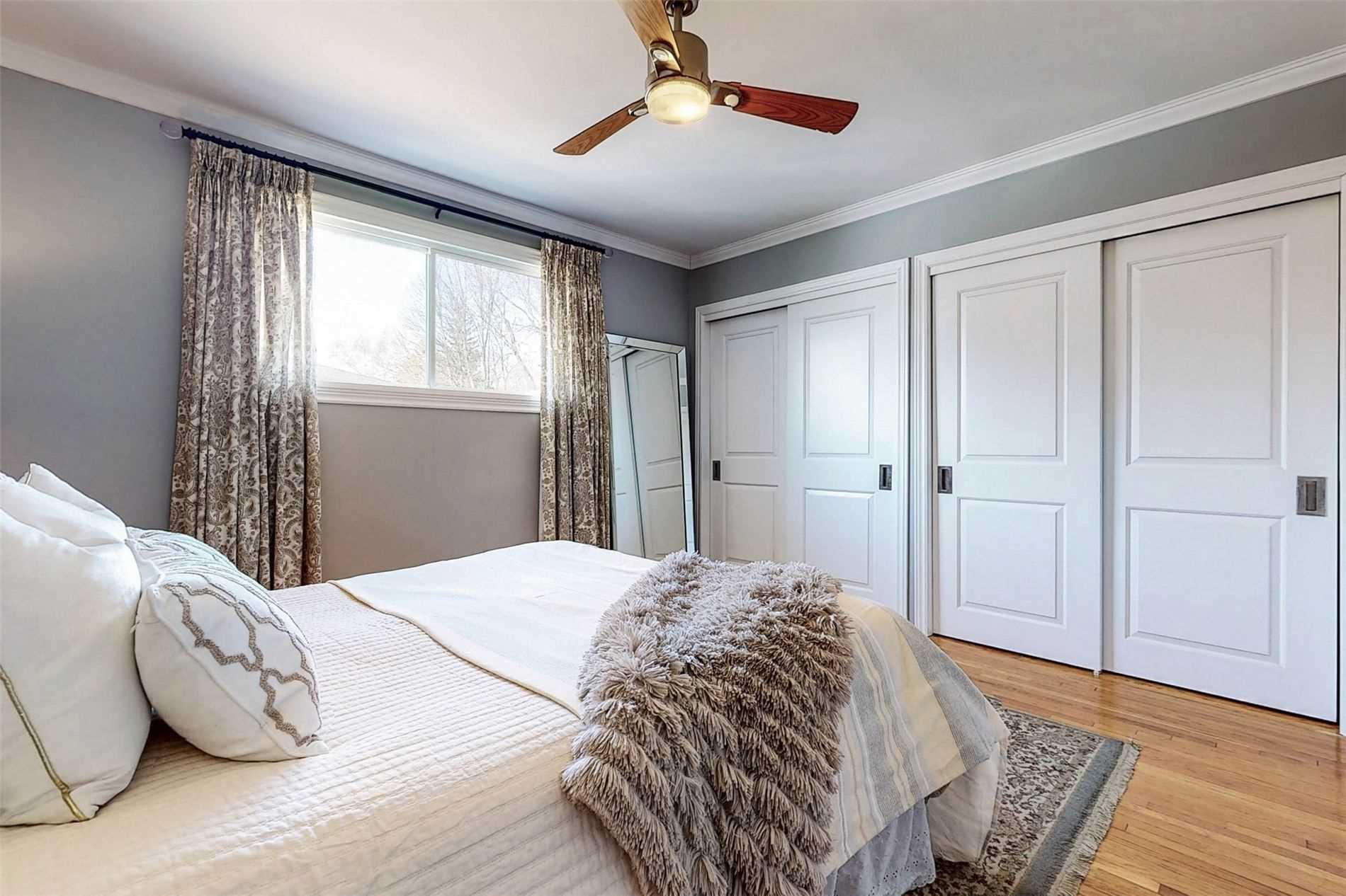 Hardwood Floor His/Hers Closets Ceiling Fan