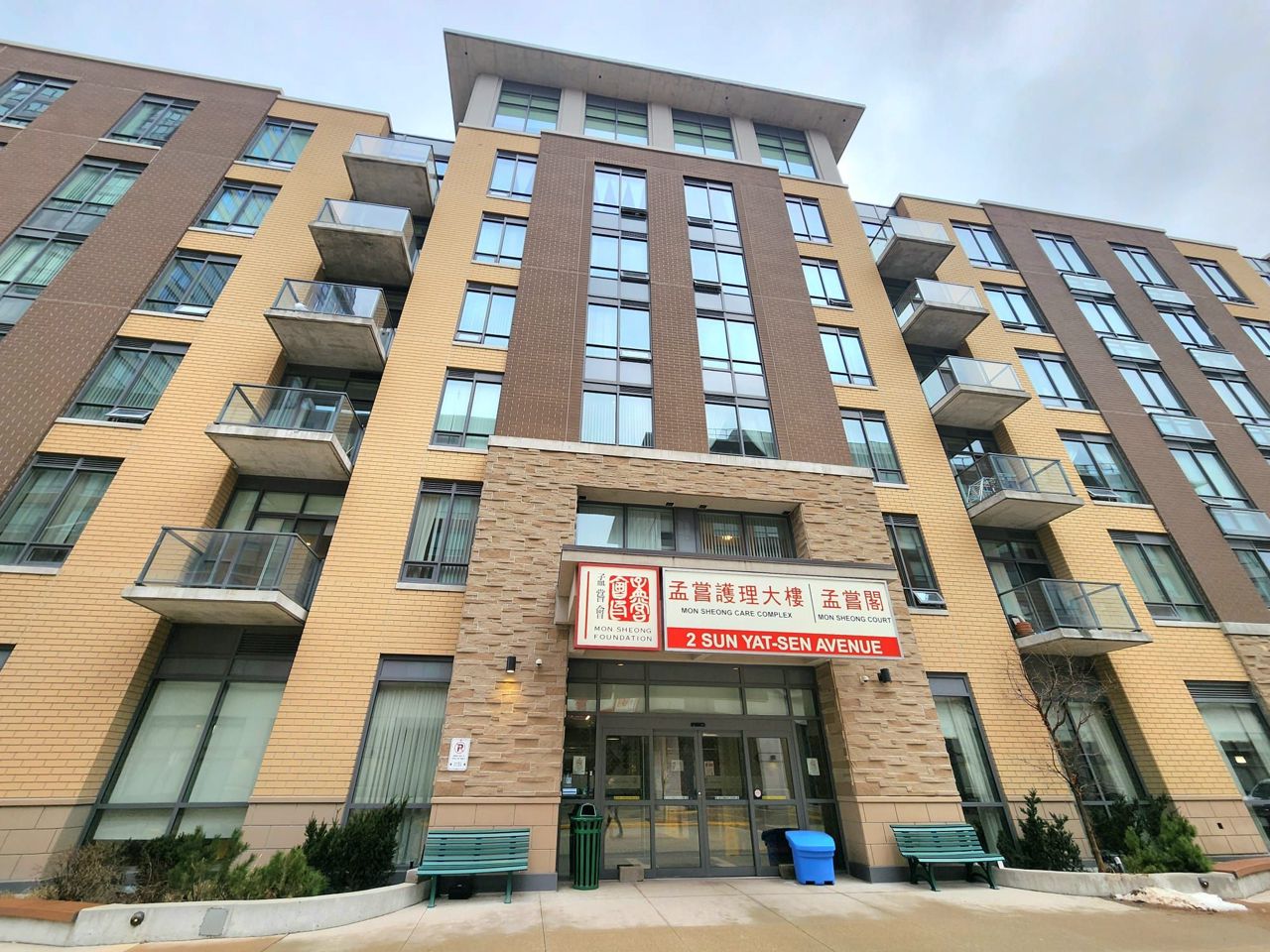 Welcome to the epitome of luxury senior living at Mon Sheong Life Lease Private Residence, where comfort, convenience, and safety converge to create an unparalleled living experience. Impeccably maintained and reminiscent of new, this spacious studio layout offers the perfect blend of style and functionality, catering to the unique needs of senior residents.As you step inside, you'll be greeted by soaring 10-foot ceilings and wood flooring throughout, creating an atmosphere of elegance and warmth. The kitchen features quartz countertops and is designed with senior safety in mind, boasting panic alarms and bathroom support bars for added peace of mind.Indulge in a wealth of amenities designed to enhance your quality of life, including ping pong, karaoke, a badminton court, exercise room, cafeteria/restaurant, pharmacy, doctor's office, library, hair salon, and rooftop garden all conveniently located within the residence.Located close to shops, supermarkets, and with 24-hour concierge services, everything you need is right at your fingertips. Plus, with one parking space and one locker included, you'll have plenty of space to store your belongings.The monthly fee covers heat, hydro, water, cable TV, internet, and property tax, providing you with peace of mind and financial security. Additionally, free daily senior activity programs ensure there's always something exciting to do and new friends to meet.Whether you're relaxing in the rooftop garden or staying active on the badminton court, you'll love the vibrant lifestyle that Mon Sheong Life Lease Private Residence has to offer. With 24/7 security and emergency response services, you can enjoy your golden years with confidence and peace of mind.All ELF, Fridge, Cook Top, Washer & Dryer. Vertical Blinds.