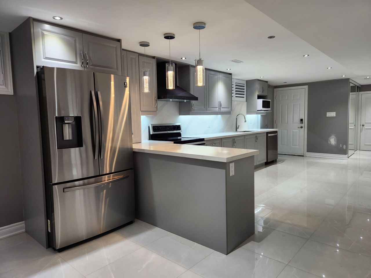 家庭速递!明亮宽敞两卧室公寓出租。现代化三件套卫浴。独立入口和全屋筒灯。厨房配备所有必需品,拥有大量台面和橱柜用于储物。额外的湿吧台,方便招待宾客。地理位置优越,靠近公交枢纽和Aaniin社区中心及图书馆。几分钟即可到达407高速、Markville购物中心、Go Transit、杂货店、寺庙、教堂等等!!!顶级学校:Coppard Glen公立学校,Middlefield CI中学。**额外设施**:宽敞储藏室,独立入口