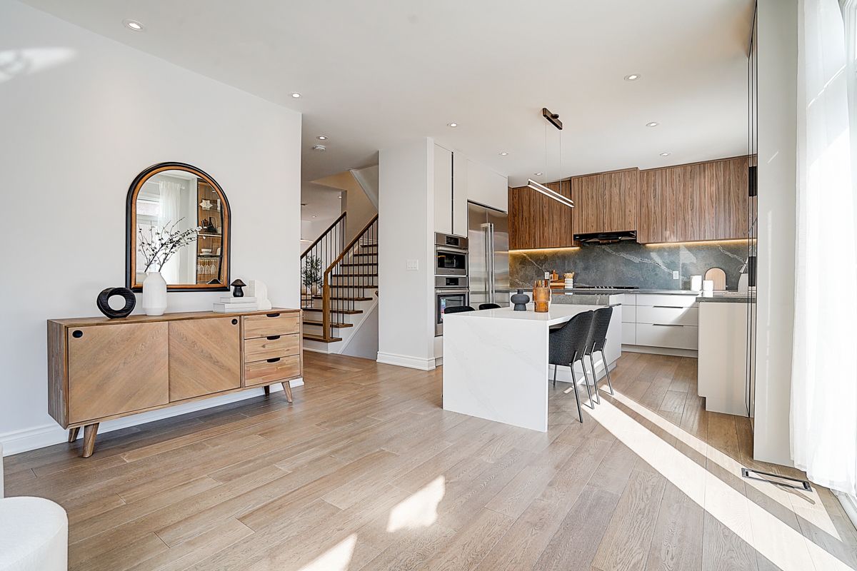 开放参观:3月15/16日 周六/周日,下午2-5点。耗资超过30万美元,从上到下、从内部到外部均经过豪华翻新!建筑商设计的拱形门廊和入户门,定制鞋柜、长凳和巨大的镜子,半开放式概念的宏伟门厅可透过起居室看到,起居室设有高耸的拱形天花板。9英尺挑高主层,所有天花板均平滑,全屋配有大量筒灯。所有区域均更新为大块闪亮的瓷砖、宽木板硬木和复合地板。现代化的落地式亚光和仿木纹对比色厨房橱柜,加上全玻璃展示架,石质台面搭配同色系防溅板,以及带有两层对比色台面作为用餐区餐桌的超长中心岛台。所有高端全尺寸内置电器,阳光充足的双向视野家庭室配有天然石材壁炉。改造后的下沉式杂物间可方便地通往车库。更换了所有2个橡木楼梯的极简主义铁质栏杆、扶手和踏板,与地板颜色相匹配。在二楼走廊和套间浴室上方增加了2个天窗。主卧室超大步入式衣橱,带有定制衣橱整理器和间接LED照明。独立浴缸,设计的墙装式水龙头以及5件套套间浴室内的所有墙砖。无框玻璃门淋浴。所有浴室均选用了顶部安装的台盆和背光镜。带额外第五间卧室和全浴室的地下室已完工。宽敞的娱乐室配有内置壁龛和隐藏照明。专业园林绿化,包括砖砌车道的大面积区域,加宽车道停车位,后院露台,天然石材阶梯,门廊地板和花坛。所有新近更换的屋顶、2个车库门、炉子和中央空调(2021年)。学区范围:Bayview 不锈钢(IB)(8/706),St. Augustine Catholic high school(2/706),Pierre Elliott Trudeau high school(FI)(10/706)。