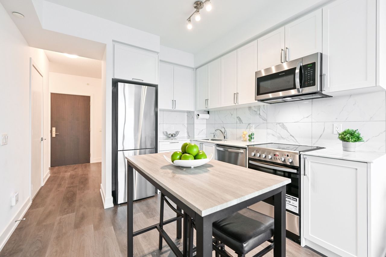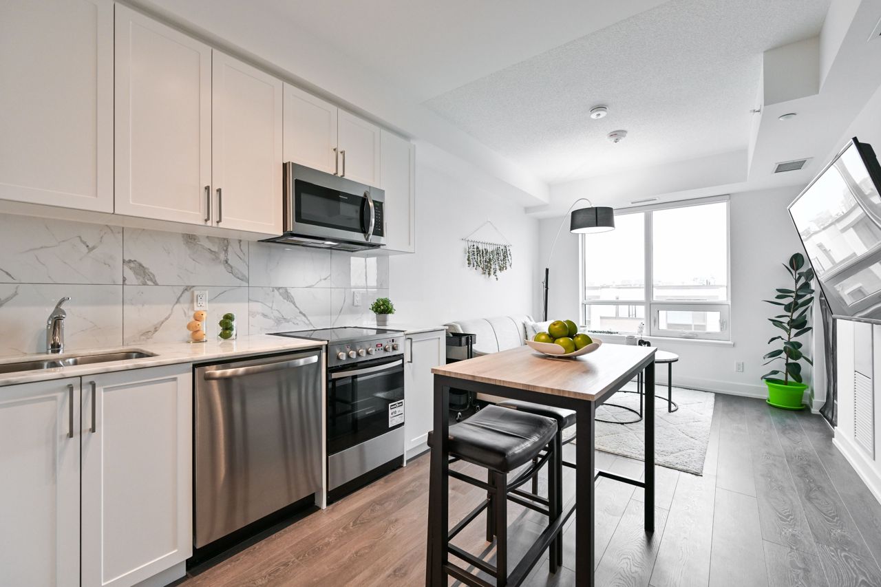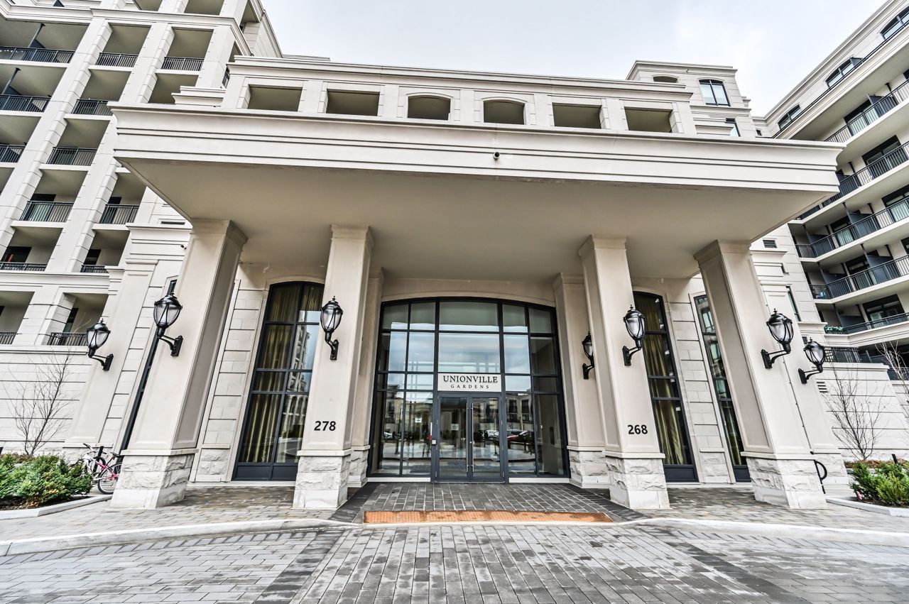 **Welcome To Luxurious Unionville Garden Nestled In Prestigious Unionville** By Developer Wyview Group, Kirkor Architects & IV By IV Designs (Interior Designer). Timeless Stone Exterior, Grand Lobby & State Of The Art Amenities (Fitness Centre, Saunas, Indoor Swimming Pool, Karaoke Room, Game Room, Guest Suite, 24Hrs Concierge, Visitors Parking, Rooftop Terrace With A Garden & Much More. This Spacious 1 Bed + Den, 1.5 Bathrooms & Open Balcony Has 9' Ceiling Throughout. Loaded With Many Upgrades $$$$, Contemporary Kitchen With Soft Closing Cabinets, Marble Countertop & Porcelain Backsplash. Closet Organizer In Primary Walk-In Closet & Porcelain Tiles Throughout. **Top Ranking School Catchment**, Mins To Hwy 404, 407 & Go Train Station. Steps To Whole Foods Market, LCBO, Banks, Shops, Restaurants & Cafes. Close Downtown Markham, VIP Cinemas, Markville Mall, Future Markham York University Campus & Historic Mainstreet Unionville. One Parking and One Locker Included.Stainless Steel Fridge, Stove, Microwave/Range Hood, Dishwasher, Washer And Dryer, Existing Electric Light Fixtures, Existing Window Coverings