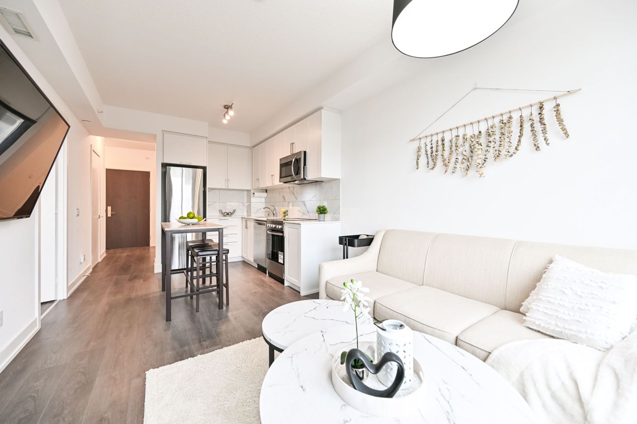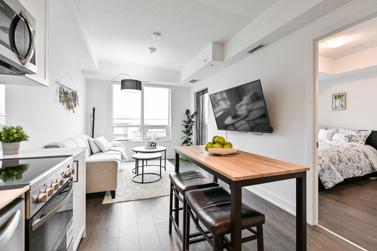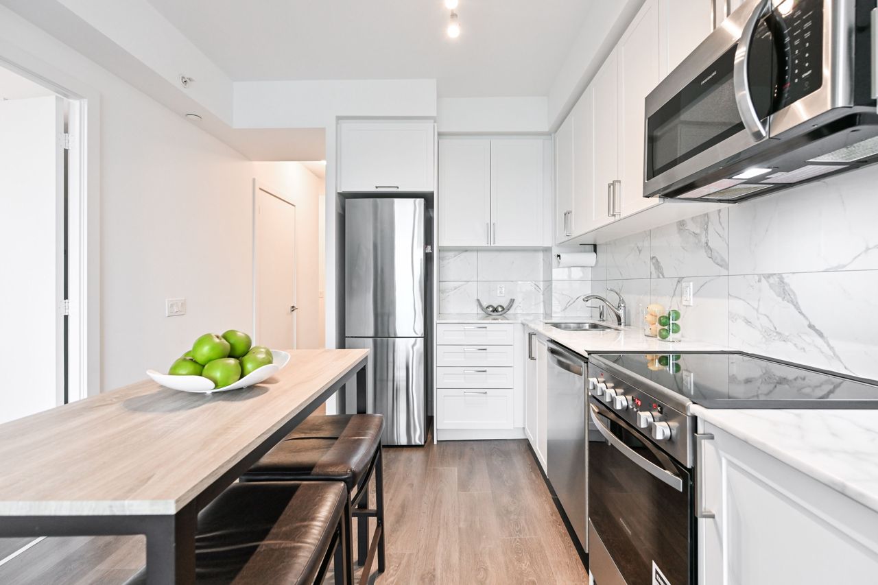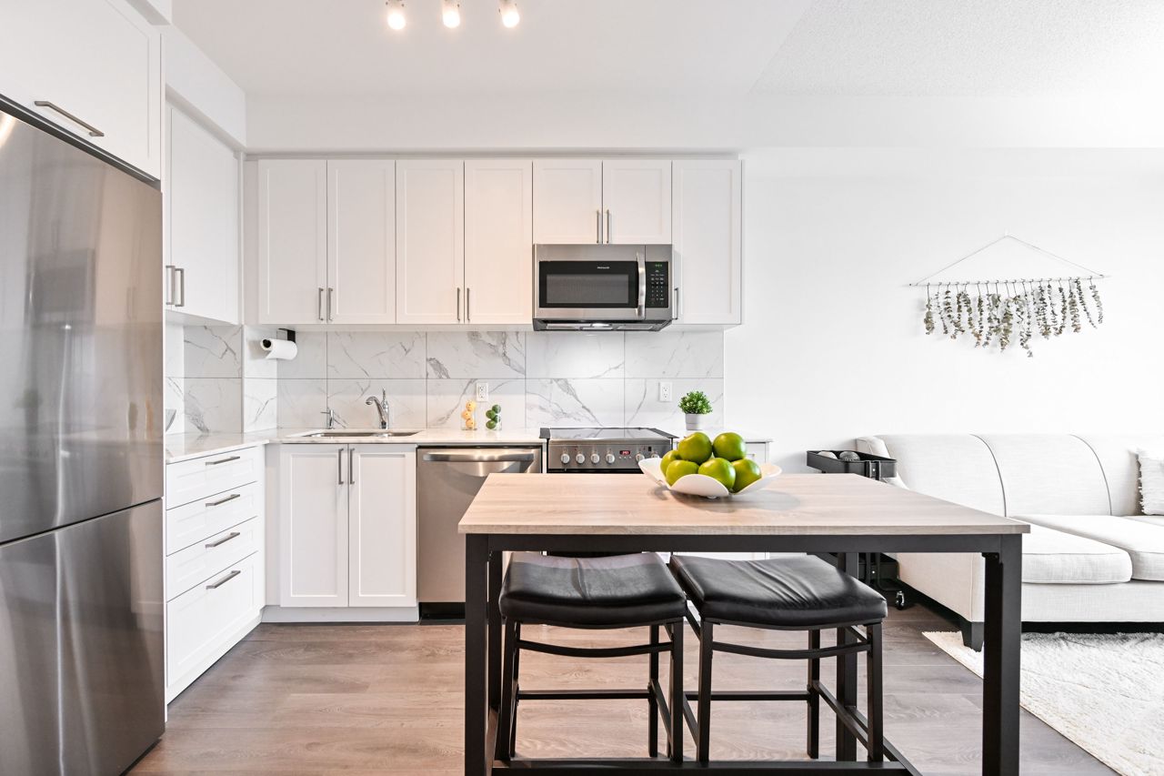 **Welcome To Luxurious Unionville Garden Nestled In Prestigious Unionville** By Developer Wyview Group, Kirkor Architects & IV By IV Designs (Interior Designer). Timeless Stone Exterior, Grand Lobby & State Of The Art Amenities (Fitness Centre, Saunas, Indoor Swimming Pool, Karaoke Room, Game Room, Guest Suite, 24Hrs Concierge, Visitors Parking, Rooftop Terrace With A Garden & Much More. This Spacious 1 Bed + Den, 1.5 Bathrooms & Open Balcony Has 9' Ceiling Throughout. Loaded With Many Upgrades $$$$, Contemporary Kitchen With Soft Closing Cabinets, Marble Countertop & Porcelain Backsplash. Closet Organizer In Primary Walk-In Closet & Porcelain Tiles Throughout. **Top Ranking School Catchment**, Mins To Hwy 404, 407 & Go Train Station. Steps To Whole Foods Market, LCBO, Banks, Shops, Restaurants & Cafes. Close Downtown Markham, VIP Cinemas, Markville Mall, Future Markham York University Campus & Historic Mainstreet Unionville. One Parking and One Locker Included.Stainless Steel Fridge, Stove, Microwave/Range Hood, Dishwasher, Washer And Dryer, Existing Electric Light Fixtures, Existing Window Coverings