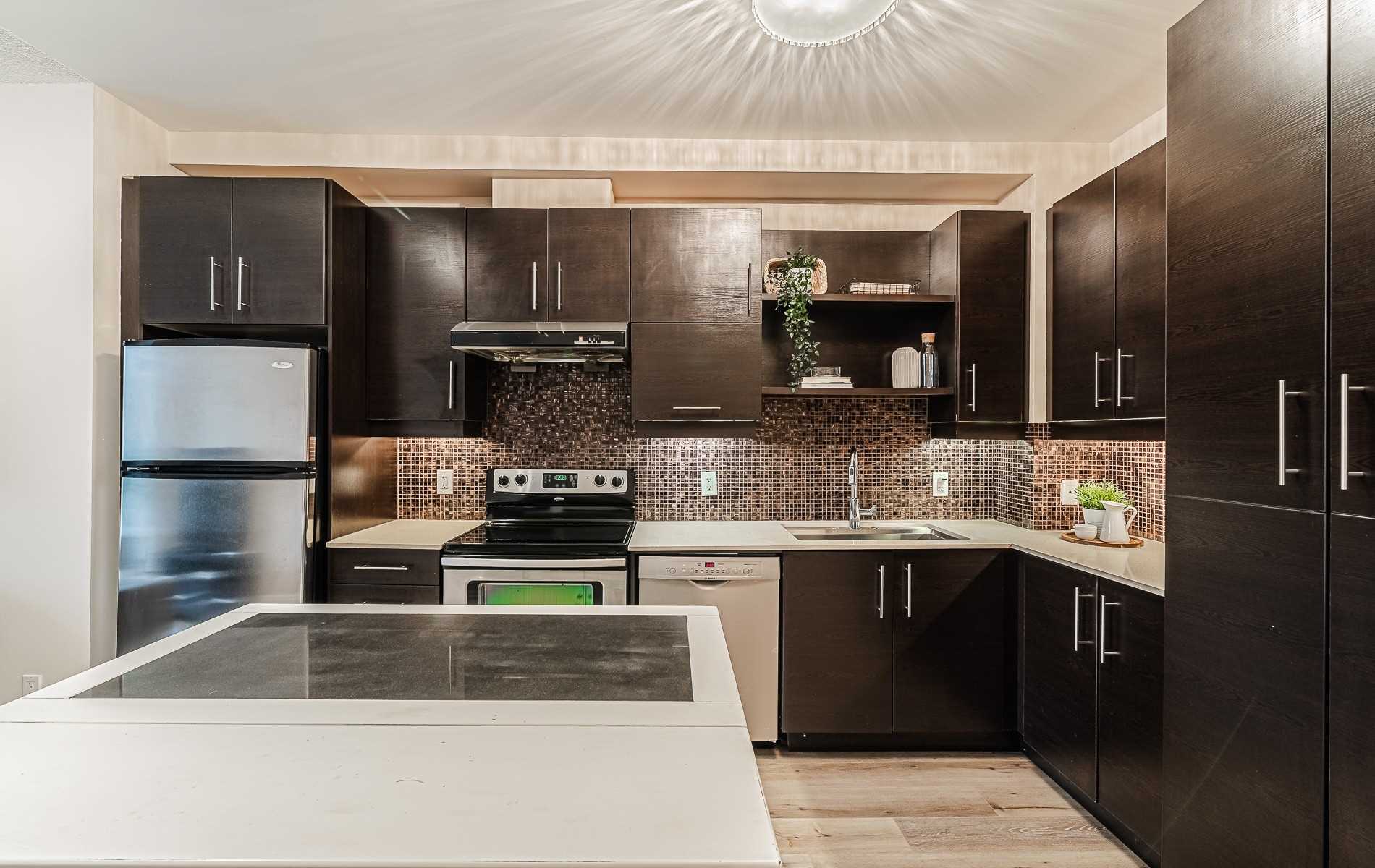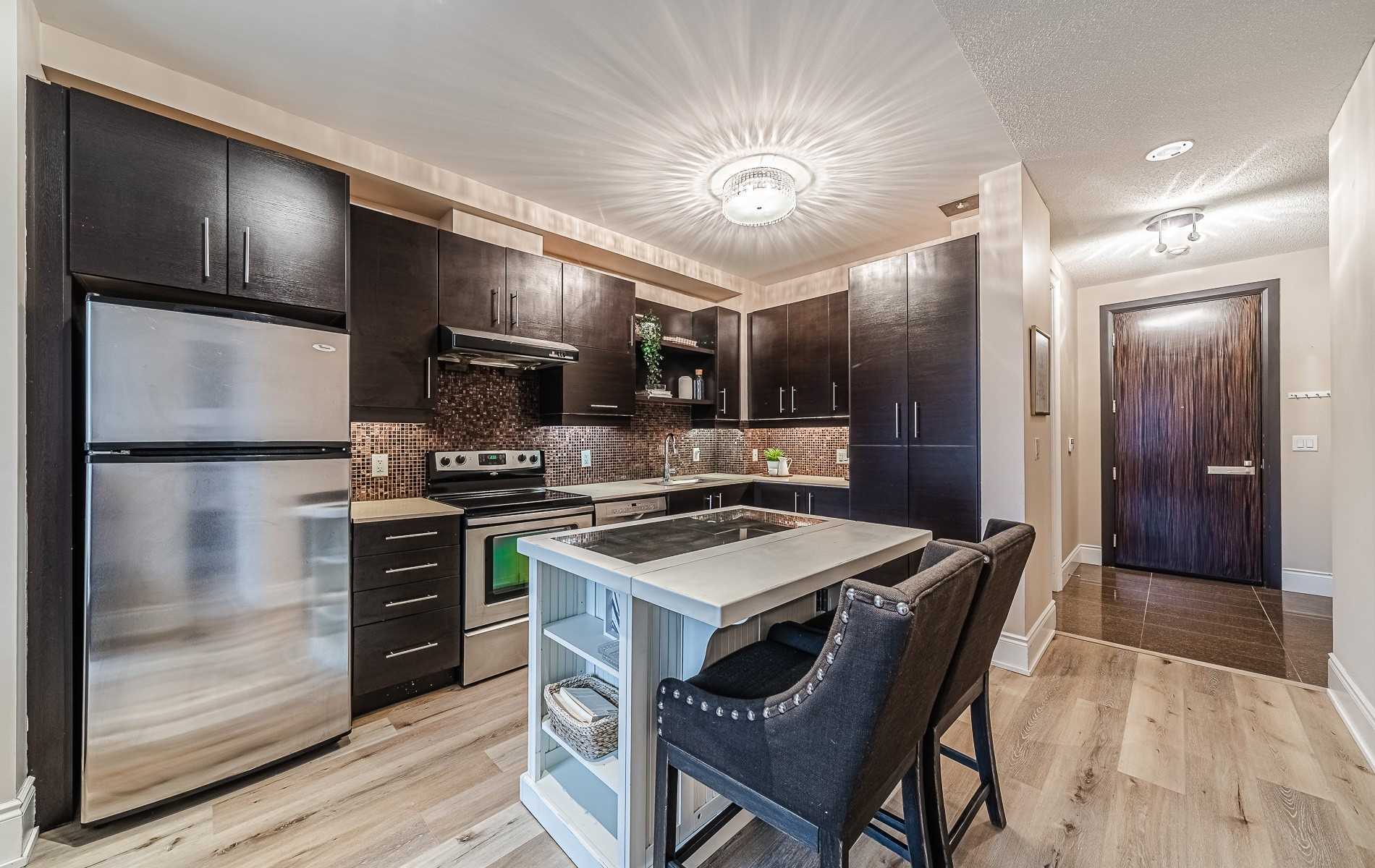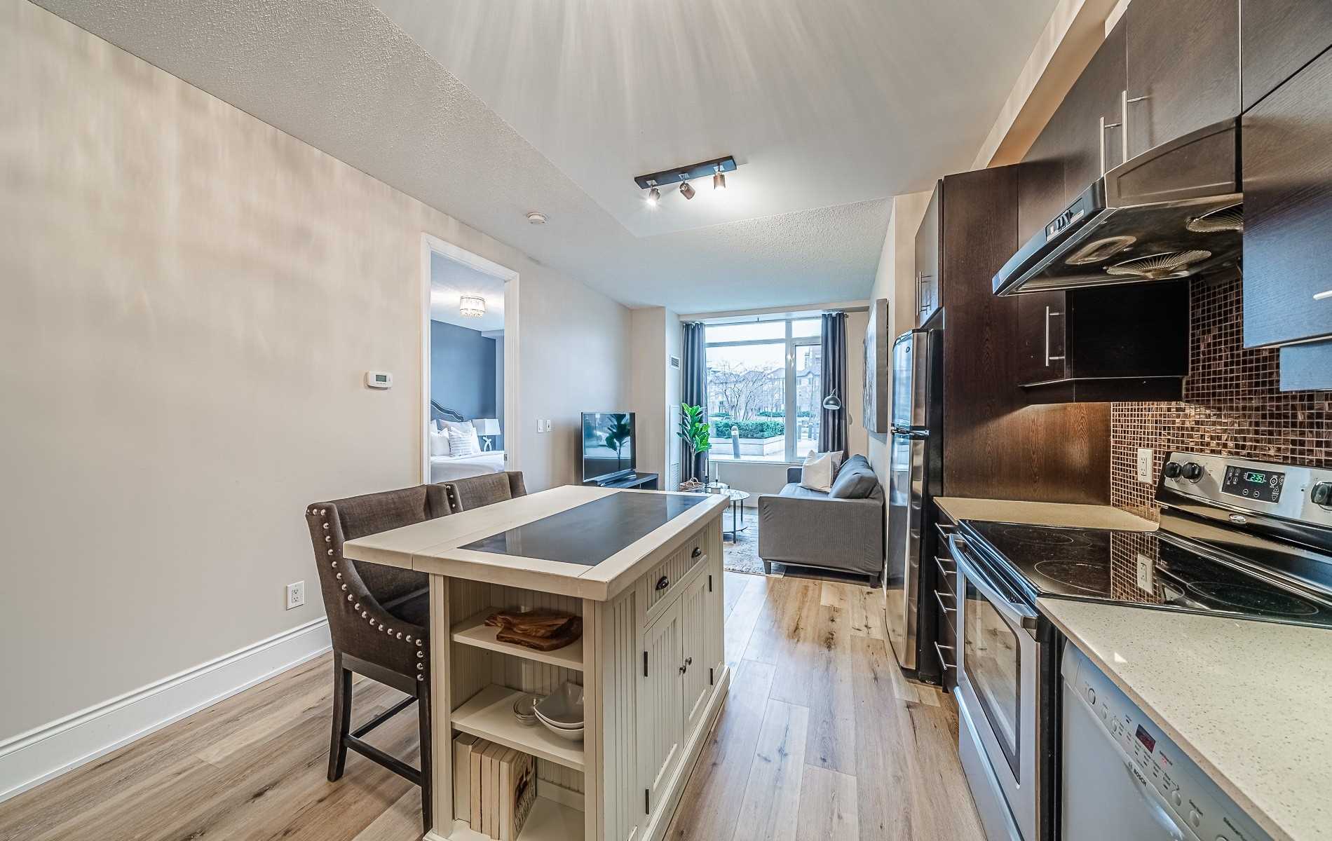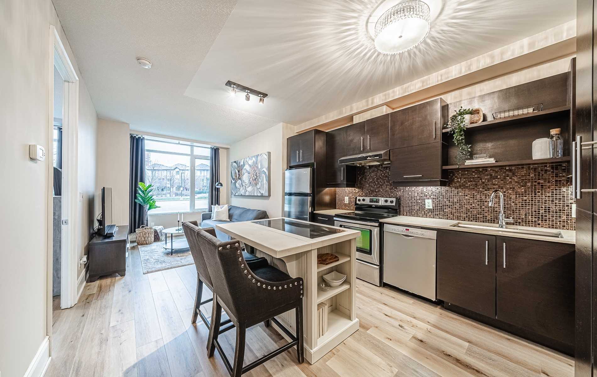 Stunning 1+1 Condo With 2 Full Baths! Bright And Spacious, New Vinyl Plank Flooring Throughout, Large Kitchen With Removable Island, Stainless Appl, Granite Counter And Back Splash! 9Ft Ceilings Master Retreat Boasts Oversized W/I Closet With Built Ins & 4 Pc Spa-Like Ensuite! Fabulous Building Loaded With Amenities!Close To 401/407, Shopping, Restaurants, Schools, Viva Much More! Stainless Steel Fridge, Stove, B/I Dw, Stackable Clothes Washer & Dryer, All Elfs & Window Cvrgs!