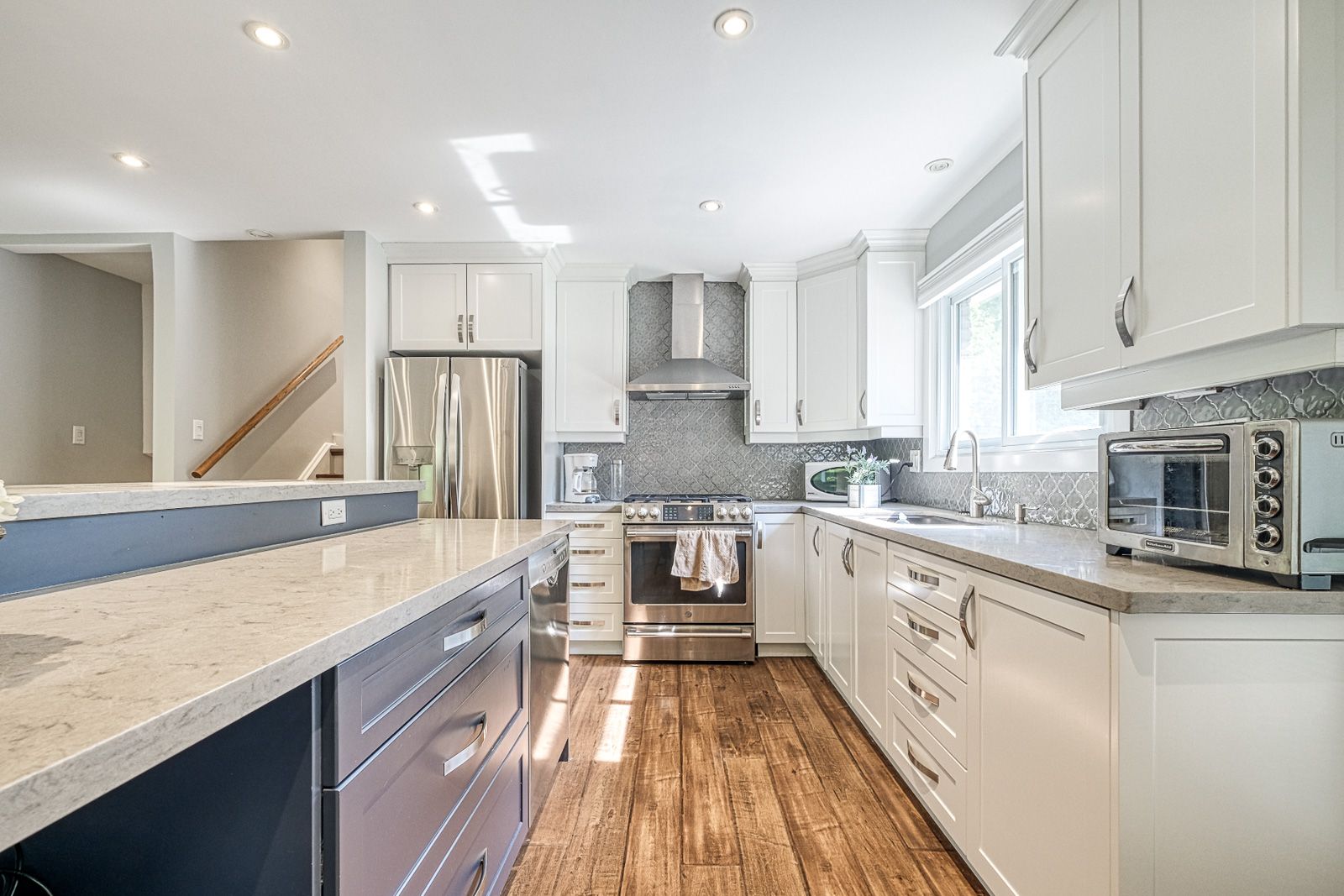 Beautiful Detached 4Levels Sidesplit Home With 60Feet Wide Frontage Lot Located In A Quiet Mature Neighbourhood Of Markham Village With Lots Of Mature Trees! Huge Driveway Can Park 6Cars With No Sidewalk. 3Bedrm + 1Bedroom On The Ground Level Is Currently Used As A Office. Inground Salt Water Pool Professional Landscaped Great For Entertaining! Open Concept Living/Dining Room, Renovated Main Floor, Newly Reno Kitchen W/ Quartz Countertops/Stainless Steel Appliances, Huge Bay Window O/L Front Yard, Upgraded Floors, Smooth Ceilings. Be sure to Check our Virtual Tour and 3D House TourFridge, Stove, Built In Dishwasher, All Electric Light Fixtures, All Window Coverings, Pool Equipment, Washer, Dryer, Hwh Rental