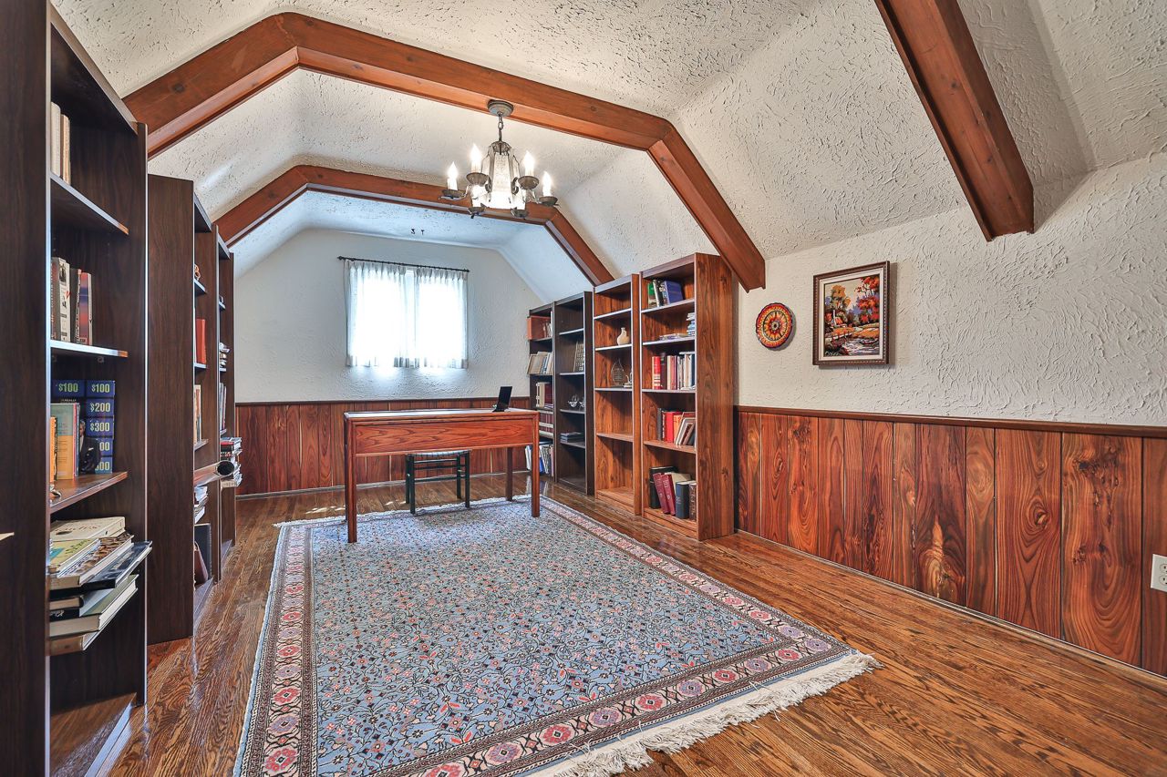 原业主家族四十余年的精心养护下,这套住宅呈现出通透大气的格局:宽敞的客厅餐厅一体化空间、适合全家聚餐的厨房早餐区,以及配有木质装饰与壁炉的温馨家庭厅,完美兼顾待客与日常生活需求。双车库上方的罕见第五卧室(或独立书房)为居家办公、宾客留宿或多代同住提供了灵活选择。主层还设有带侧门入口的洗衣/玄关组合区,充分适应繁忙家庭的生活动线。