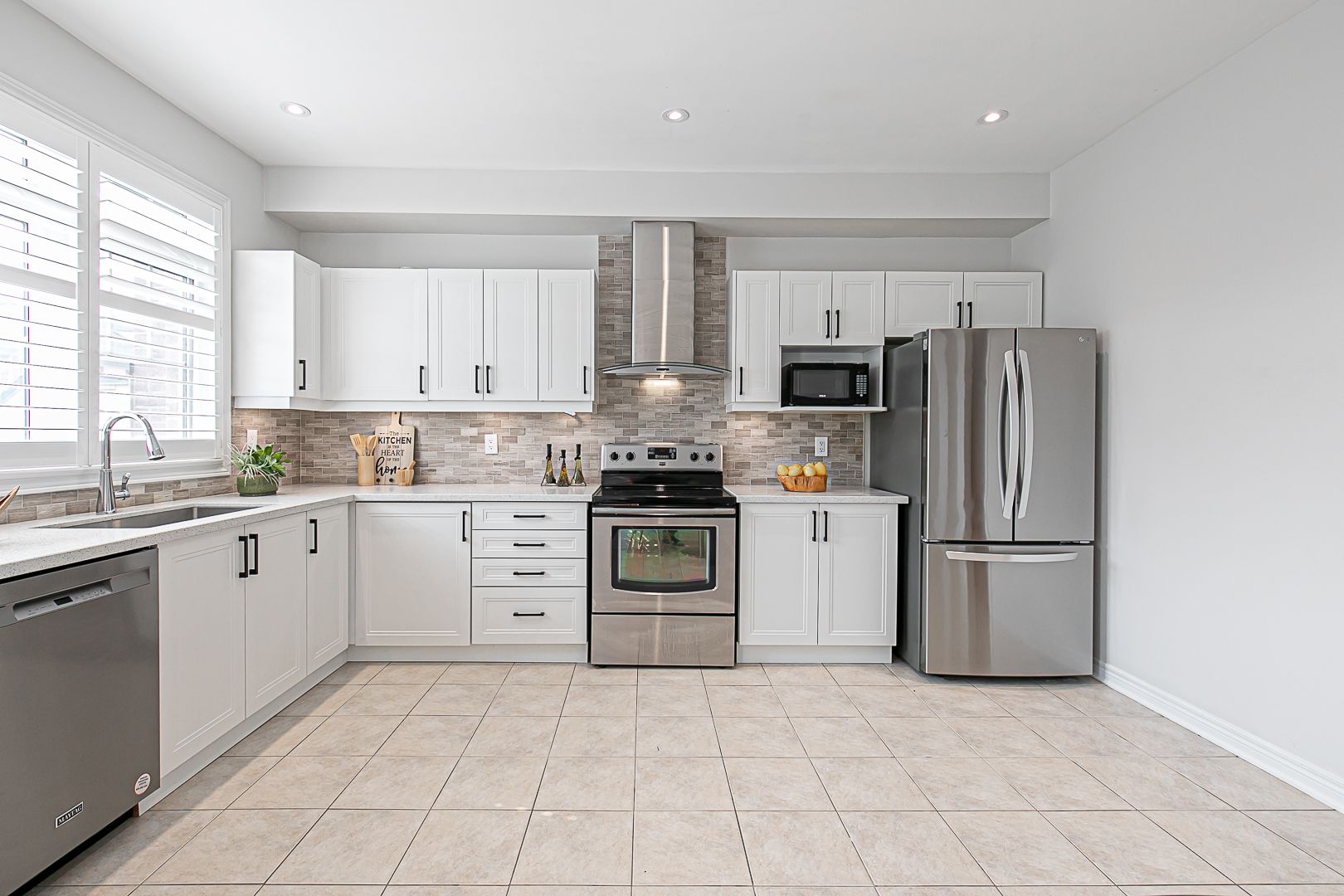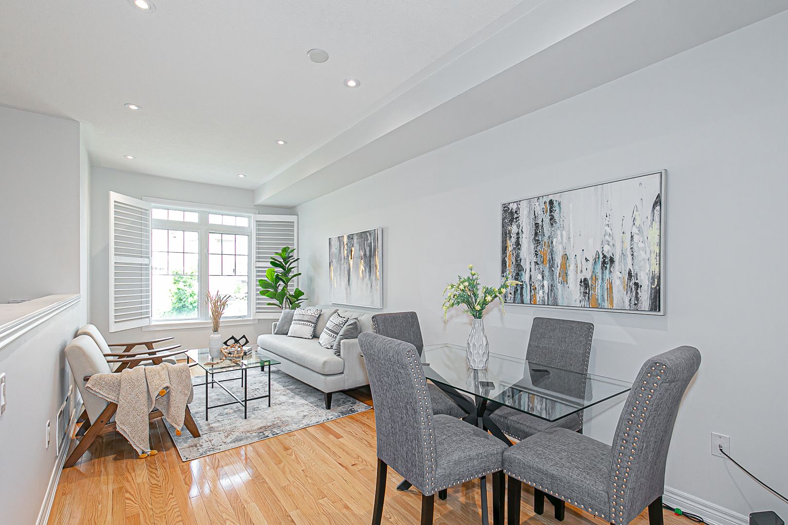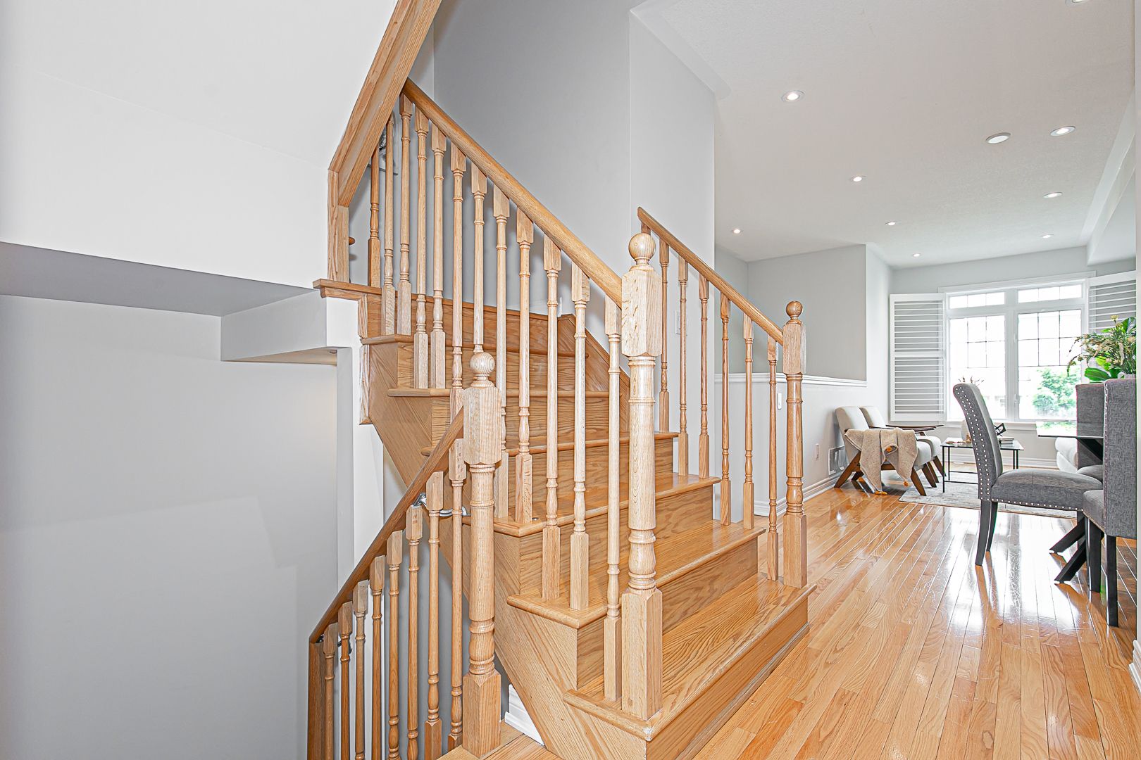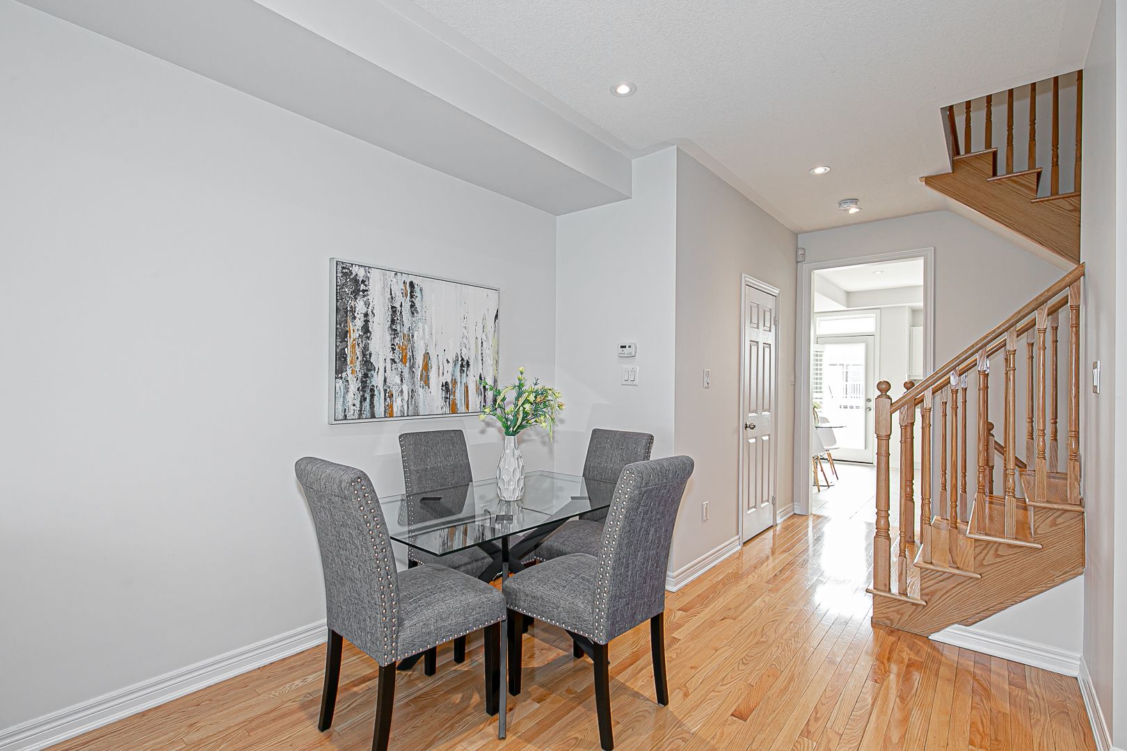 Exquisite Freehold TH in quiet desirable location. Spacious 1711 sqft. Large LR, Eat-In Kitchen features stainless steel appliances, new b/splash and w/o to private deck. Finished above grade bright basement with direct access to garage. Close to transit and Mount Joy Go station, park and conservation area, great schools - Bur Oak Secondary and Greensborough PS.House freshly painted throughout. High efficiency furnace & central air, oak staircase, hardwood on main flr. New hardwood upper level,brand new upgraded laminate on lower level.Kit w/upgraded cabinets, quartz counter, new backsplash.