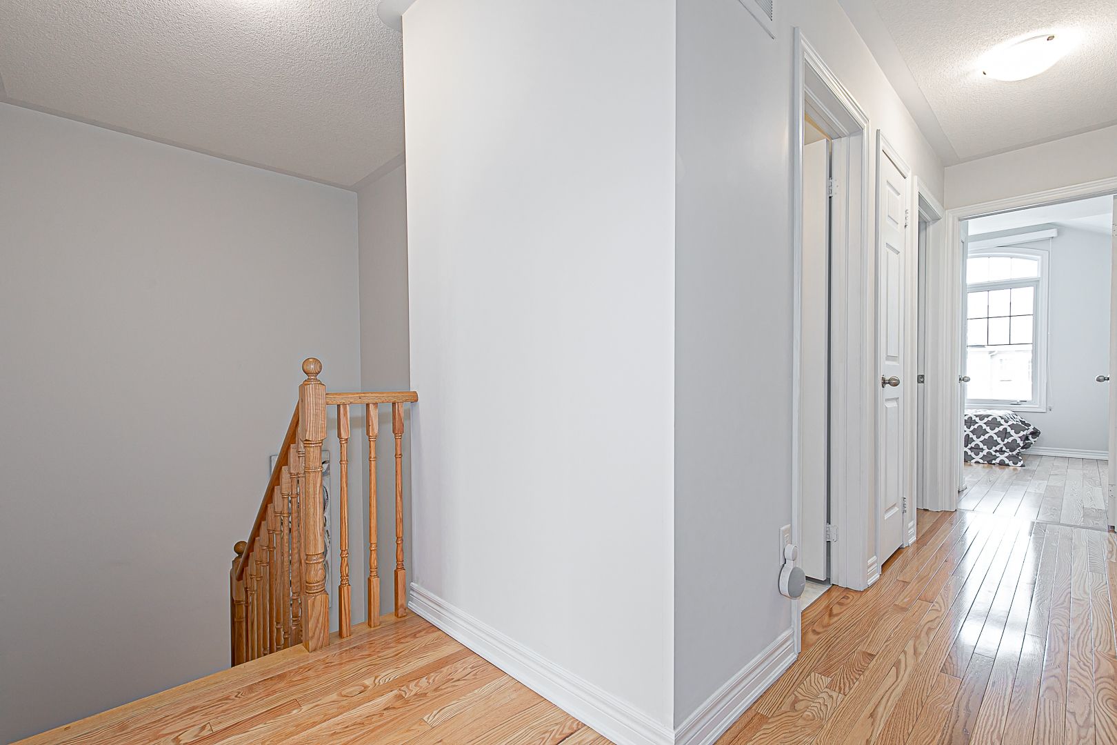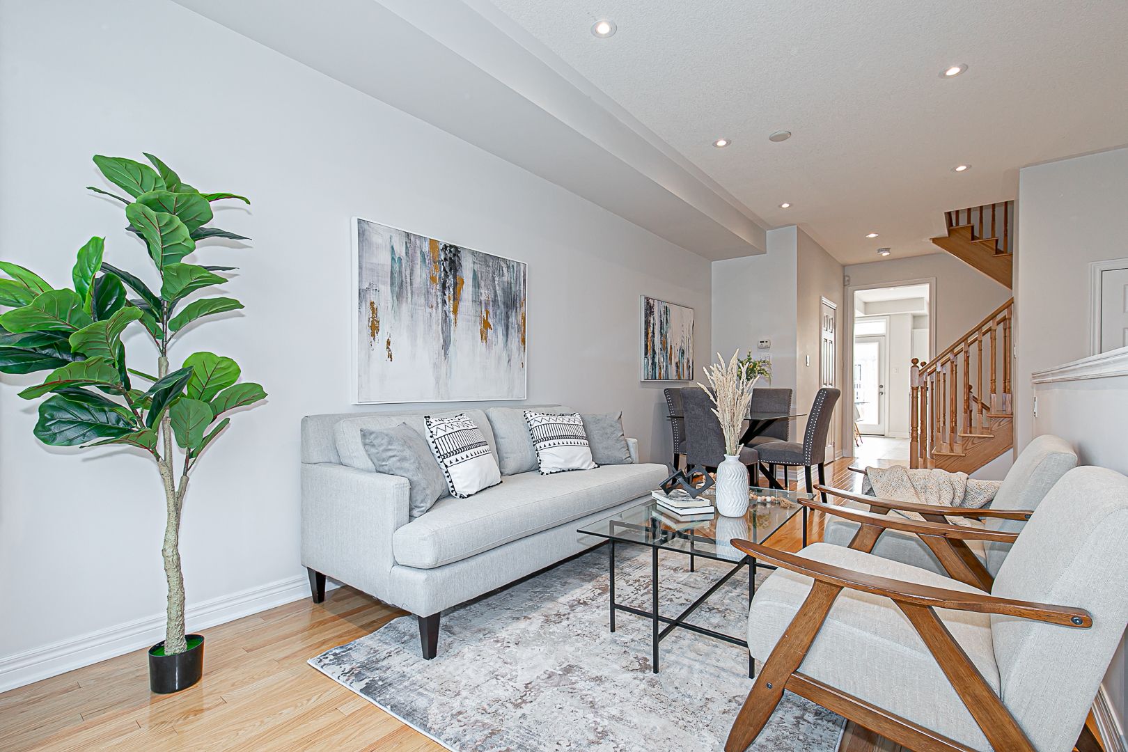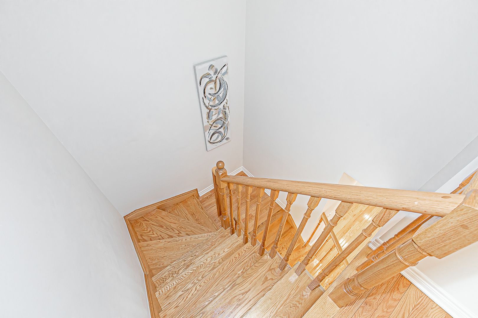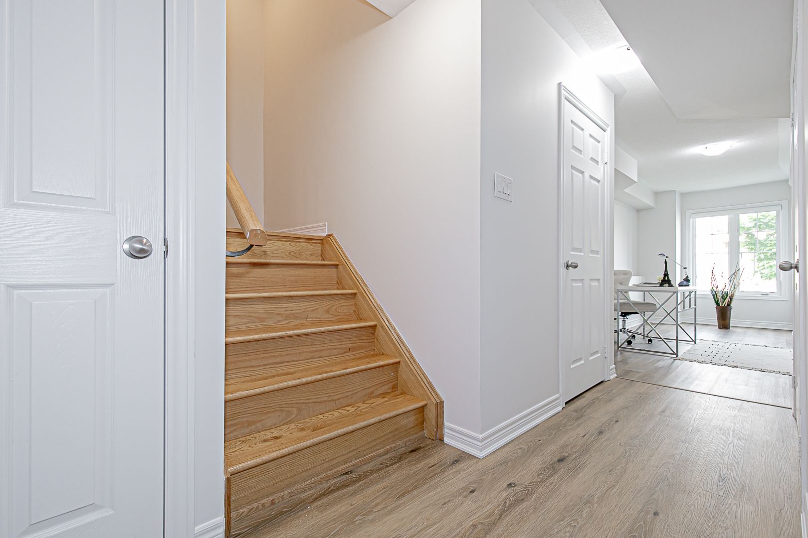 Exquisite Freehold TH in quiet desirable location. Spacious 1711 sqft. Large LR, Eat-In Kitchen features stainless steel appliances, new b/splash and w/o to private deck. Finished above grade bright basement with direct access to garage. Close to transit and Mount Joy Go station, park and conservation area, great schools - Bur Oak Secondary and Greensborough PS.House freshly painted throughout. High efficiency furnace & central air, oak staircase, hardwood on main flr. New hardwood upper level,brand new upgraded laminate on lower level.Kit w/upgraded cabinets, quartz counter, new backsplash.