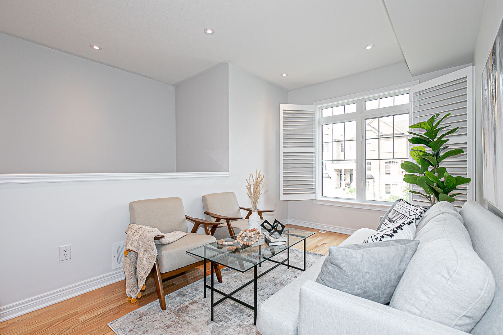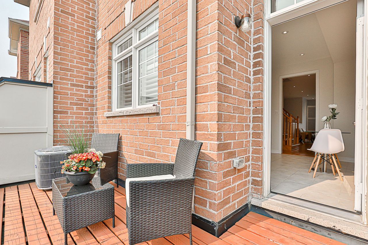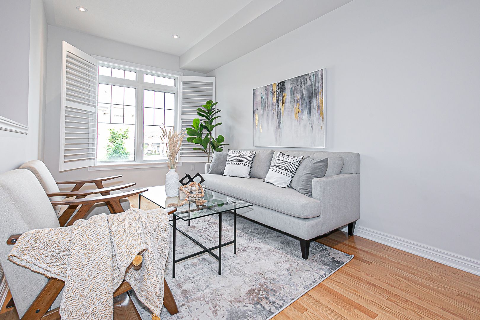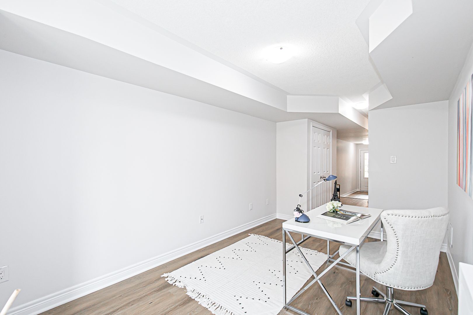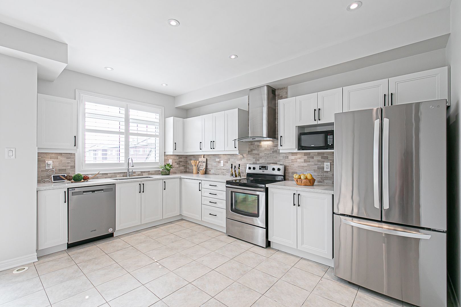 Exquisite Freehold TH in quiet desirable location. Spacious 1711 sqft. Large LR, Eat-In Kitchen features stainless steel appliances, new b/splash and w/o to private deck. Finished above grade bright basement with direct access to garage. Close to transit and Mount Joy Go station, park and conservation area, great schools - Bur Oak Secondary and Greensborough PS.House freshly painted throughout. High efficiency furnace & central air, oak staircase, hardwood on main flr. New hardwood upper level,brand new upgraded laminate on lower level.Kit w/upgraded cabinets, quartz counter, new backsplash.