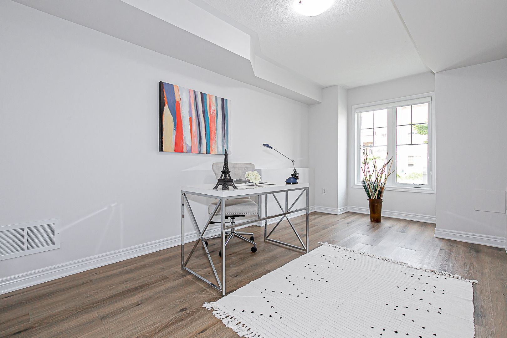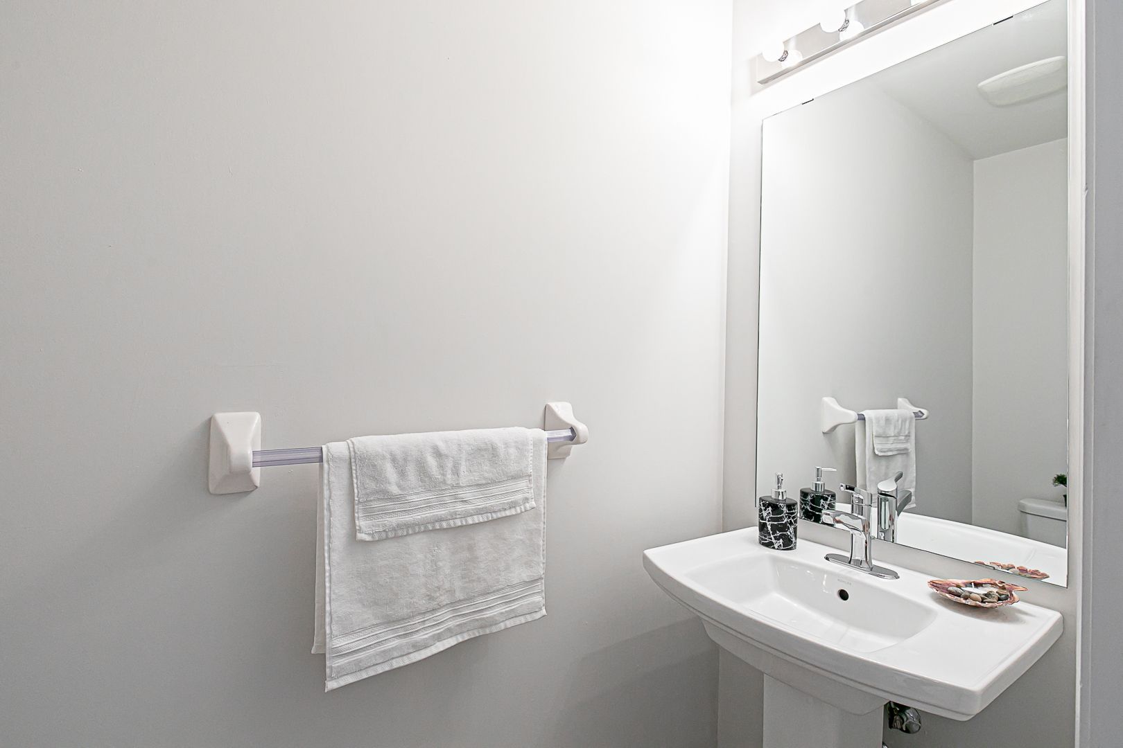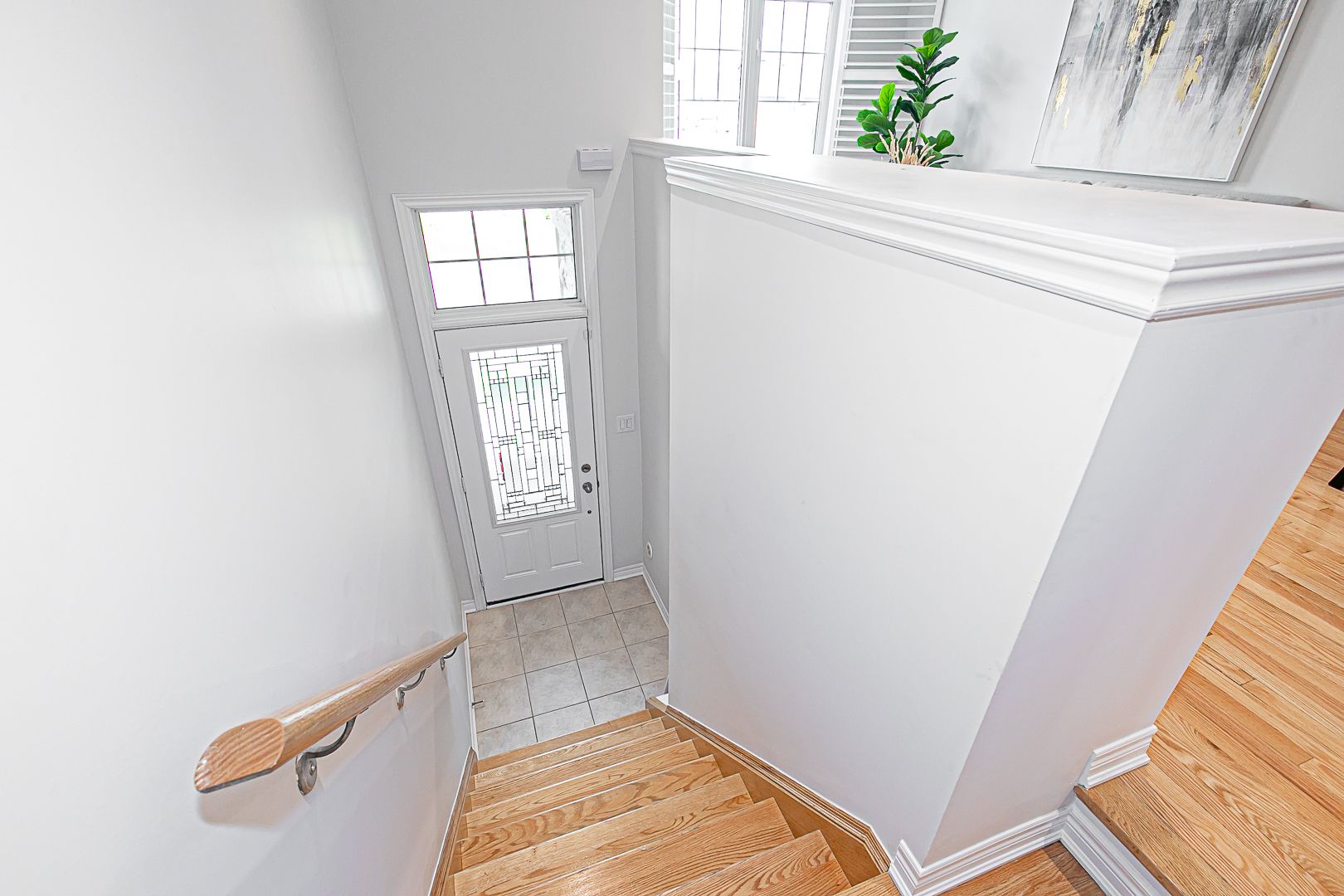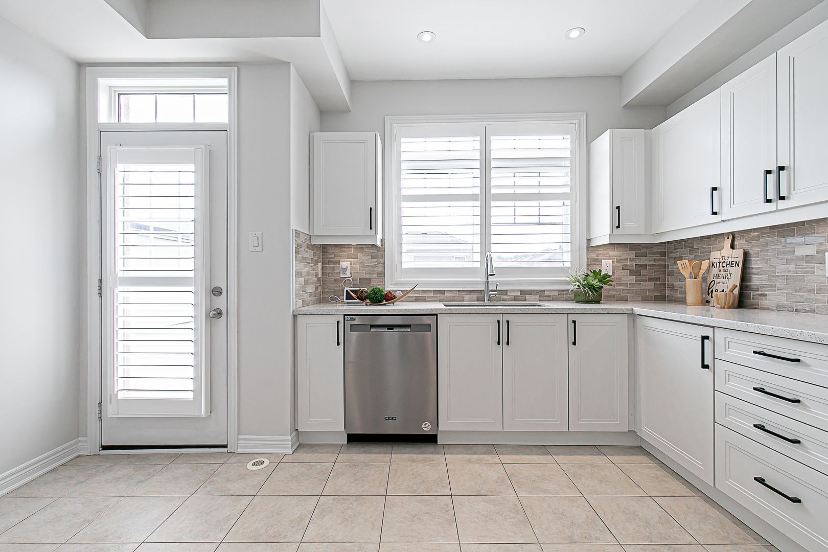Exquisite Freehold TH in quiet desirable location. Spacious 1711 sqft. Large LR, Eat-In Kitchen features stainless steel appliances, new b/splash and w/o to private deck. Finished above grade bright basement with direct access to garage. Close to transit and Mount Joy Go station, park and conservation area, great schools - Bur Oak Secondary and Greensborough PS.House freshly painted throughout. High efficiency furnace & central air, oak staircase, hardwood on main flr. New hardwood upper level,brand new upgraded laminate on lower level.Kit w/upgraded cabinets, quartz counter, new backsplash.
