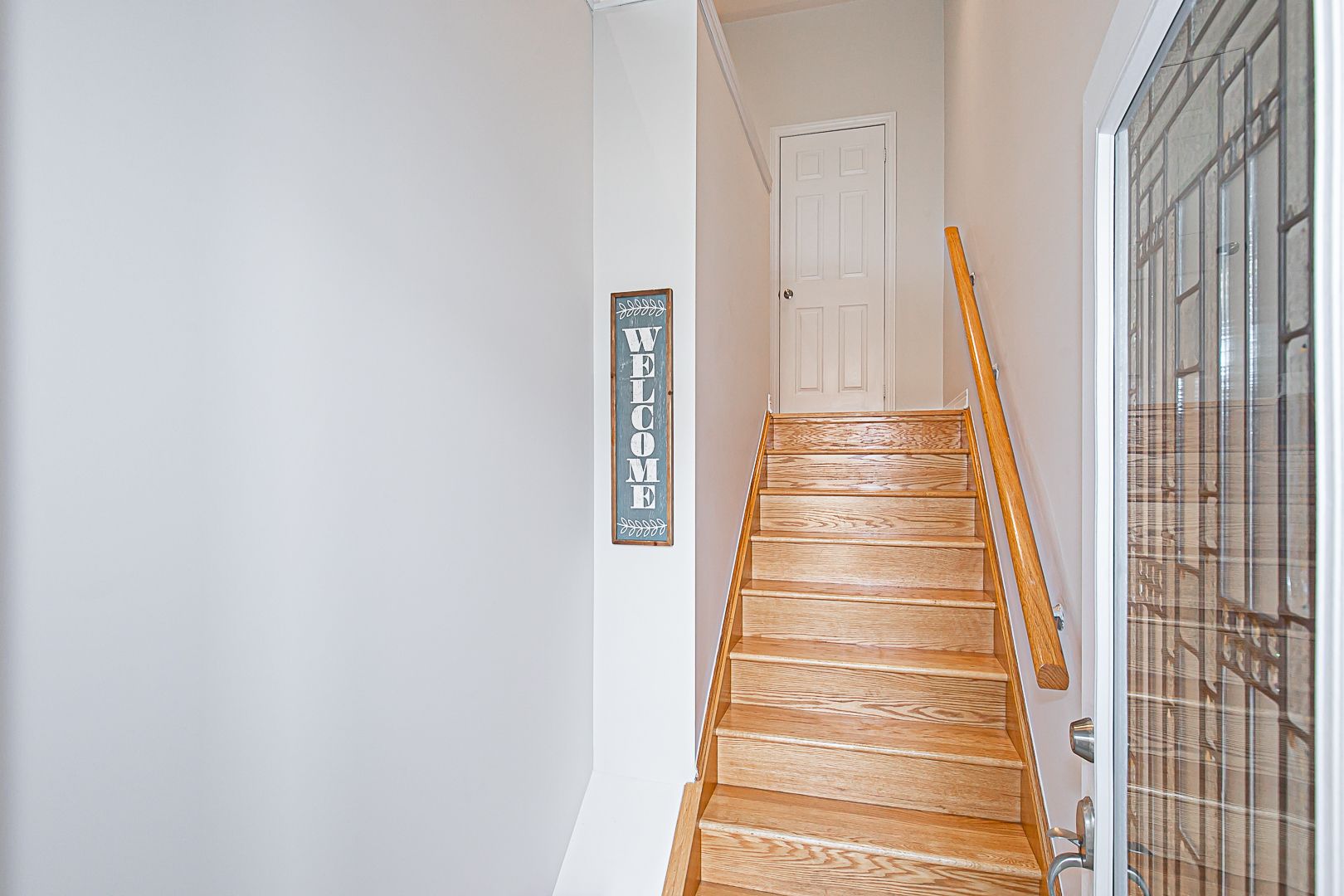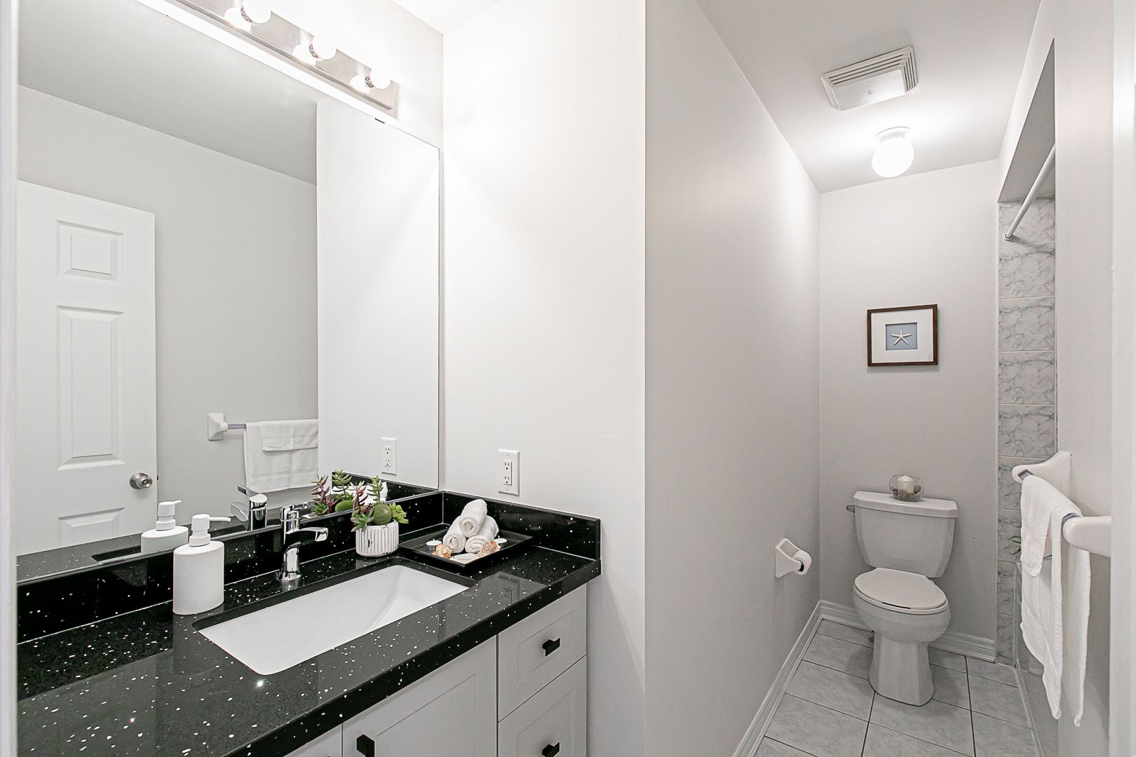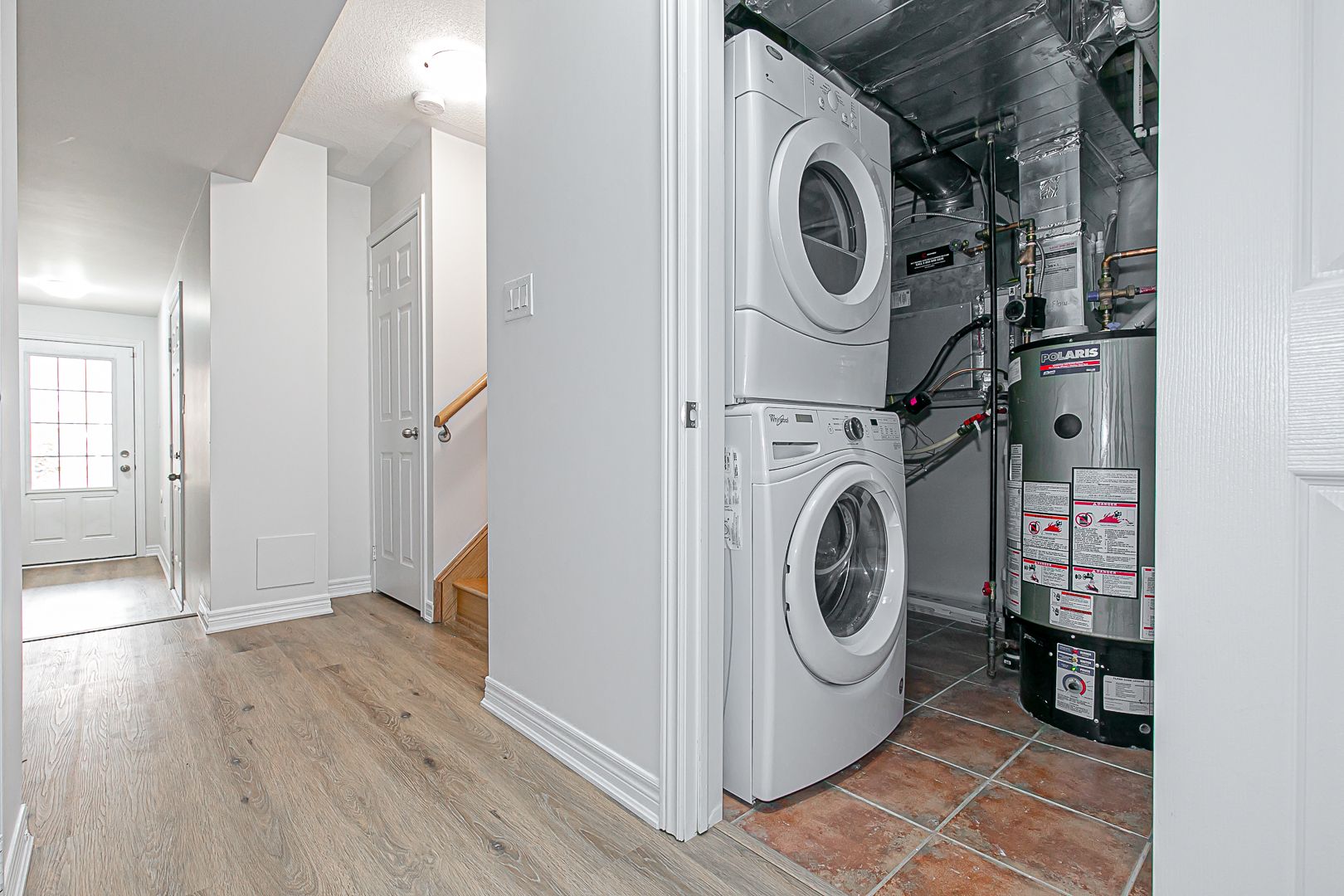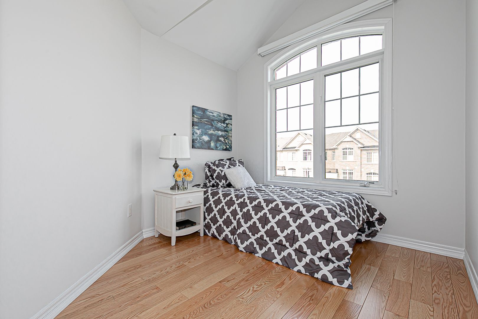 Exquisite Freehold TH in quiet desirable location. Spacious 1711 sqft. Large LR, Eat-In Kitchen features stainless steel appliances, new b/splash and w/o to private deck. Finished above grade bright basement with direct access to garage. Close to transit and Mount Joy Go station, park and conservation area, great schools - Bur Oak Secondary and Greensborough PS.House freshly painted throughout. High efficiency furnace & central air, oak staircase, hardwood on main flr. New hardwood upper level,brand new upgraded laminate on lower level.Kit w/upgraded cabinets, quartz counter, new backsplash.