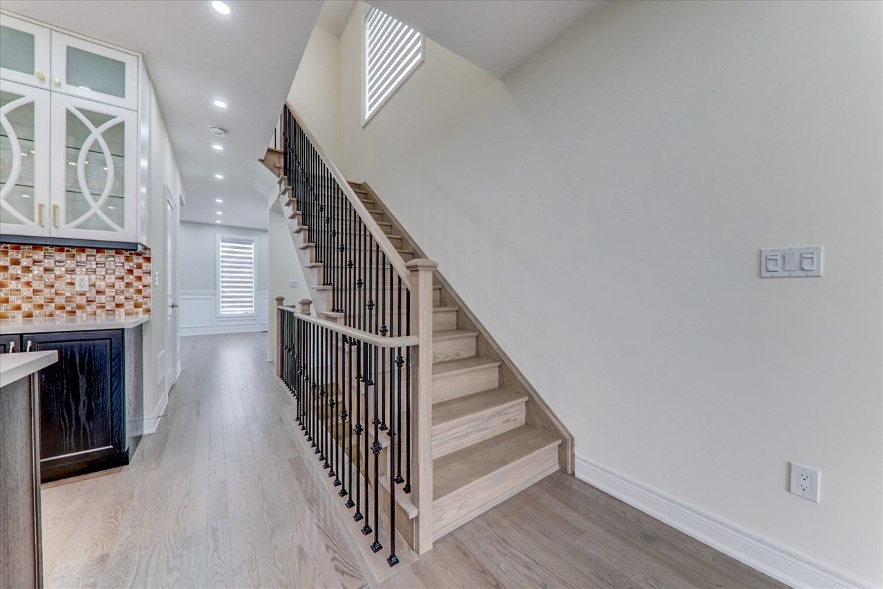 Welcome To This Beautiful, Brand New Endtownhouse By Fair Tree. This OAKLEY (Elev D) Home Has 2,600 Sq Ft Of Finished Area W/ 4 Br & 4 Wash. Backs On To Ravine Lot, "Overlooking Pond" Luxurious Finishes , Open-Concept Layout W/ 9 Ft Ceiling & Upgraded Tiles & Hardwood Floors. Wainscotting On 2nd & 1st Flr. Custom Built Kitchen With Caesarstone Kitchen Countertops, Designer Backsplash, S/S Appliances & U/Gas Line. Servery Room With Butler's Pantry With Sink, Open Concept Living/ Dining Rm W/ Electric Fireplace Accent Wall. Master Bedroom With Walk-In Closet & 5Pc Ensuite W/ Frameless Glass Shower. BRM & Full WRM W/ F/GLASS Shower On 1st Floor. Freshly Painted. Large Windows. ** Rough-In For Basement Washroom. Close To Golf Course, Schools, Parks, All Major Banks, Costco, Walmart/Canadian Tire/Home Depot.. Top-Ranking School Middlefield Collegiate Institute. **Don't Miss It! Come & See.***Brand New (S/S Fridge, S/S Dishwasher, S/S Stove, Washer & Dryer) , Interior Pot Lights, Luxury Lighting Throughout , Custom Zebra Blinds. Buyer/Buyer's Agent Has To Verify All The Measurements & lot Size