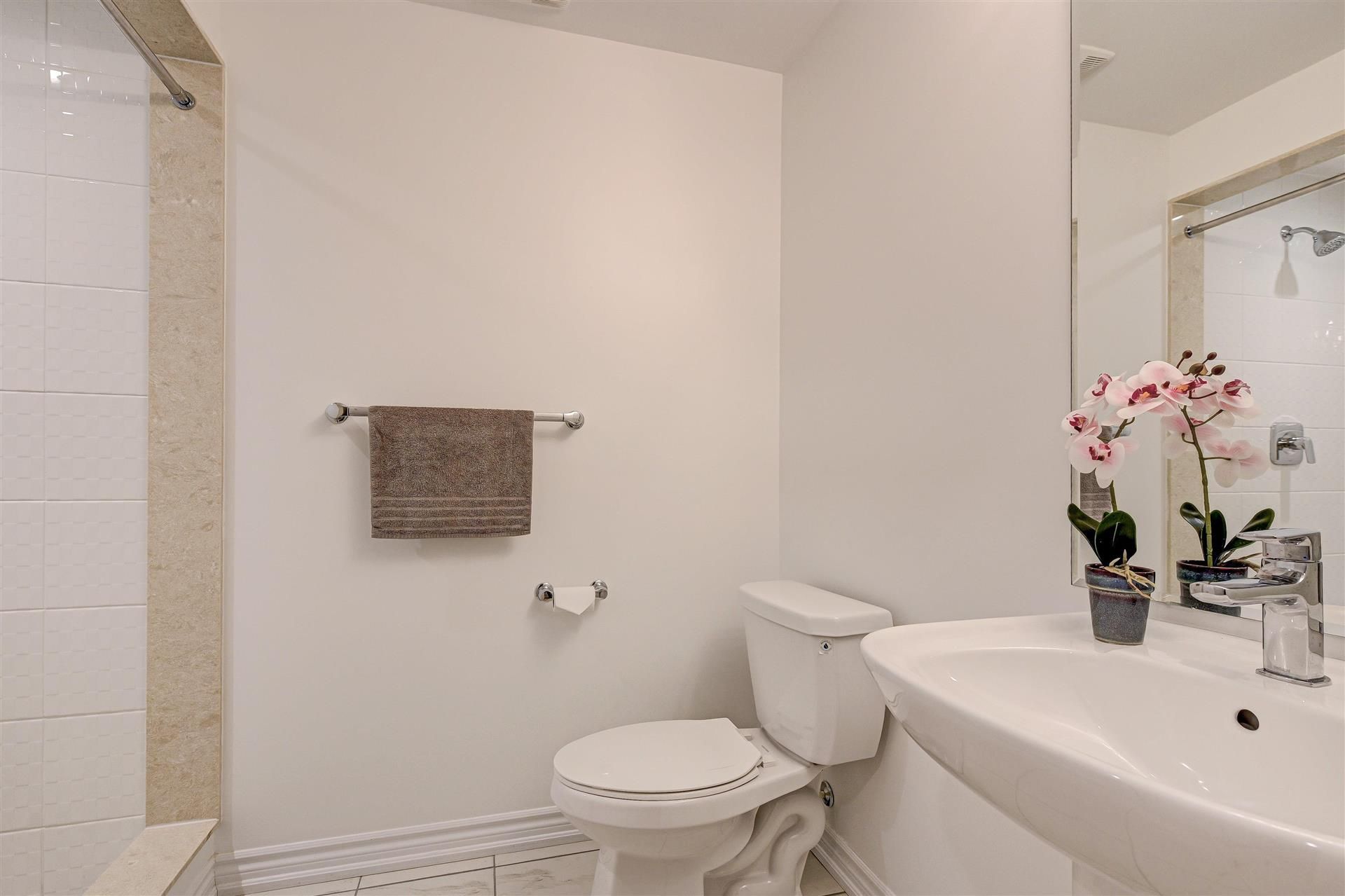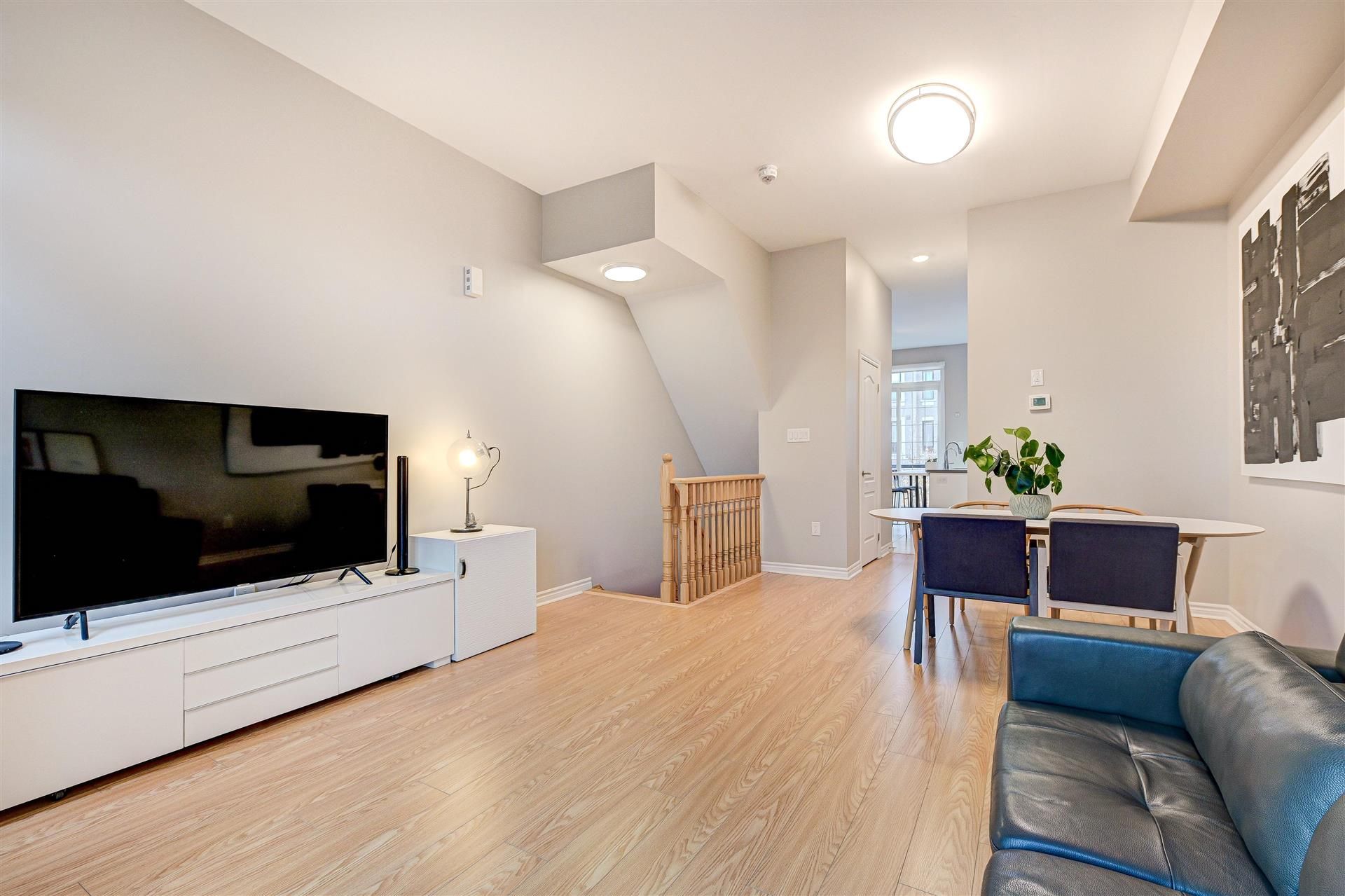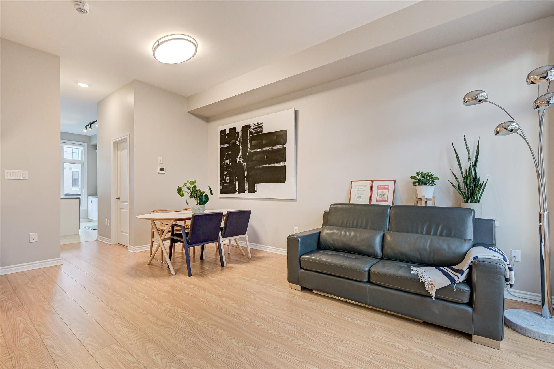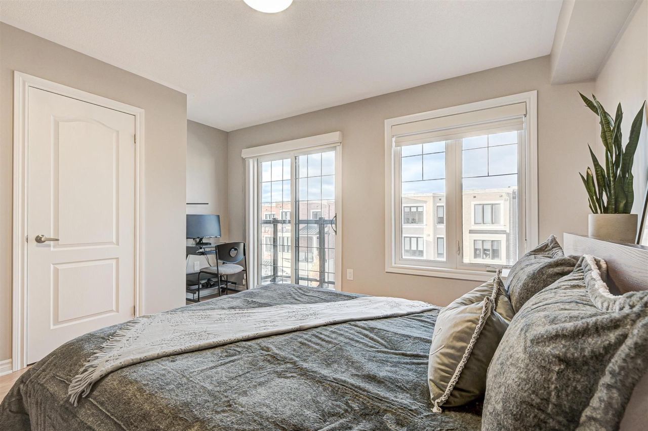 Rarely offered - Contemporary style Town home with three levels of practical living space nested in popular Greensborough community. Main level features an inviting open concept living /dining room with 10 ft. smooth ceiling & sun filled South-Facing large windows, a modern White Kitchen w/ Centre Island and quartz counter finishes, ample tall cabinetry, backsplash, stainless steel appliances, & a walk-out to an open-air Terrance ready for outdoor lounge & BBQ fun. Upper level provides the cozy comfort of laundry station, and Ensuite bath for both bedrooms. Ground level, with welcoming 9 ft. ceiling, finished w/ a spacious recreation space, 3 pcs Bath (w/shower) & above-ground large window (makes perfect use as Home Office) with separate entrance door & a walk-out access to Basement Garage (per MPAC des.) & rear laneway driveway. Prime location w/ close proximity to Mount Joy Go Train Station, Swan Lake Park, all the shops & restaurants Markham Road & 16th Ave corridor has to offer.Proud Original Owner- Well Maintained and Ready for Move In. POTL fee ($136.65) includes garbage and snow removal for common elements.