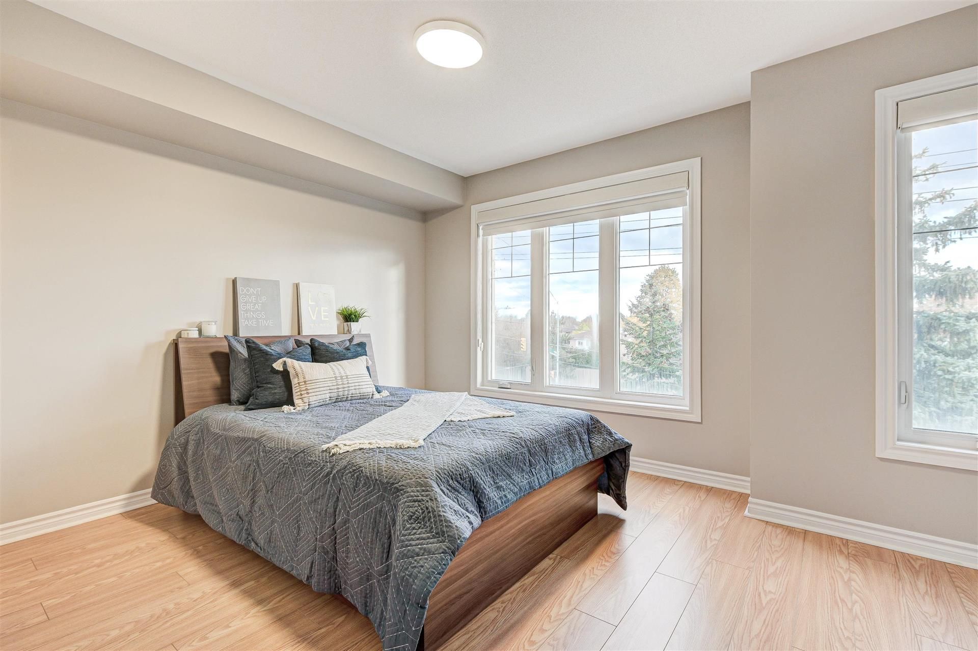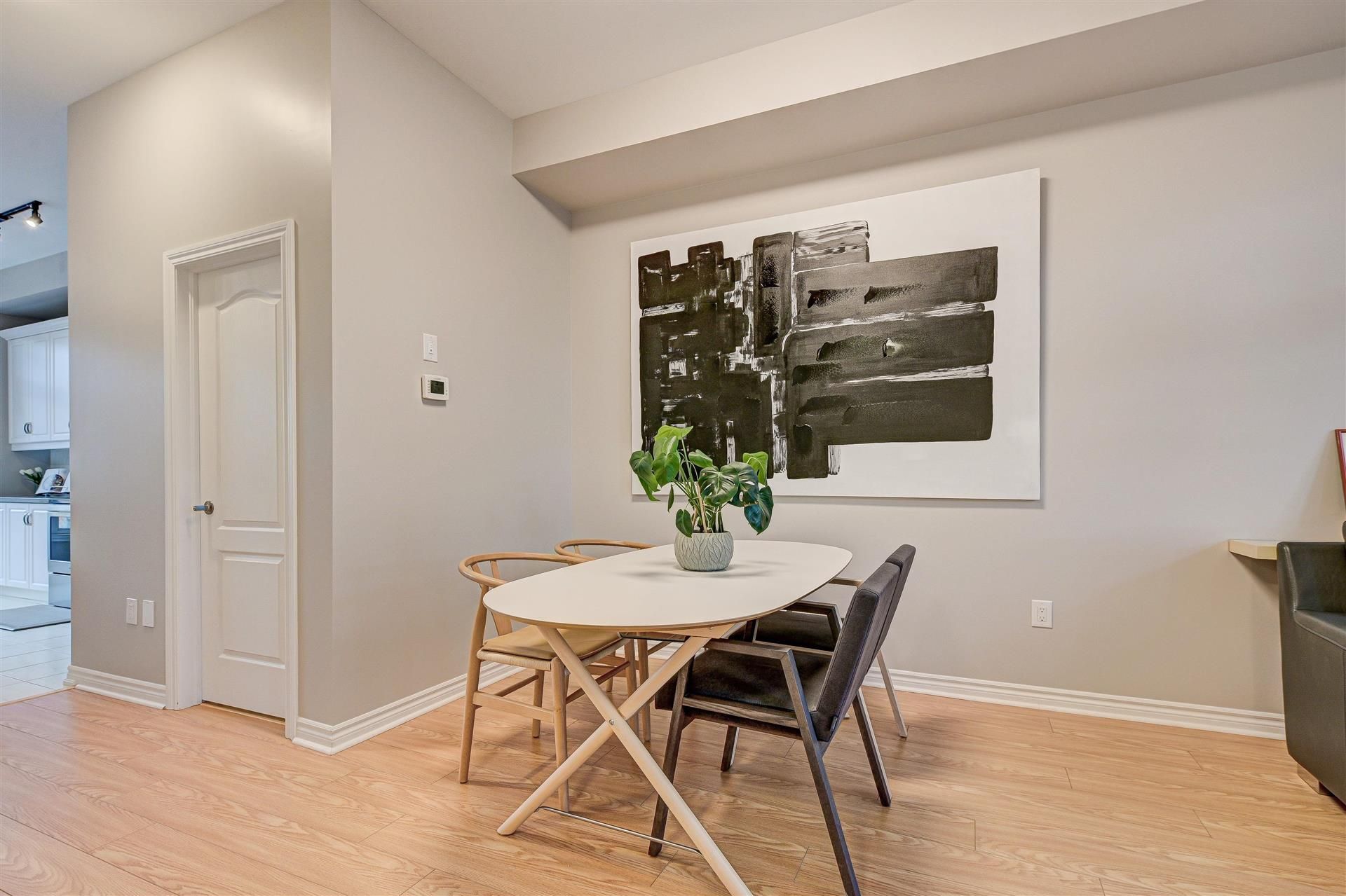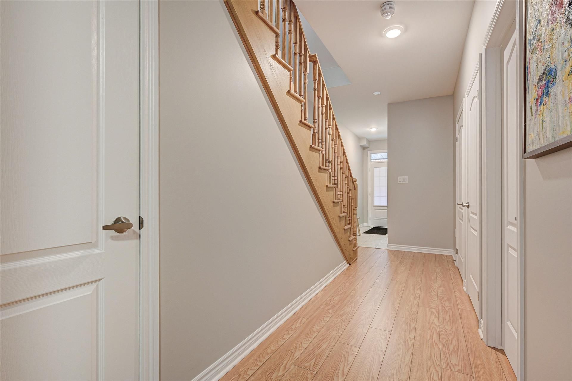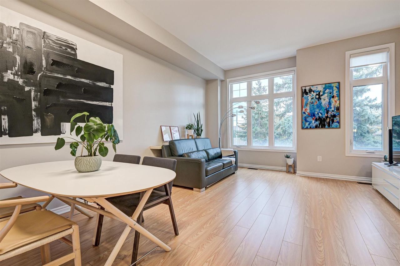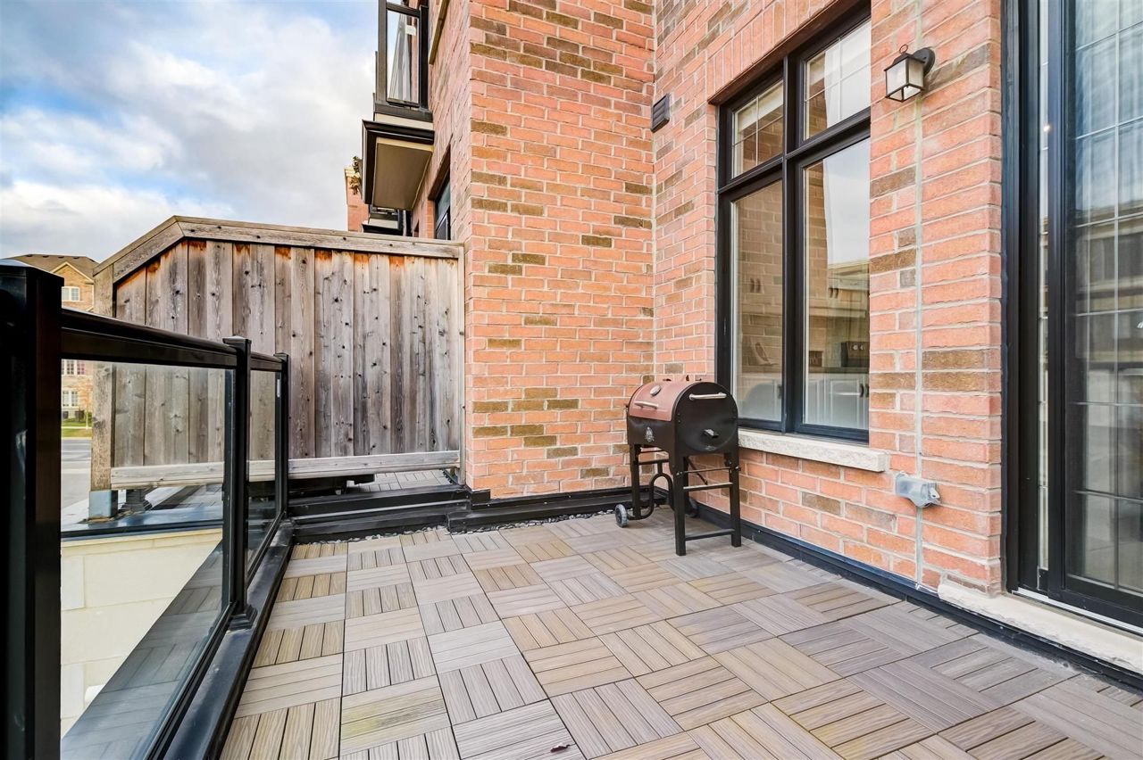 Rarely offered - Contemporary style Town home with three levels of practical living space nested in popular Greensborough community. Main level features an inviting open concept living /dining room with 10 ft. smooth ceiling & sun filled South-Facing large windows, a modern White Kitchen w/ Centre Island and quartz counter finishes, ample tall cabinetry, backsplash, stainless steel appliances, & a walk-out to an open-air Terrance ready for outdoor lounge & BBQ fun. Upper level provides the cozy comfort of laundry station, and Ensuite bath for both bedrooms. Ground level, with welcoming 9 ft. ceiling, finished w/ a spacious recreation space, 3 pcs Bath (w/shower) & above-ground large window (makes perfect use as Home Office) with separate entrance door & a walk-out access to Basement Garage (per MPAC des.) & rear laneway driveway. Prime location w/ close proximity to Mount Joy Go Train Station, Swan Lake Park, all the shops & restaurants Markham Road & 16th Ave corridor has to offer.Proud Original Owner- Well Maintained and Ready for Move In. POTL fee ($136.65) includes garbage and snow removal for common elements.