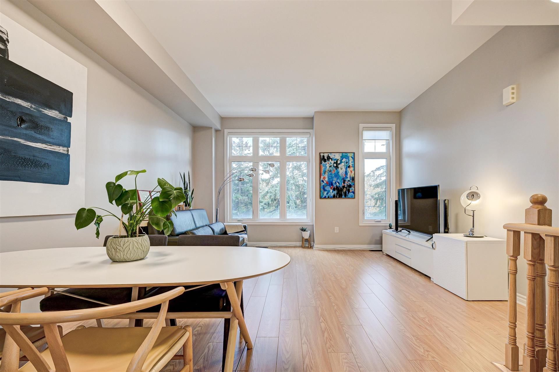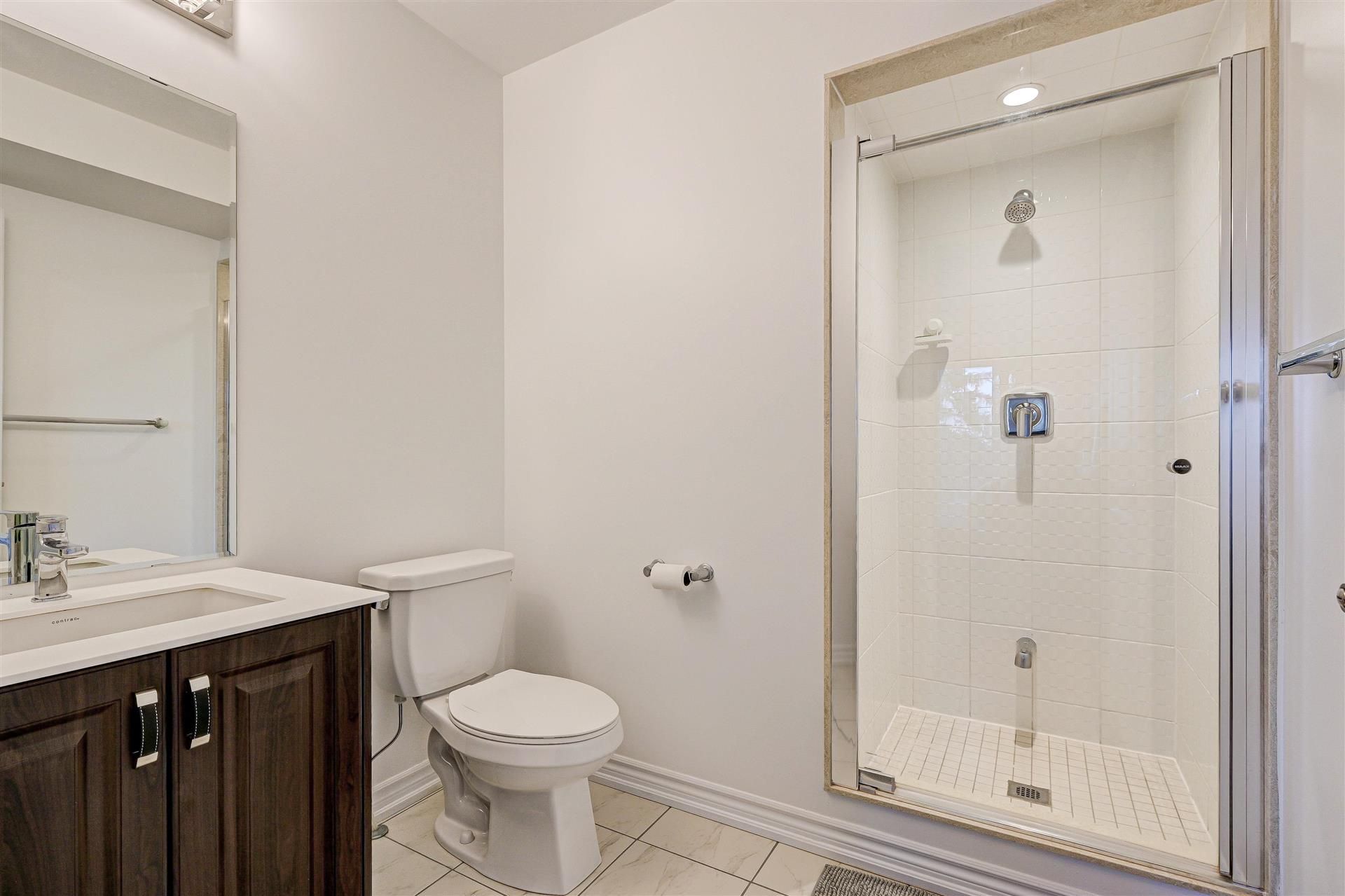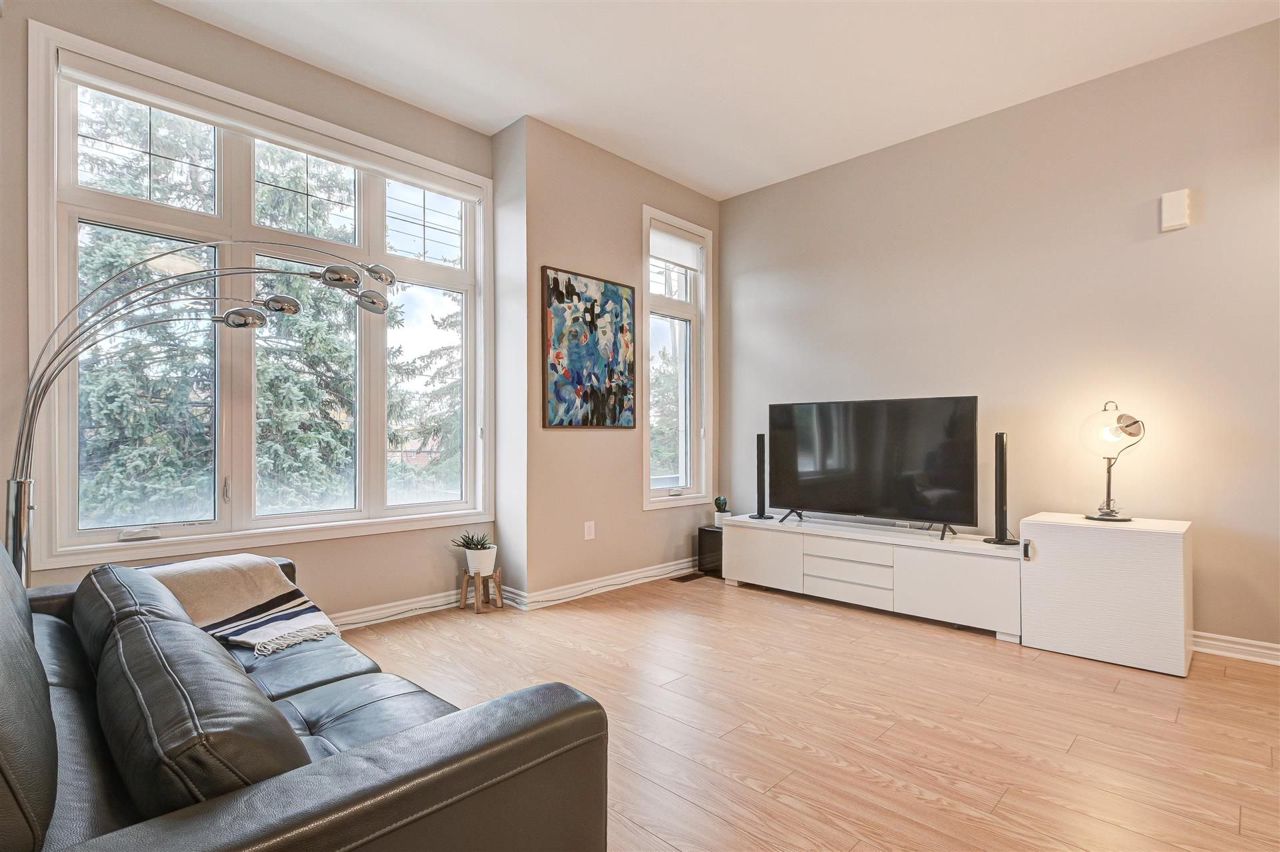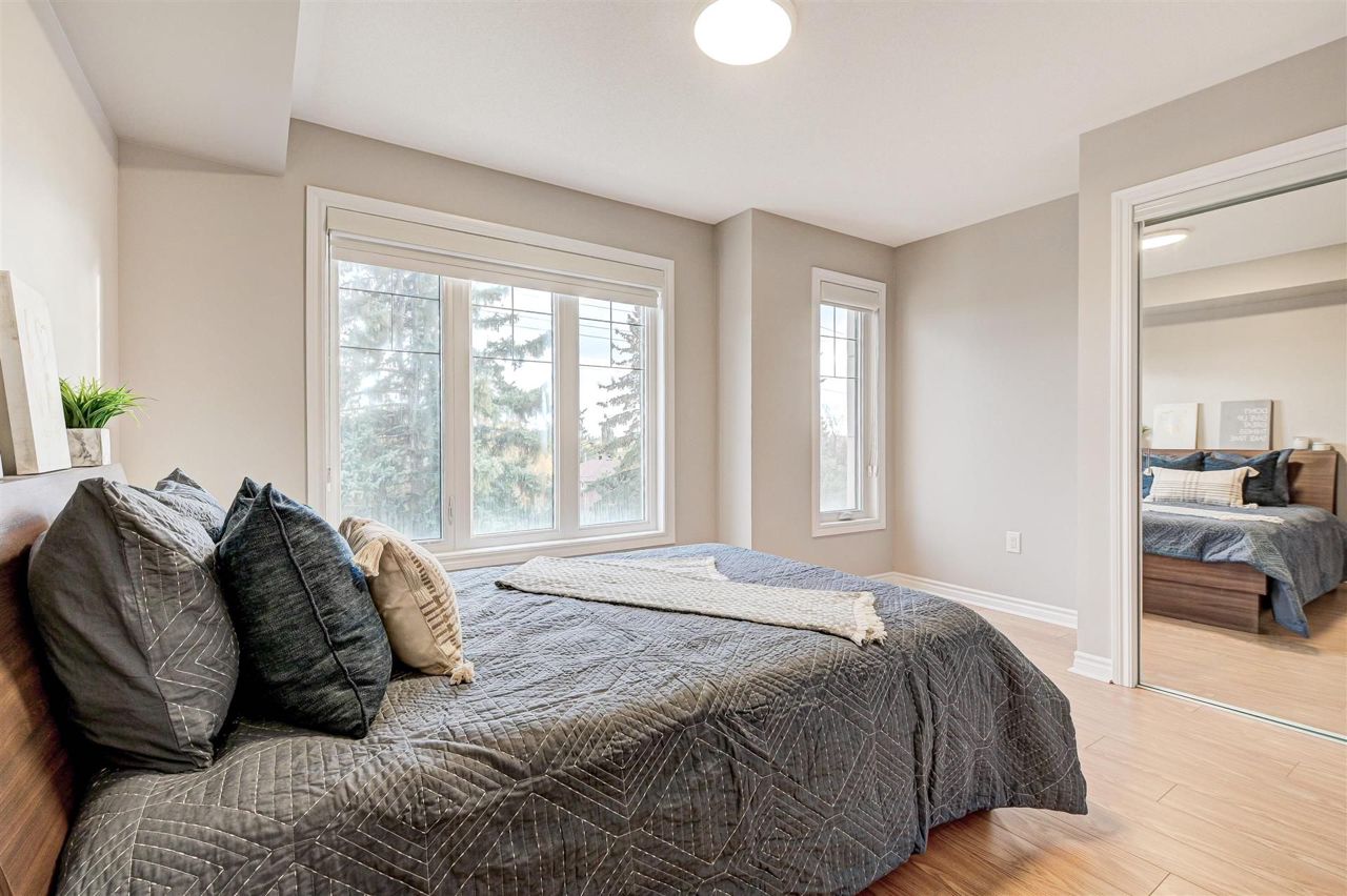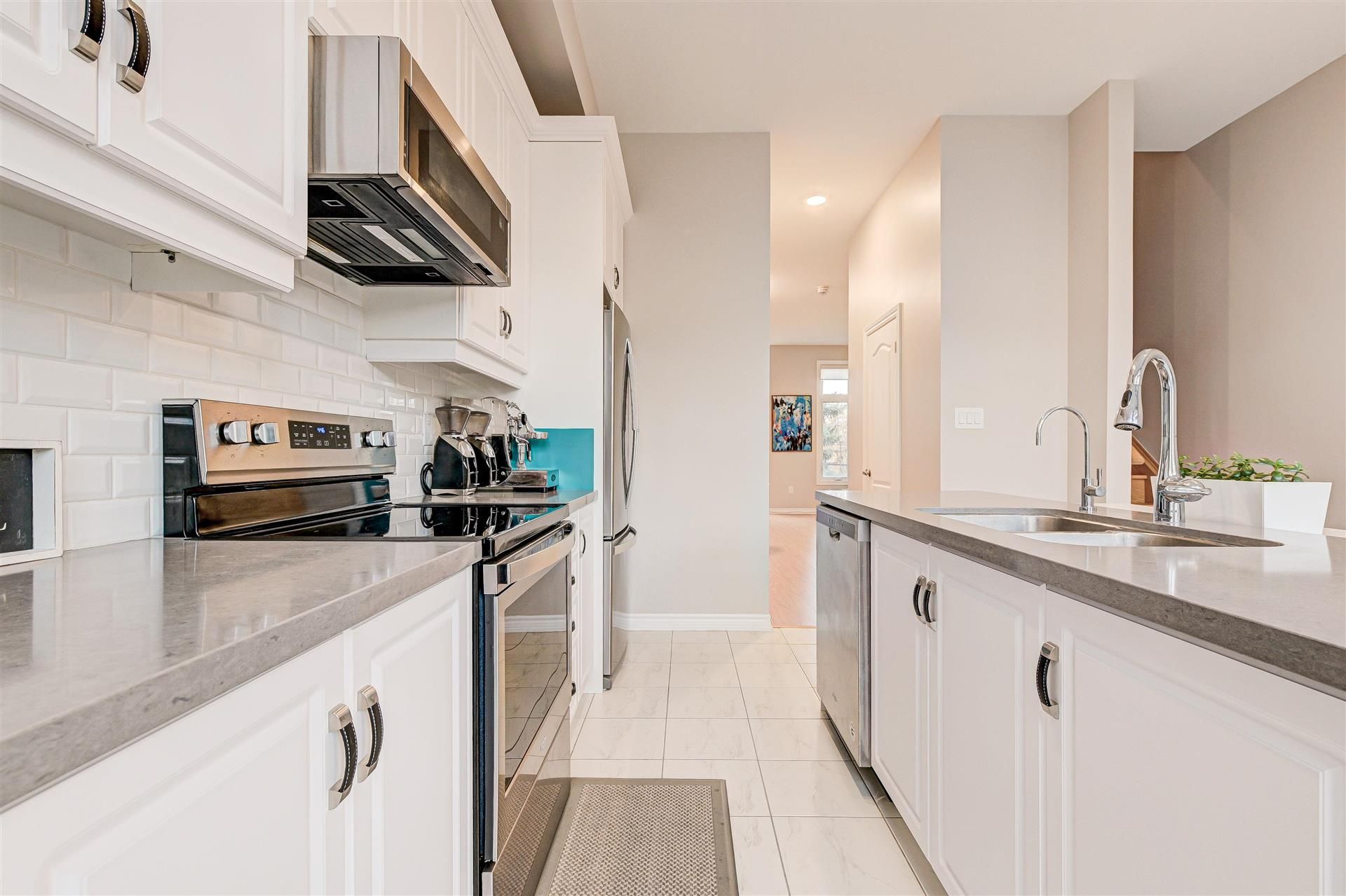 Rarely offered - Contemporary style Town home with three levels of practical living space nested in popular Greensborough community. Main level features an inviting open concept living /dining room with 10 ft. smooth ceiling & sun filled South-Facing large windows, a modern White Kitchen w/ Centre Island and quartz counter finishes, ample tall cabinetry, backsplash, stainless steel appliances, & a walk-out to an open-air Terrance ready for outdoor lounge & BBQ fun. Upper level provides the cozy comfort of laundry station, and Ensuite bath for both bedrooms. Ground level, with welcoming 9 ft. ceiling, finished w/ a spacious recreation space, 3 pcs Bath (w/shower) & above-ground large window (makes perfect use as Home Office) with separate entrance door & a walk-out access to Basement Garage (per MPAC des.) & rear laneway driveway. Prime location w/ close proximity to Mount Joy Go Train Station, Swan Lake Park, all the shops & restaurants Markham Road & 16th Ave corridor has to offer.Proud Original Owner- Well Maintained and Ready for Move In. POTL fee ($136.65) includes garbage and snow removal for common elements.