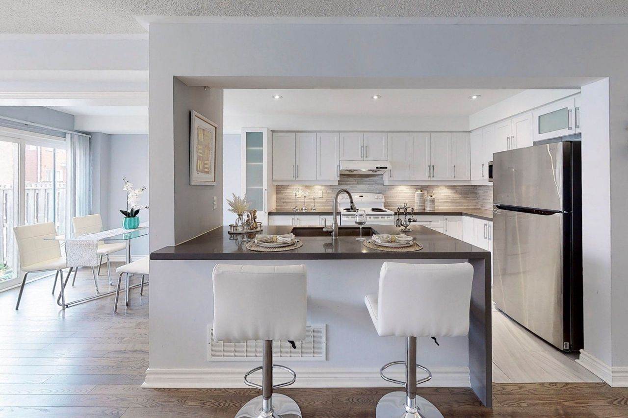 精心维护的独立产权联排别墅,坐落于热门的Berczy Village社区!宁静的家庭街道。一楼和二楼的硬木地板。开放式客餐厅,阳光明媚的用餐式厨房带宽敞的早餐区,并通向全面围挡的院子。步行可到达顶级学校(Stonebridge公立学校、Pierre Elliott Trudeau)及商铺。距离Markville cúpula、超市、餐厅、银行、学校、公共交通和GO火车站仅需几分钟车程。车库提供直接通道。冰箱、炉灶、洗衣机、烘干机、车库门开启器、电子灯具和窗帘。