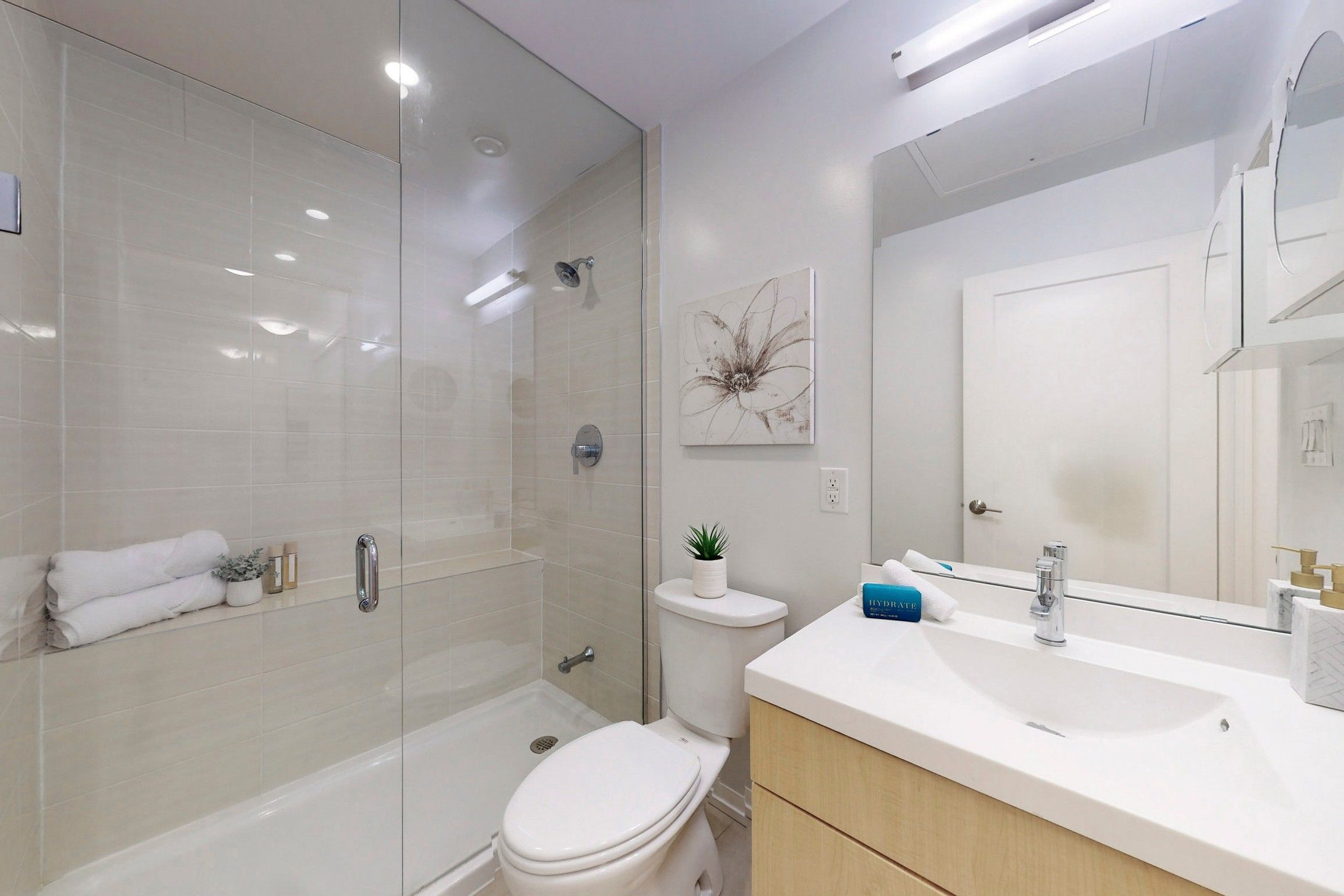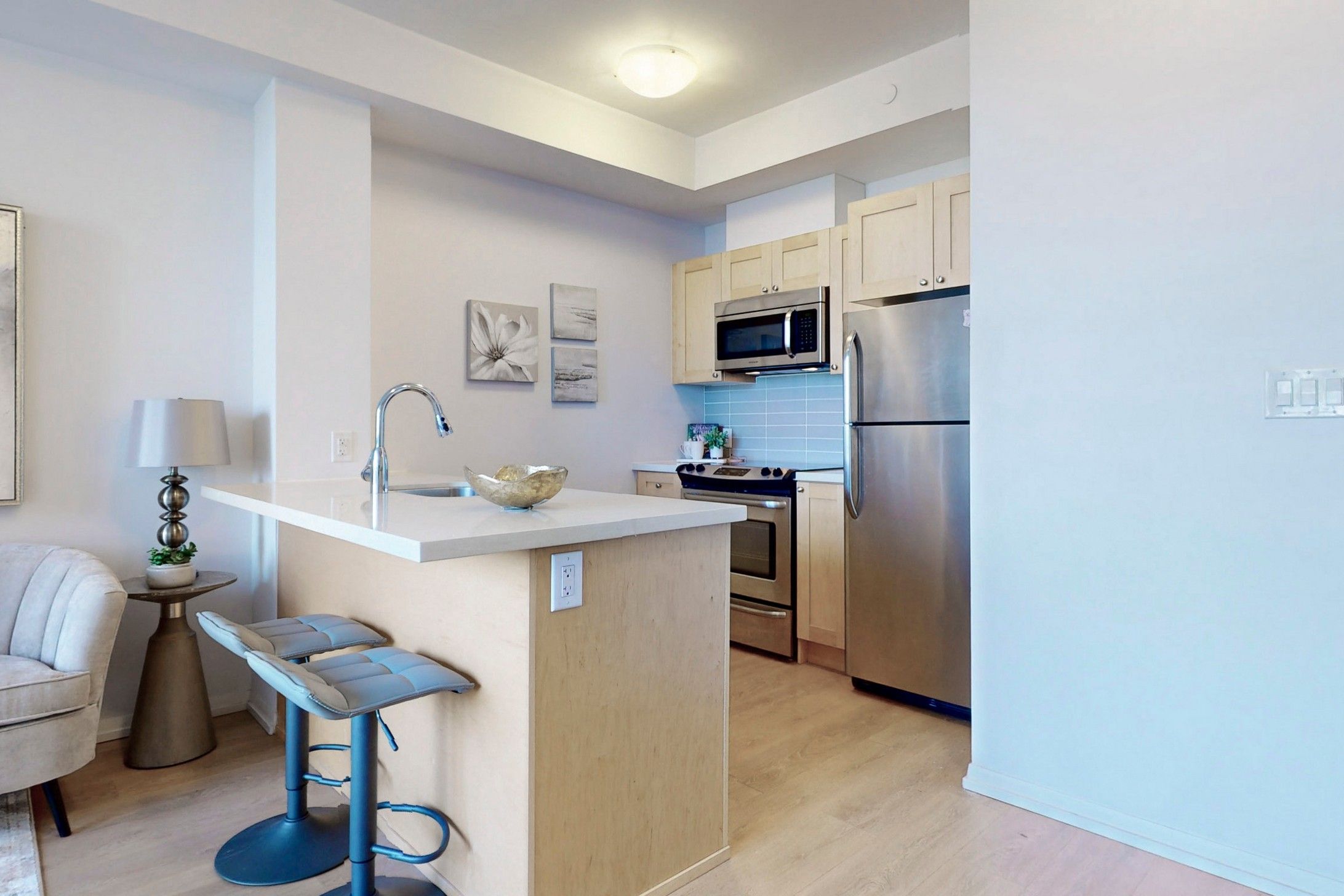 Looking for a One Bedroom Condo that's Conveniently Located in a Very Accessible Location? Welcome to "The Essential" this One Bedroom & One Washroom comes with 2 Lockers & 1 Parking that's "Handicapped Accessible"!! It's ideal for an Investor or Just Someone Who Likes the Less Maintenance Lifestyle, Whom also Loves the Convenience of Having Everything Walking Distance. This 9' ceilings comes with a Large Balcony, Granite Kitchen with Breakfast Bar, The Primary Bedroom has a Walk-in Closet, and comes with Front Load Washer & Dryer Ensuite Laundry. Building Amenities include Gym, Sauna, Party Room, Front Desk Security and a Gorgeous Rooftop Terrace Featuring both Covered and Uncovered Lounging Areas, BBQ's Allowing Plenty of Space for Entertaining. Situated at McCowan & Bur Oak Berczy VillageSteps To Shopping Plaza With Supermarket, Shoppers, Bank and Restaurant, Public Transit, Parks & Top Ranking School District (Stonebridge P.S & Pierre Elliot Trudeau H.S)All appliances are SS, Fridge, Dishwasher, Stove, B/I Microwave hood fan, All ELFs, Medicine Cabinet, A/C, Furnace.