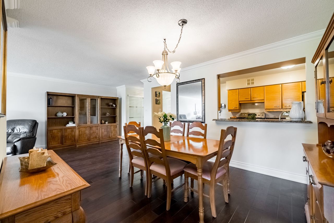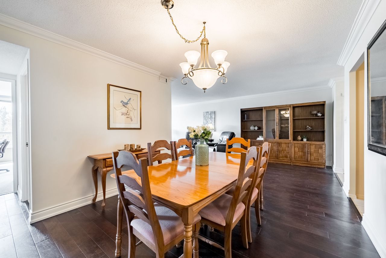 Spacious & updated "trumpeter" floorplan, coming in at 1345 square feet. They don't make apartments like this anymore, large windows flood each room with warm natural light and offer gorgeous views of greenspace with a south-west view. Tastefully updated with an open concept, extended living room, modern eat-in kitchen & formal dining room. Walk-in pantry/storage room with ensuite laundry. "King" sized primary suite with double walk-in closets and contemporary upgraded ensuite with large walk-in glass shower. Large second bedroom with double closet. Fabulous location right next to Markville Mall and walking distance to all amenities including Main Street Unionville, GO transit stop right outside building and Centennial station right up the street. Beautifully landscaped grounds with trails, mature trees and well-manicured gardens. Nearby pond and walking trails provide rural/suburban feel with all the modern amenities needed for day-to-day life. Friendly building with community feel!1 underground parking space, 1 storage locker. Status certificate in hand. Building amenities include indoor pool, visitor parking, tennis courts, exercise room, games room, library, gated access with security guard and more!