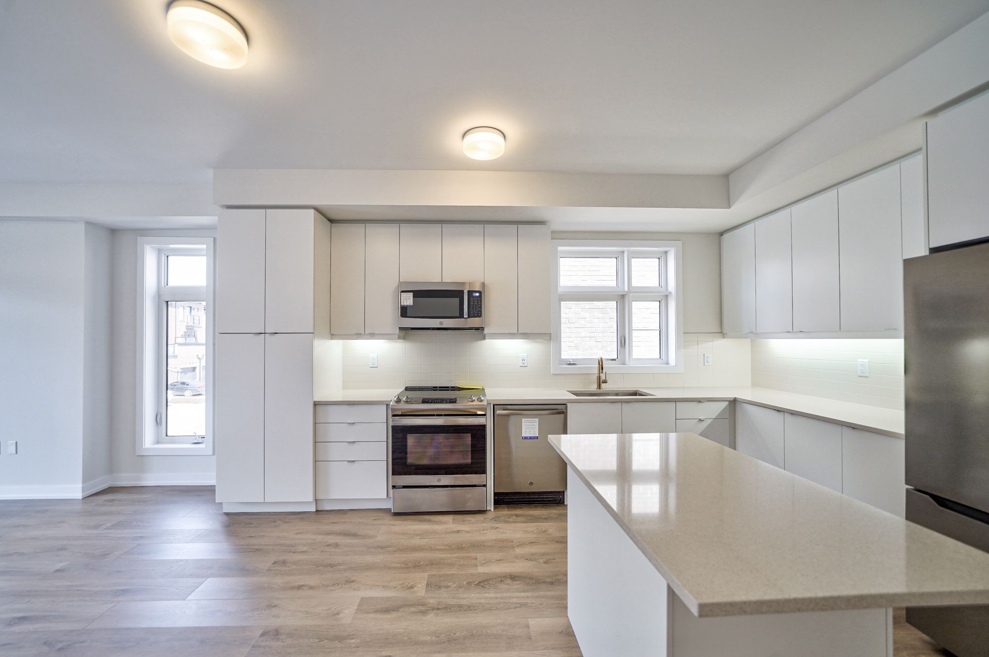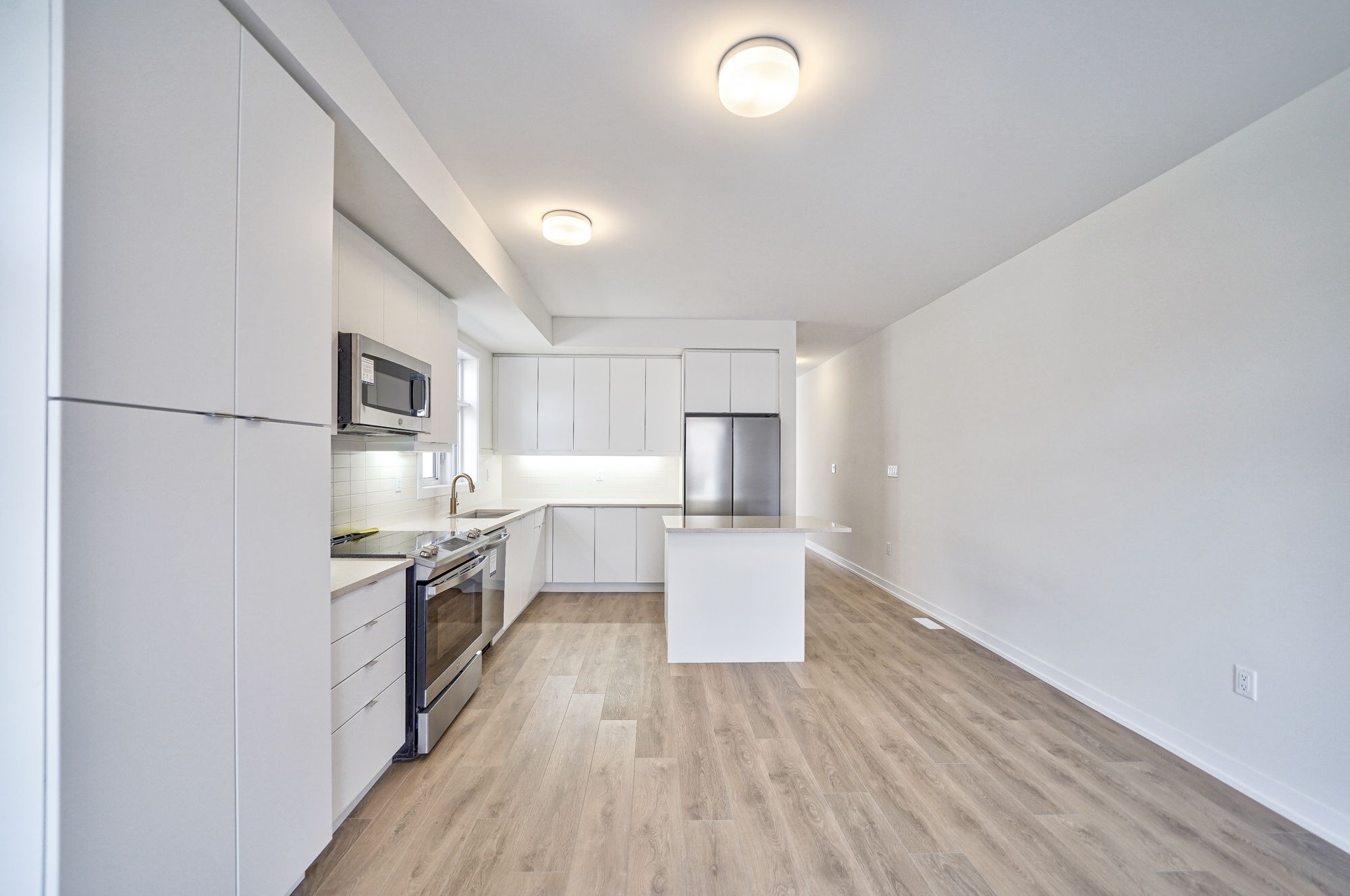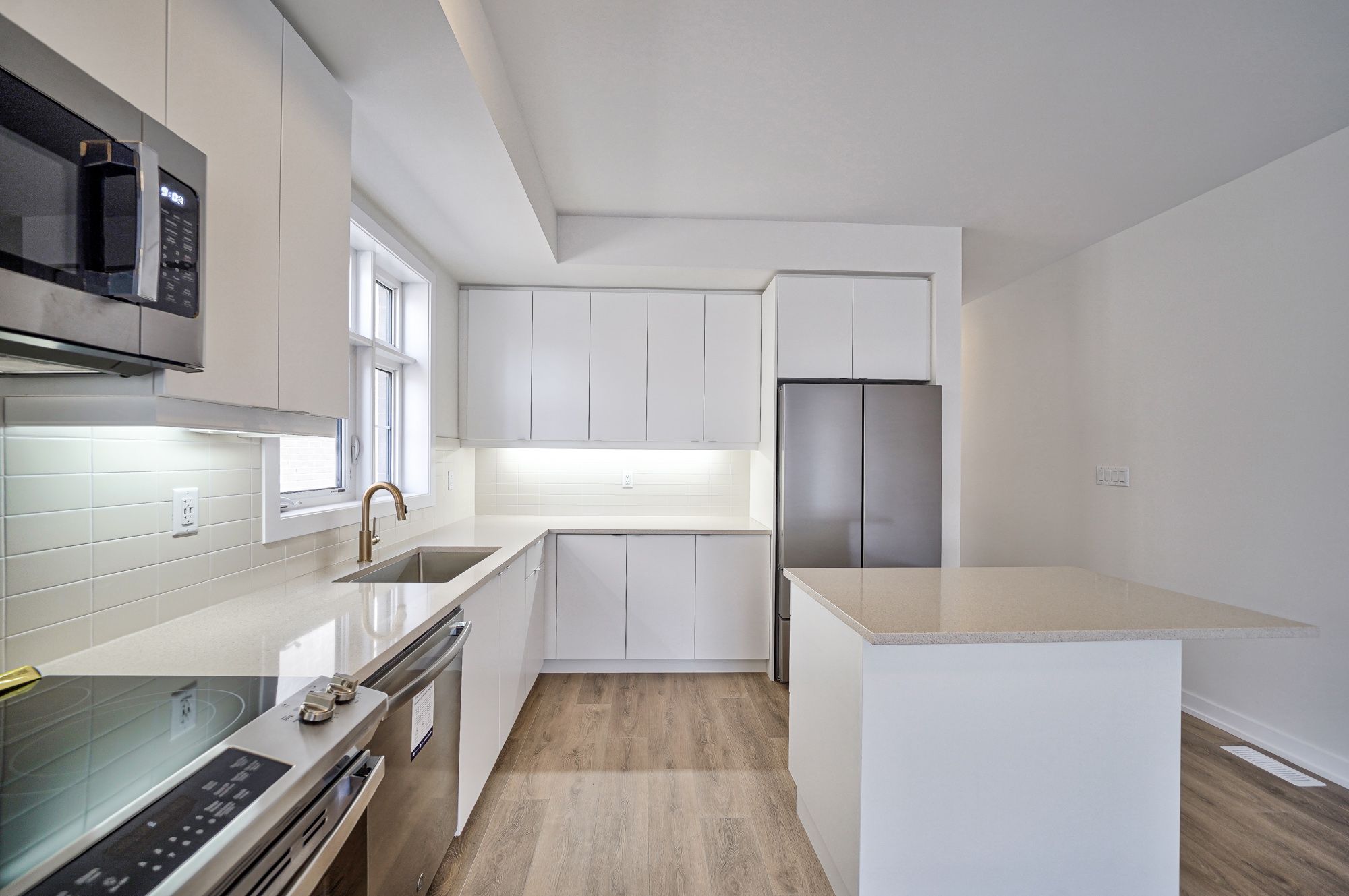 Welcome to this brand new Townhome End Unit. Functional layout (Approx. 2481sqft) with 4 Bedroom and 3.5 bath offering modern features and loaded with upgrades. Tons of Large windows fill the house with sunlight. Functional L-shape kitchen with extra counter space. Spacious Ground floor Family/Recreation room with 3pc bath. The Family room opens directly to deck, complete with gas line rough in, perfect for hosting BBQ and outdoor gathering. High demand neighborhood Close to 407/ Community Center/ Supermarket/Restaurants/Markham Stouffville Hospital & Cornell Bus terminal.Upgrade includes: Smooth Ceiling. 3 pieces Rough in and Cold Cellar at Basement.Rouge-in for Natural Gas BBQ connection.Conduit for EV charger.Frameless glass shower.Pull out recycling center,pots & pans drawer and valance light at kitchen.