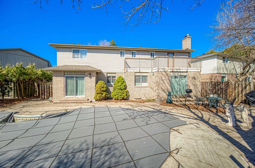 Offers Welcome Anytime for this charming 4-bedroom detached home tucked away on a quiet, exclusive court of just 8 homes, off historic Mansion Alley (Church St). Located in the heart of one of Markham's most desirable, family-friendly neighborhoods, this 2-storey gem sits on a generous pie-shaped lot, a rare find with incredible potential. Lovingly maintained by its original owners, this home is ready for your personal touch. Featuring a functional open-concept living and dining area with walk out to backyard, the space is bright and inviting. The expanded family room includes a cozy fireplace with walk-out to your backyard oasis ideal for entertaining and relaxation. You will also enjoy the convenient main floor laundry. Upstairs, you'll find four well-sized bedrooms, including a spacious primary suite with balcony and an ensuite bath. With great bones, an unbeatable location, and a lot full of possibilities, this home is perfect for buyers with a vision. A rare opportunity to transform a solid house into your dream home in a truly special neighborhood! Lot Measurements; 33.32 ft x 115.86 ft x 9.41 ft x 9.41 ft x 9.41 ft x 9.41 ft x 9.41 ft x 9.41 ft x 128.34 ft x57.94 ft
