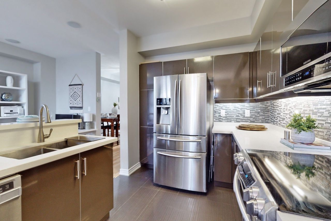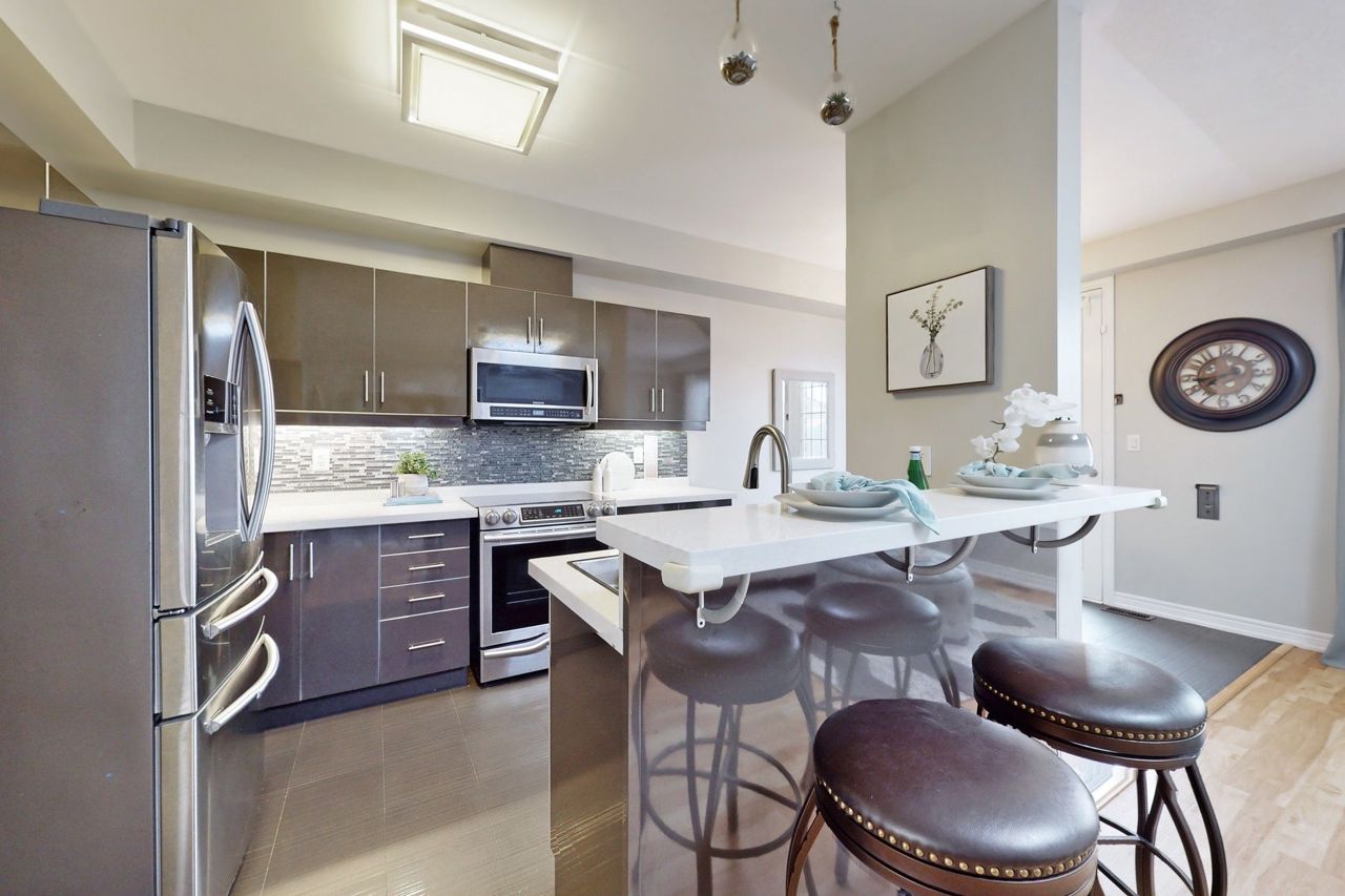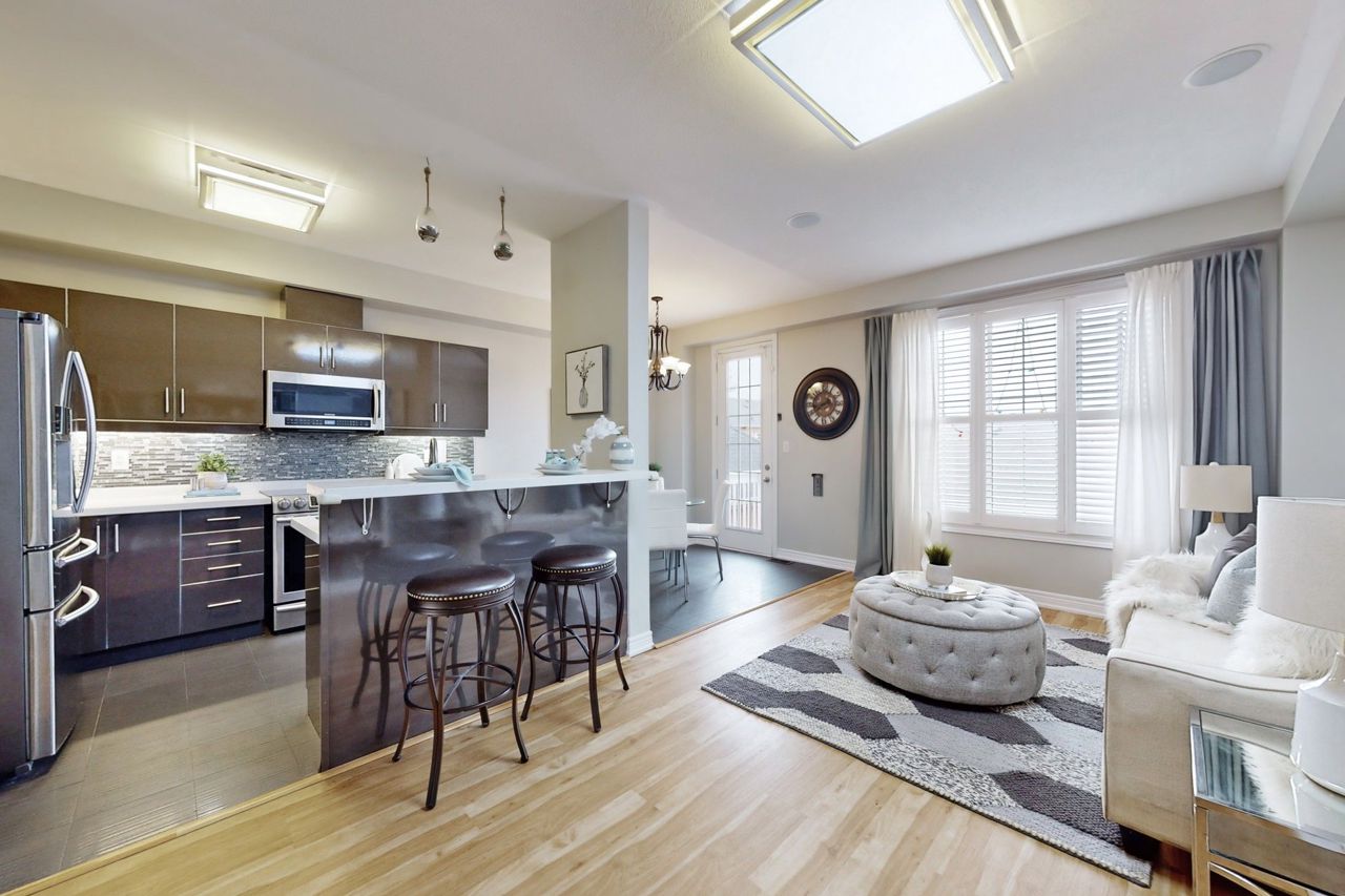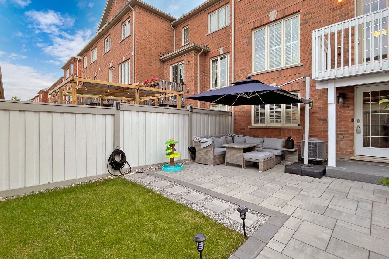 Excellent newer upgraded 3 bedrooms, 4 bathrooms, Walk out basement freehold Townhouse with double car garage, The layout includes a seperate dining room, living room and family room. The showstopper is the stunning upgraded open concept kitchen with beautiful stone counters, backsplash and s/s appliances. Huge fully furnished walk out basement has a wet bar to entertain family and friends, a washroom with access to a generous private backyard. 3 generous size bedrooms on the second level and 2 upgraded bathrooms including The Huge primary bedroom showcases a walk-in closet and Ensuite bath with seperate tub and shower. This home comes with upgraded light fixtures, pot lights in the basement, California shutters and upgraded laminate/Vinyl/Ceramic Floors throughout, no carpet. close to public transit, schools, highway access and all amenities. Don't miss this beauty!!Upgraded interlocking and landscaping in backyard (2021), Smart wired security system, Digital locks on front and back, Motion sensor lights on main fl & two washrooms. All Furniture belonging to the seller can be included for extra price.