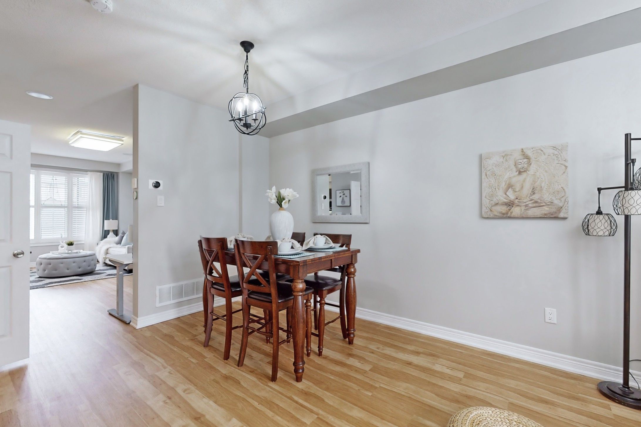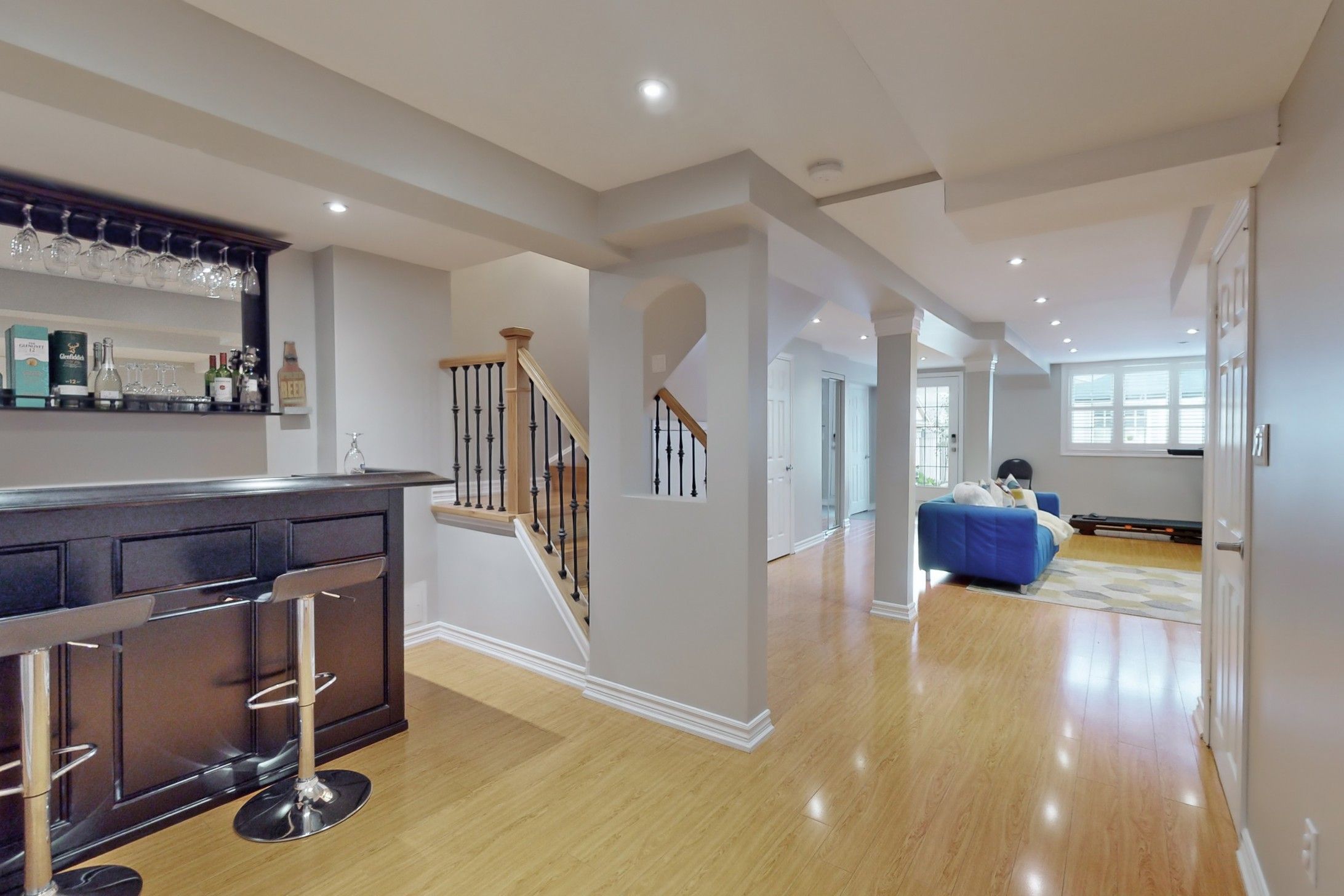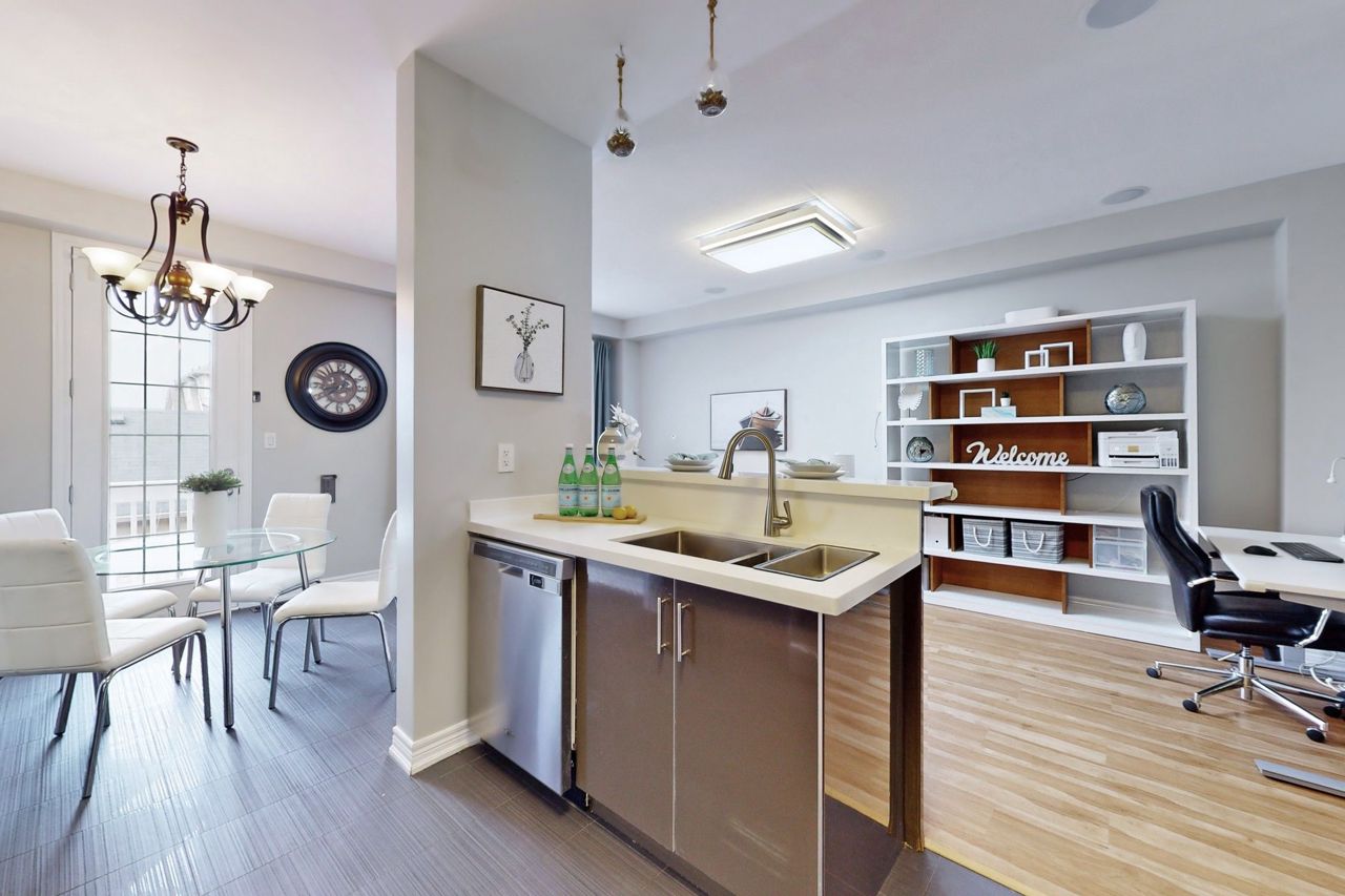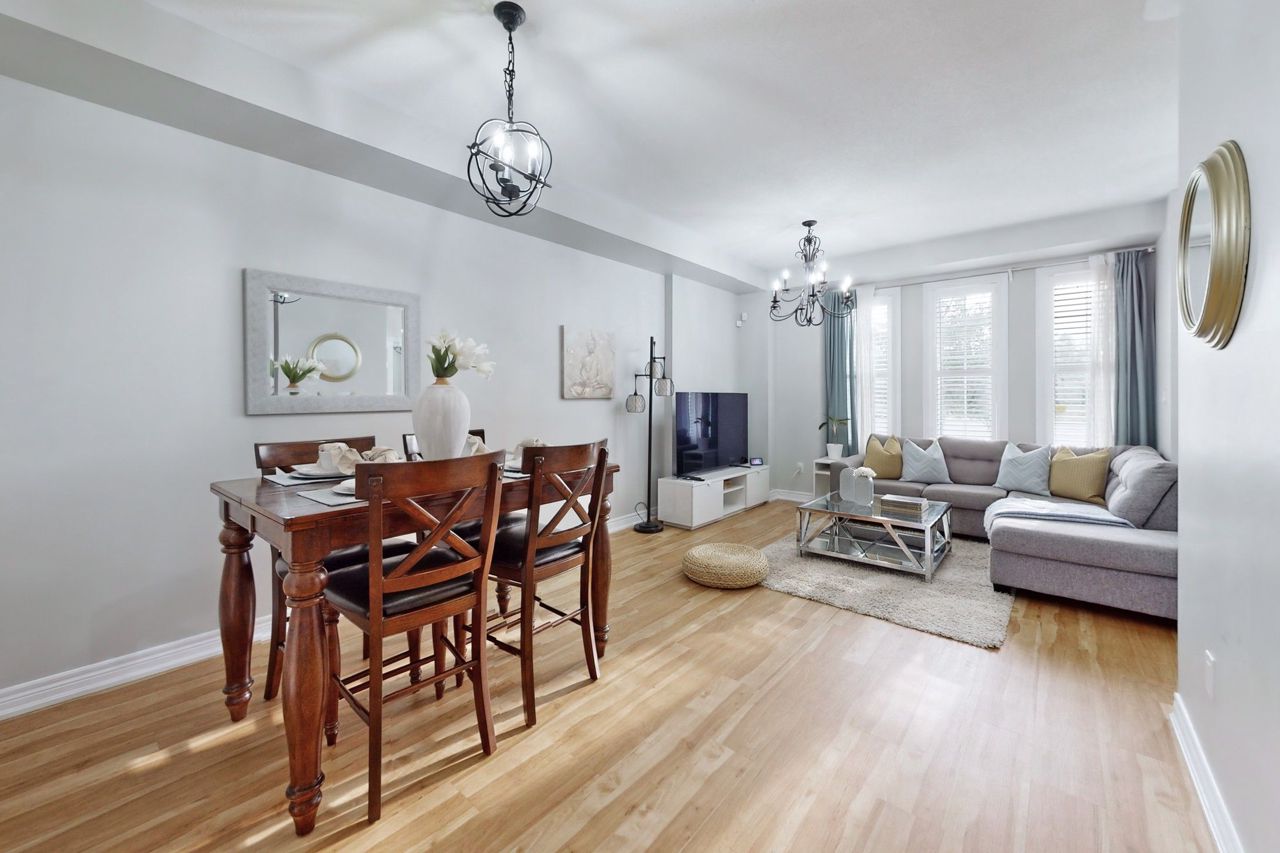 Excellent newer upgraded 3 bedrooms, 4 bathrooms, Walk out basement freehold Townhouse with double car garage, The layout includes a seperate dining room, living room and family room. The showstopper is the stunning upgraded open concept kitchen with beautiful stone counters, backsplash and s/s appliances. Huge fully furnished walk out basement has a wet bar to entertain family and friends, a washroom with access to a generous private backyard. 3 generous size bedrooms on the second level and 2 upgraded bathrooms including The Huge primary bedroom showcases a walk-in closet and Ensuite bath with seperate tub and shower. This home comes with upgraded light fixtures, pot lights in the basement, California shutters and upgraded laminate/Vinyl/Ceramic Floors throughout, no carpet. close to public transit, schools, highway access and all amenities. Don't miss this beauty!!Upgraded interlocking and landscaping in backyard (2021), Smart wired security system, Digital locks on front and back, Motion sensor lights on main fl & two washrooms. All Furniture belonging to the seller can be included for extra price.