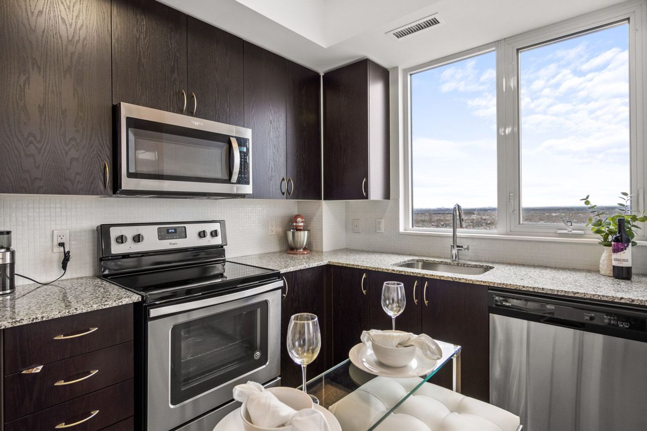 18th Floor's SPECTACULAR VIEW, LOWER PENTHOUSE, Welcome to your urban oasis in the sky! This lower penthouse condo offers a perfect blend of sophistication, breathtaking views, and cozy living, making it an ideal investment or starter home. Located in the heart of the city, this sun-filled residence promises a lifestyle that combines convenience with luxury. The smaller size of this condo ensures a low-maintenance lifestyle, perfect for those seeking a chic urban retreat. The open floor plan seamlessly connects the living, dining, and kitchen areas, making it an ideal setting for both entertaining and everyday living. Whether you're looking for a smart investment opportunity or a stylish starter home, this lower penthouse condo is a rare find that combines modern living with a view that will leave you inspired every day. Don't miss the chance to make this urban retreat yours and elevate your lifestyle to new heights. View today and experience the allure of city living at its finest.512 sqft. Unit Upgraded With Laminate Flooring, Granite Countertop, Undermount Sink, Builder Stainless Steel Appliance Package- Fridge, Stove, Dishwasher, Over The Range Microwave, And Washer & Dryer. 24Hr Concierge.