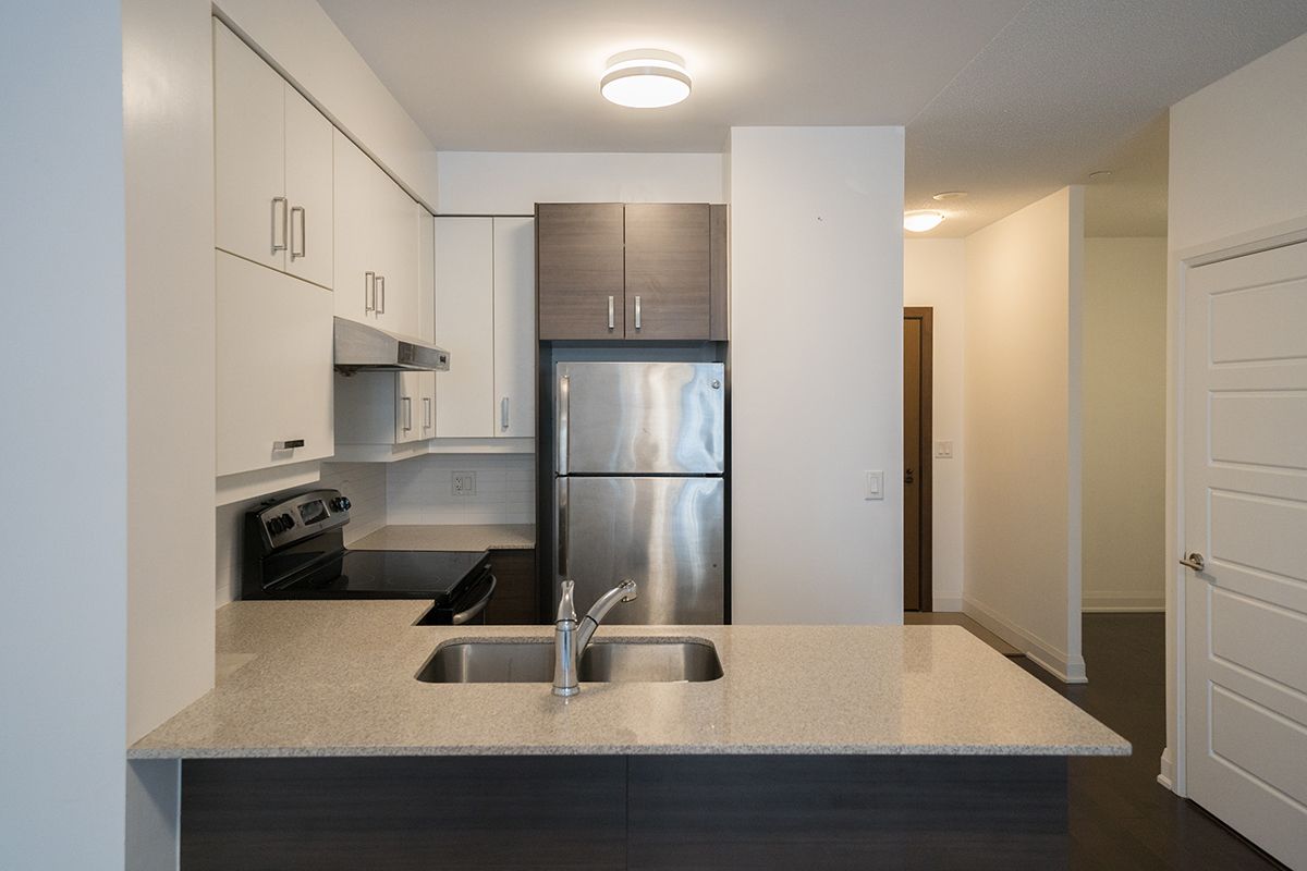 Luxury Condo Unit With 9 Feet Ceiling In Uptown Markham. One Bedroom Plus Good Size Den Can Be 2nd Bedroom, 2 Bath Rooms, Master 4Pc Ensuite, Large Terrace.Steps To Whole Foods, Lcbo, Shops, Restaurants, Easy Access To Yrt & Go Station. 24Hr Concierge, Gym, Library, Sauna, Billiard Room Indoor Pool.Stainless Steel Appliance (Fridge, Stove, Built-In Dishwasher, Kitchen Exhaust Fan), Stacked Washer/Dryer, All Existing Light Fixtures And All Window Blinds