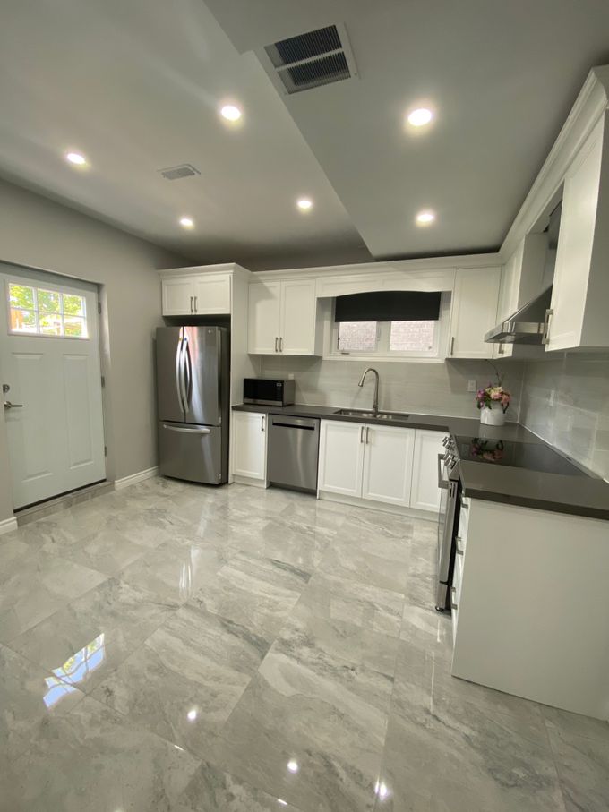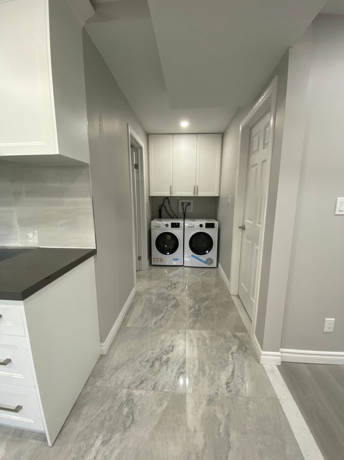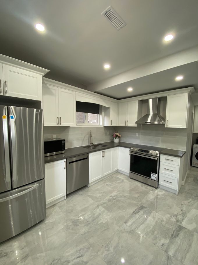 New renovated high bright basement with 9 feet ceiling in Markham Wismer community. Separated rear entrance with one large bedroom, large living room. Close to top ranking junior and high Schools. Huge elegant & open kitchen with elegant backsplash and lots of cabinets. Open concept & bright living/dining room with molding and pot lights through out. Brand new Stainless Steel appliances, microwave, washer and dryer. Elegant large Washroom. One parking spot. Close to GO Trains, TTC, library, recreation Center, hospital, Shopping Plazas, Markville Mall and restaurants.
