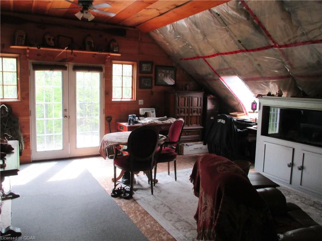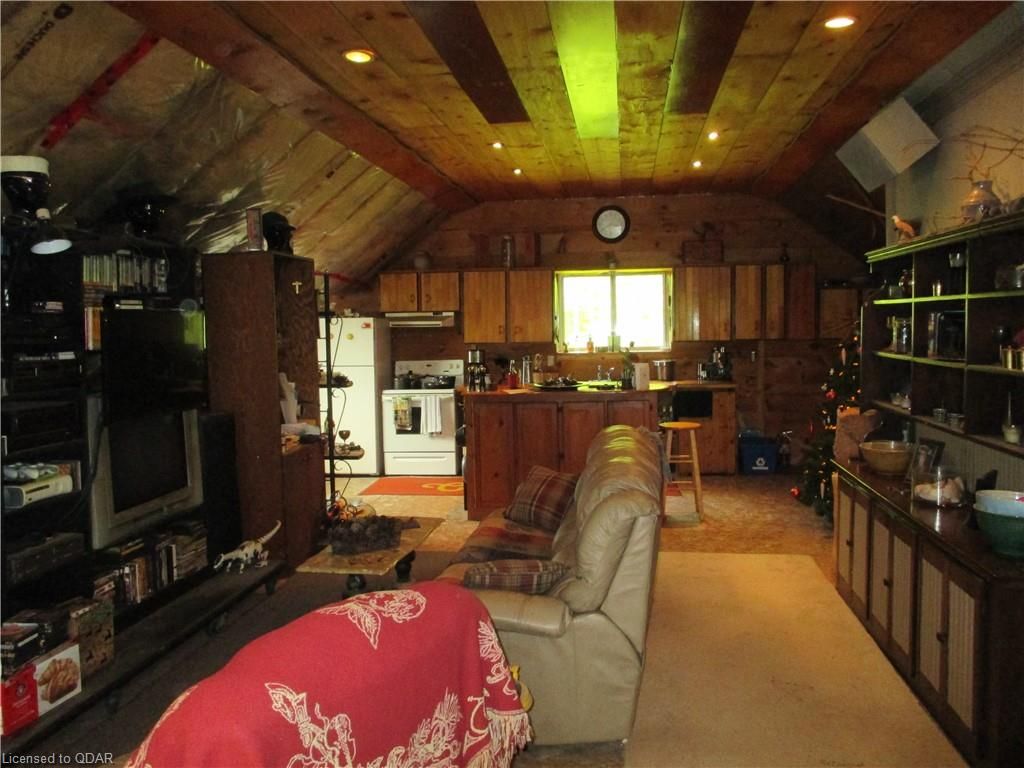 Unique residence on 6 acres. 3,200 sq. ft. building. Downstairs features a wood stove, open area with workshop. Mezzanine upper level open concept living area with 3pc. bath. Well 2013. Septic 2015. Possibilities are endless! Lots of wildlife, trails etc.