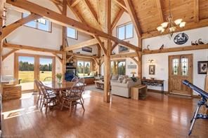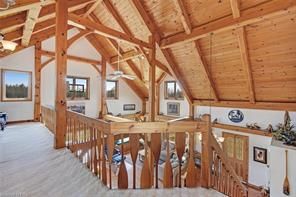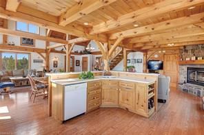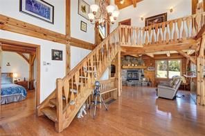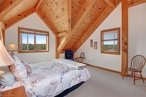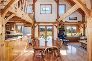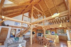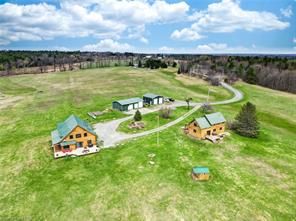 Welcome to The Ranch! 2 stunning timber-frame & log homes, 2 garages, and nearly 500 acres to escape and play. From the soaring ceilings & timber-framed aesthetic to rooms full of sunlight, these homes will have you feeling both their elegance & cozy nature. This family retreat includes 5 bedrooms, 6 bathrooms, 2 basement bonus rooms. The guest cabin includes a full kitchen and large sleeping loft - bring the whole extended family out! Includes a massive zero-turn riding lawnmower that once enjoyed keeping the lawns at NASA trimmed. This property has been loved by the same family for the last 23 years with many great memories such as family golf tournaments, maple syrup runs, hunting expeditions, fishing in the pond, ATV/snowmobile excursions across the acreage. Enjoy jumping in the water, hiking to The Bluffs, getting out the golf clubs, laying out under the stars, or exploring the forested acreage and surrounding Crown Land - your imagination is the limit!