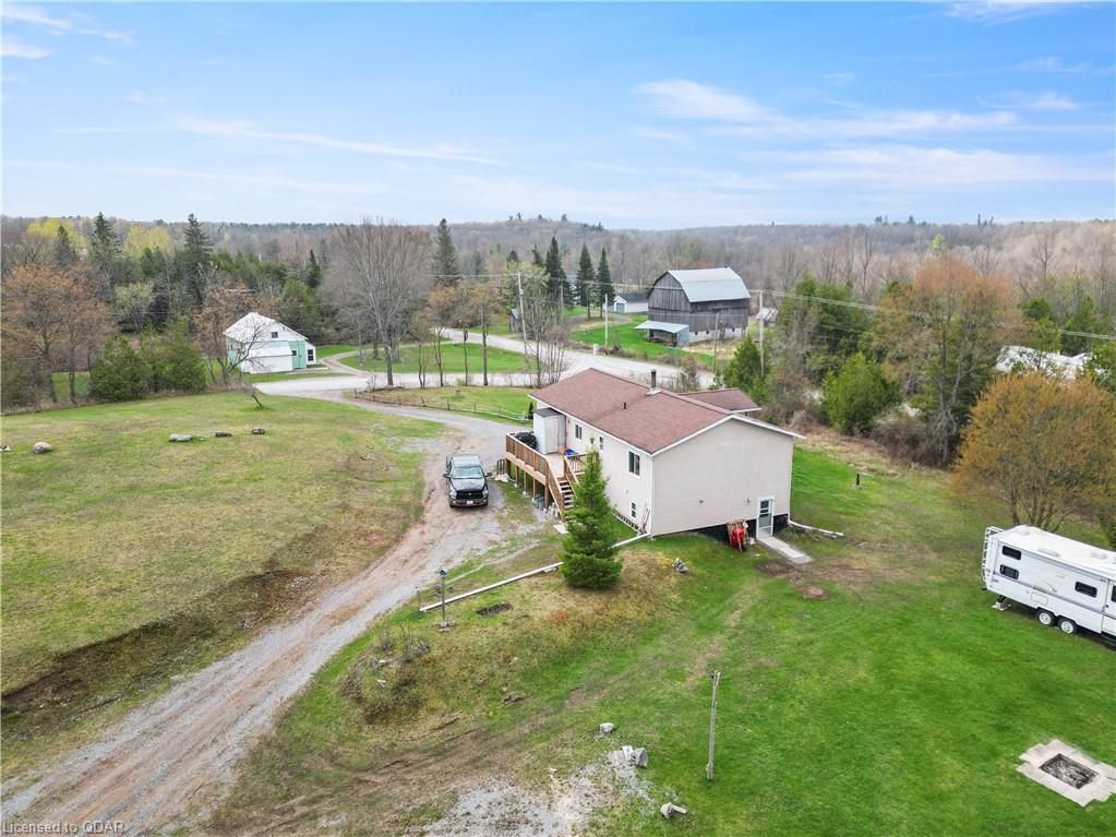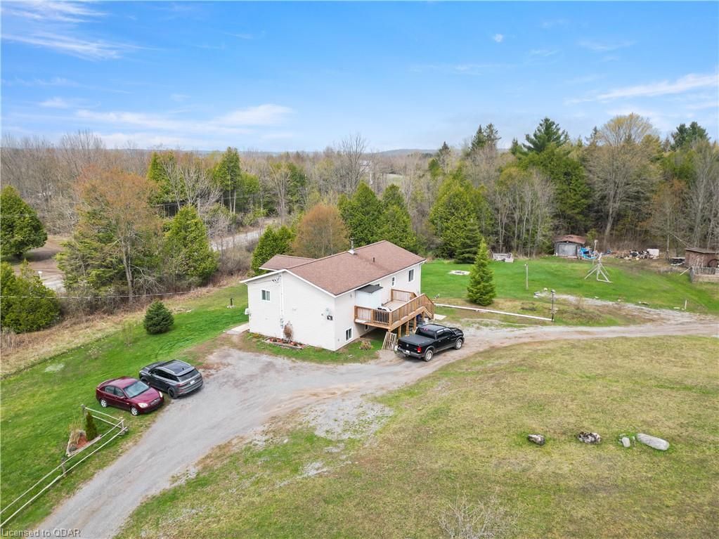 Wow 7.6 acres plus a well maintained 3 plus 2-bedroom home. This home has many features. Large deck off the back newly installed. A fully finished basement with a possible in-law suite containing 2 bedrooms, bathroom, kitchen, large living quarters with separate entrance. 7.6 acres with lots of wildlife just sit back and watch. . It’s also close to the trails for your ATV pleasure and enjoyment. 2 hours between Toronto and Ottawa with easy commuting on 7 hwy. Close to lakes and boat launches to Crowe Lake, All the amenities you could ask for close to shopping, churches, and the downtown area for all your shopping needs. Don’t miss this great country home where you can find your peace and tranquility and enjoy the natural surroundings. This property also includes a large quasit hut that has a small but cute bachelor apt. equipped with a large workshop and storage area. You can make this into an income property if you so desire.