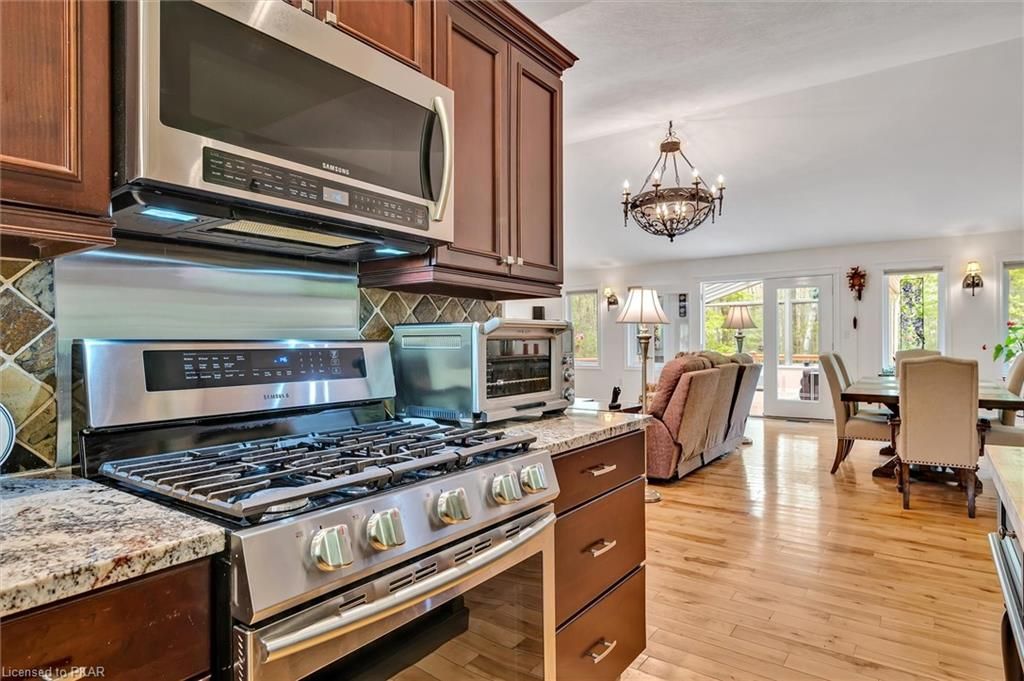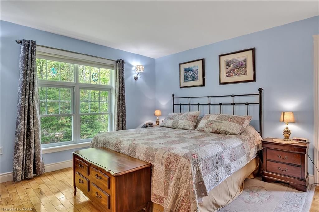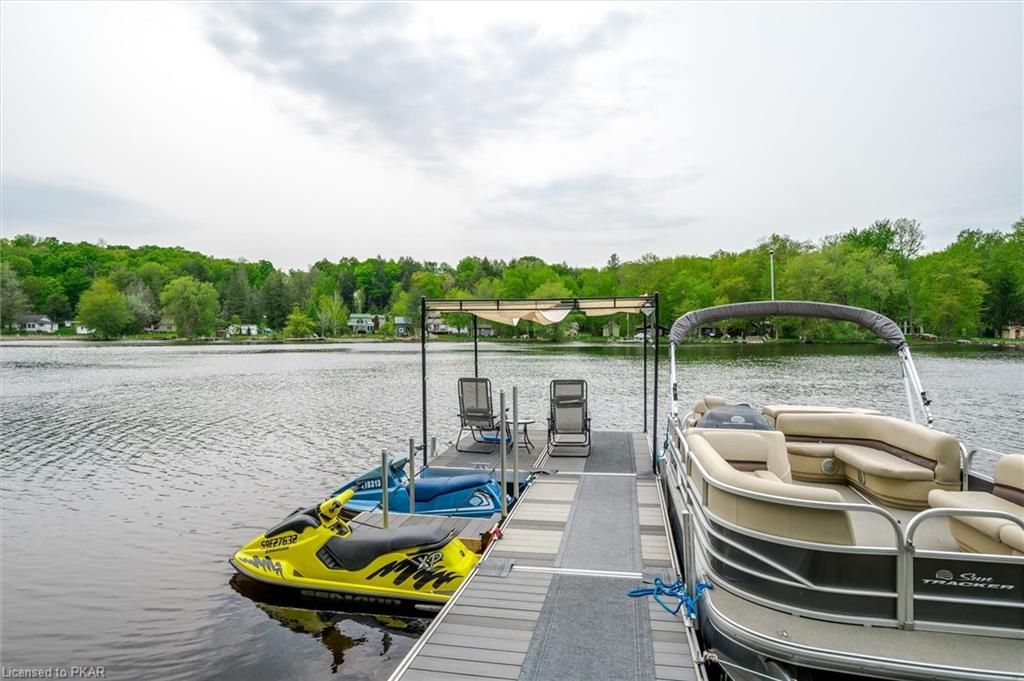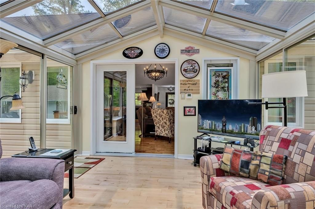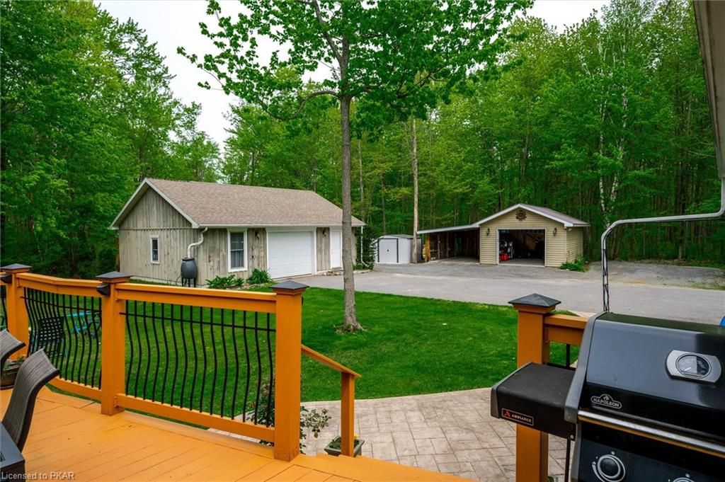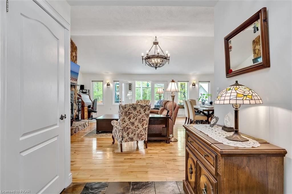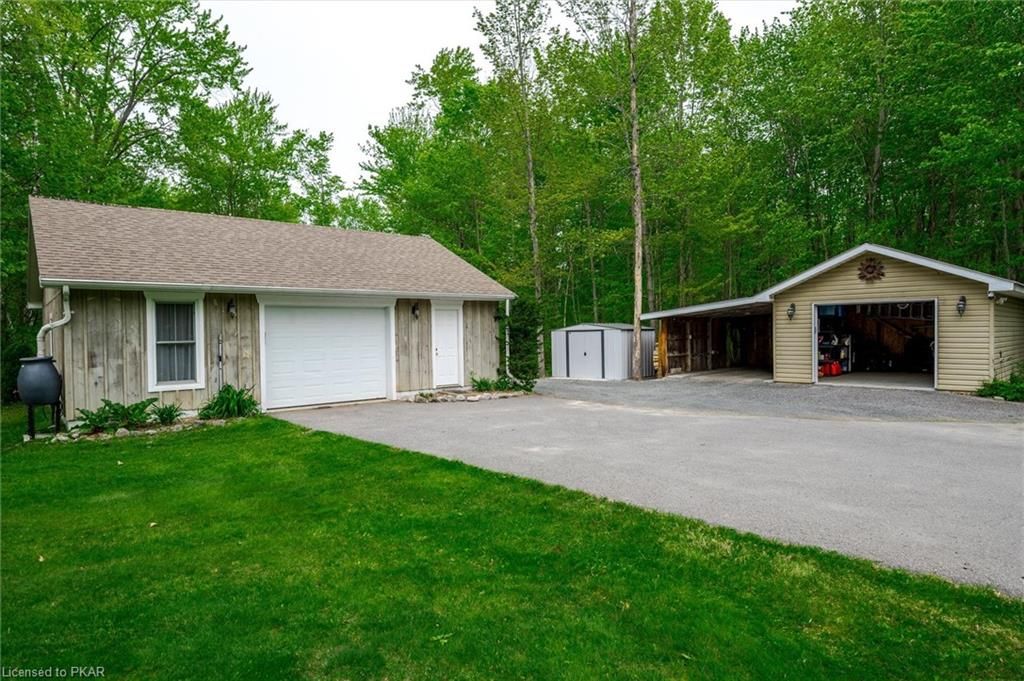 Executive 3 bed bungalow situated on 16 acres of trees and trails with over 500 feet of natural waterfront along the Crowe river with sandy beach entry and a 250 sq ft floating dock. Located near the mouth of Crowe lake means you have all the quiet and calm water of the river but are on the lake in less than a minute for recreational boating. A spacious open concept design centered around a stone floor to ceiling wood burning fireplace plus a 4 season glassed solarium, hardwood floors, cherry finished custom kitchen cabinets, granite counters, and stainless steel appliances. 3 bright spacious bedrooms include a primary with 4 pc. ensuite, heated floor, walk in closet plus separate access to the wrap around deck. This home is protected by a 18Kw Generac generator installed in 2022 fully automatic as well as WIFI enabled.Sit and relax on your front cedar porch with views of the river or stretch out on your large backyard deck overlooking your secluded backyard with firepit or of course head over to the water and enjoy the sun and fun.There is a bunkie