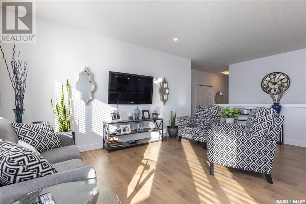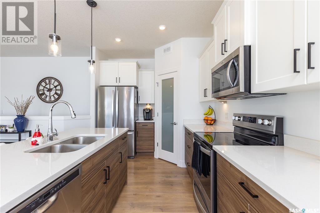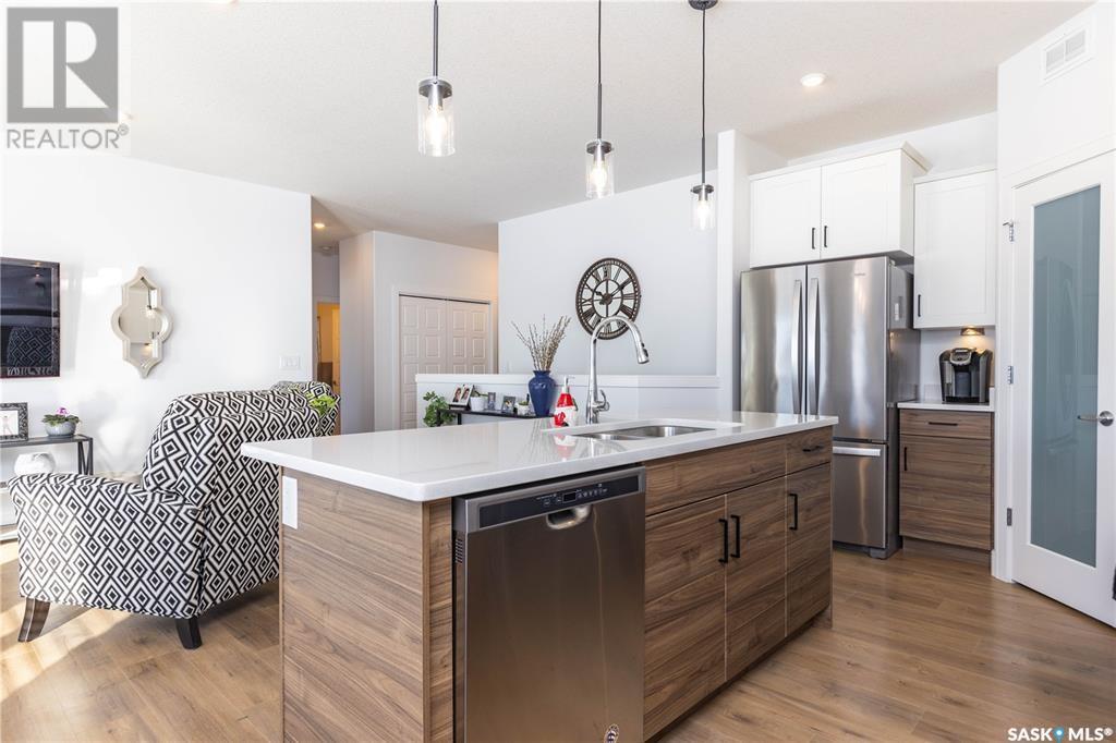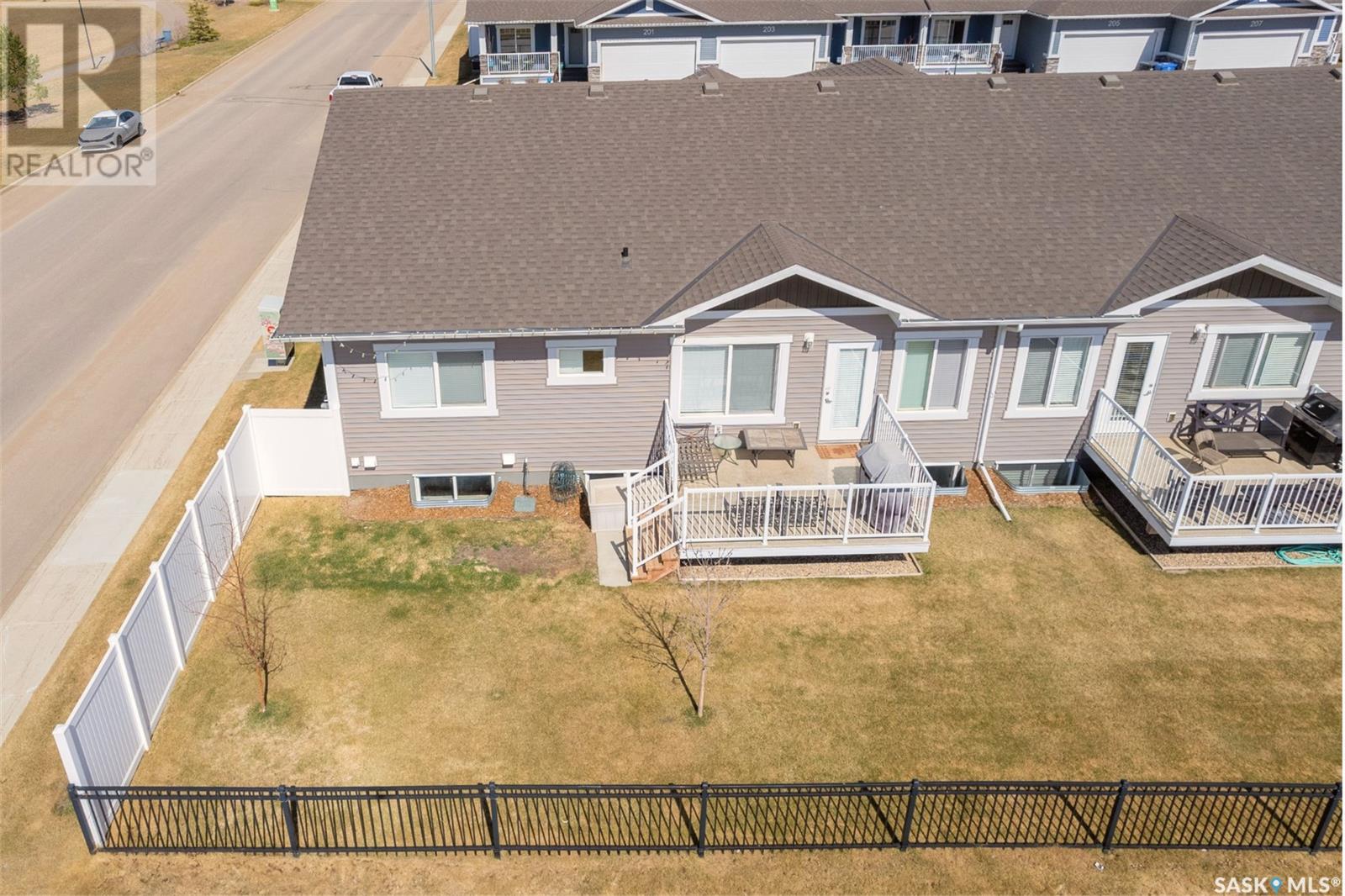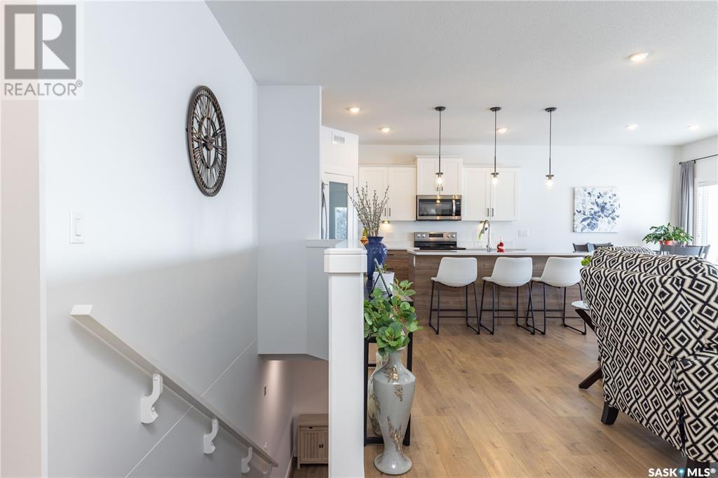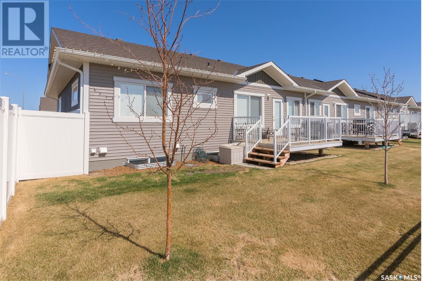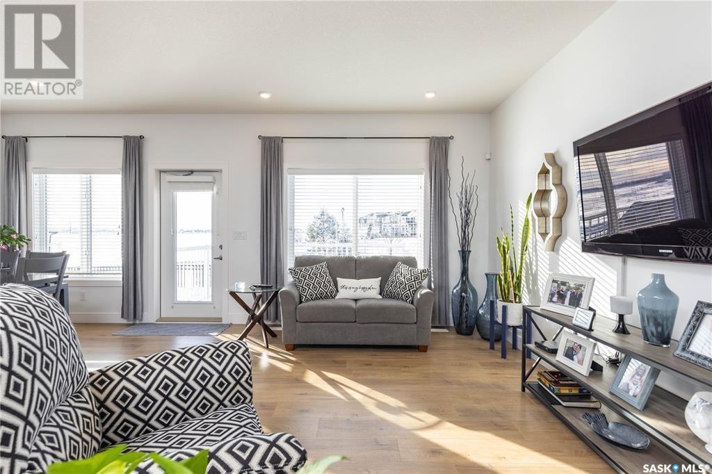Welcome to your dream townhouse located at 1200 Parr Hill Dr in the desirable community of Martensville, Saskatchewan. This stunning corner unit backing the park boasts an unbeatable location just steps away from the new public and catholic/french immersion elementary schools, providing convenience and ease of access for families. The property is also surrounded by two beautiful parks, featuring walking paths and serene ponds, offering picturesque views from both inside and outside the home. Built in 2019, this four-bedroom, three-bathroom townhouse is in pristine condition and still looks brand new. The southwest-facing windows flood the living room, kitchen, dining area, and master bedroom with natural light, creating a warm and inviting atmosphere. The kitchen is equipped with stainless steel appliances, and the main floor features a separate laundry room and upgraded vinyl plank flooring. One of the standout features of this property is the high ceilings throughout the main floor, with 9' ceilings and 11' ceilings in the garage for extra overhead storage. The partially finished basement also features 8' ceilings, providing ample space for a variety of uses. The front and rear patios are constructed with composite deck boards, perfect for enjoying the beautiful views and relaxing outdoors. Don't miss your chance to own this stunning townhouse, schedule your showing today before it's too late! (id:22211)