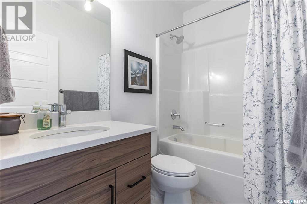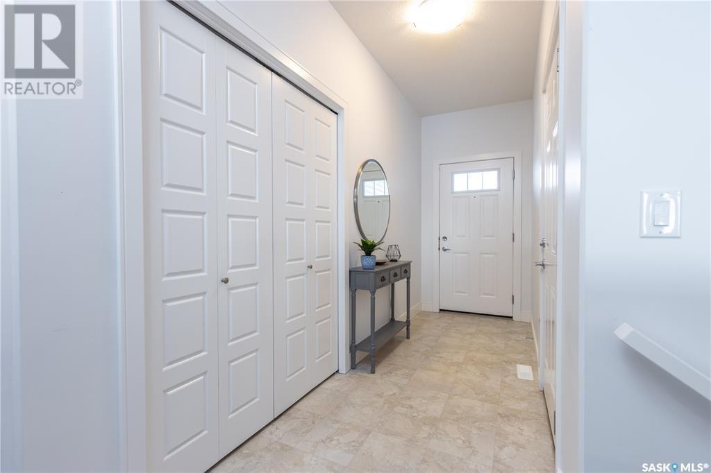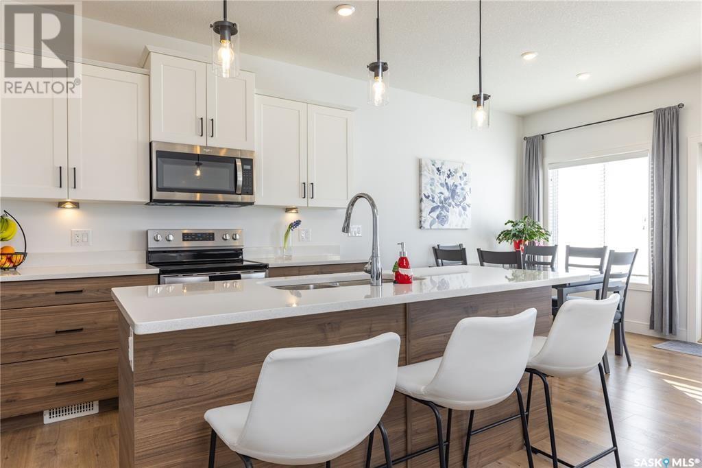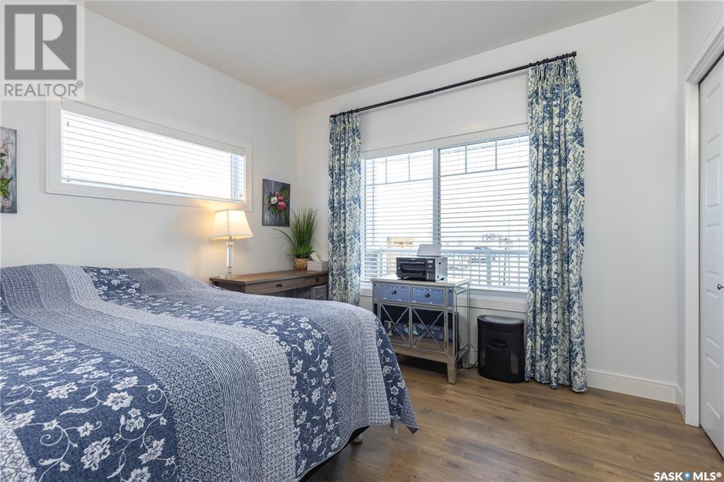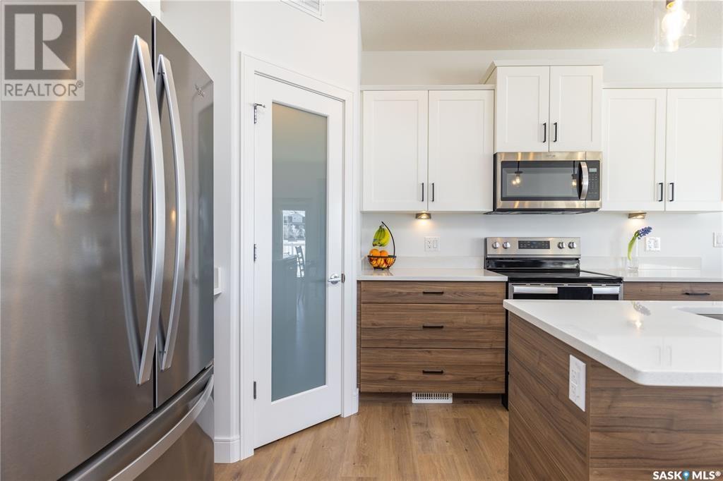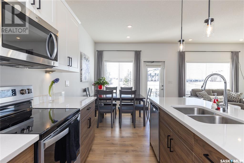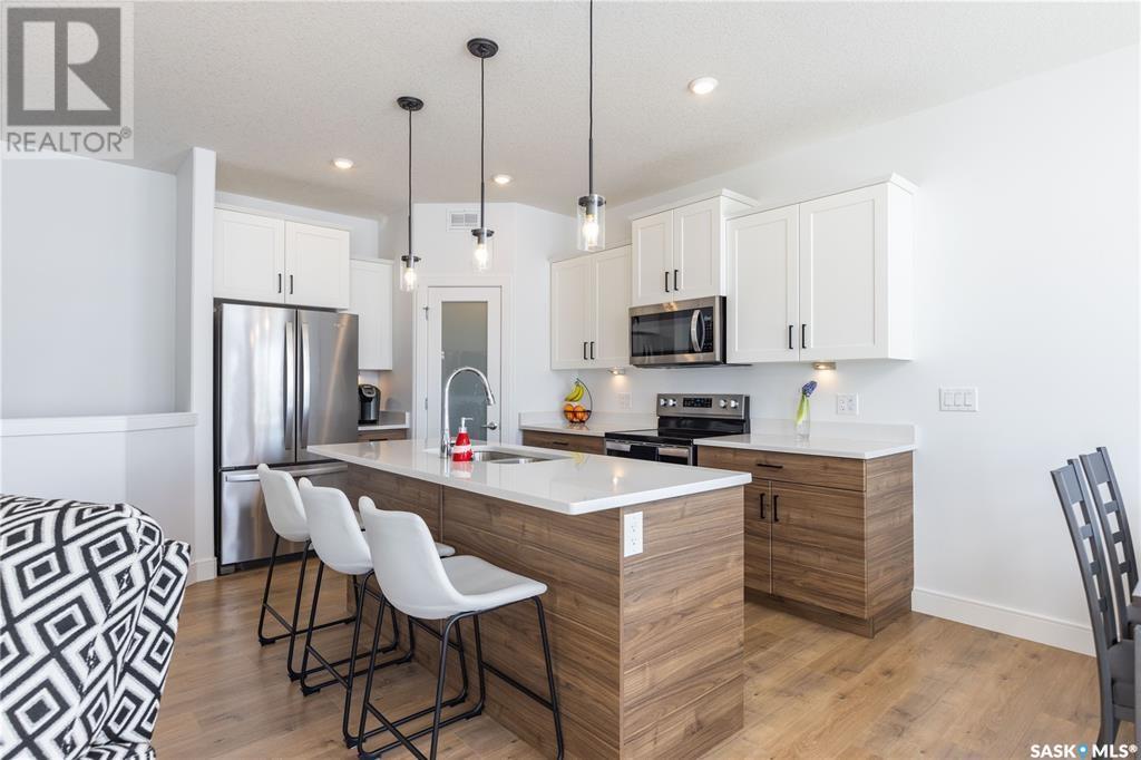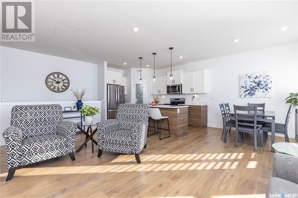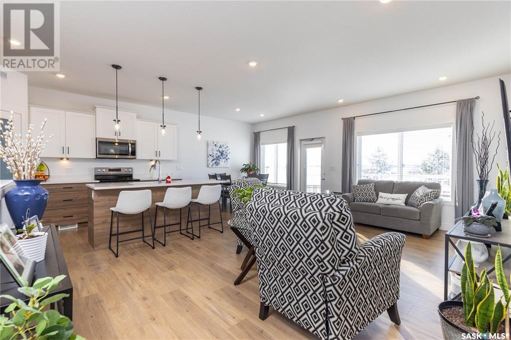 Welcome to your dream townhouse located at 1200 Parr Hill Dr in the desirable community of Martensville, Saskatchewan. This stunning corner unit backing the park boasts an unbeatable location just steps away from the new public and catholic/french immersion elementary schools, providing convenience and ease of access for families. The property is also surrounded by two beautiful parks, featuring walking paths and serene ponds, offering picturesque views from both inside and outside the home. Built in 2019, this four-bedroom, three-bathroom townhouse is in pristine condition and still looks brand new. The southwest-facing windows flood the living room, kitchen, dining area, and master bedroom with natural light, creating a warm and inviting atmosphere. The kitchen is equipped with stainless steel appliances, and the main floor features a separate laundry room and upgraded vinyl plank flooring. One of the standout features of this property is the high ceilings throughout the main floor, with 9' ceilings and 11' ceilings in the garage for extra overhead storage. The partially finished basement also features 8' ceilings, providing ample space for a variety of uses. The front and rear patios are constructed with composite deck boards, perfect for enjoying the beautiful views and relaxing outdoors. Don't miss your chance to own this stunning townhouse, schedule your showing today before it's too late! (id:22211)