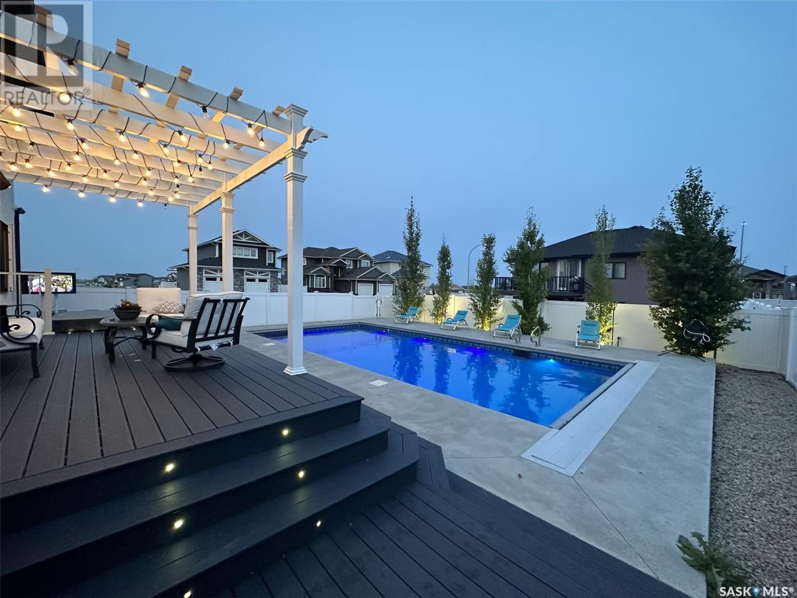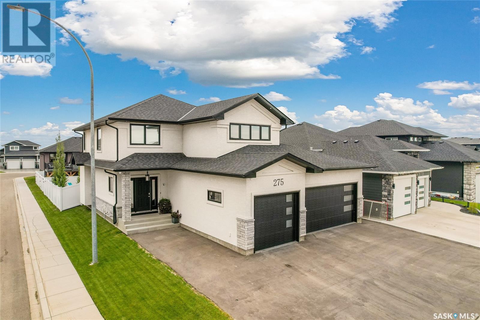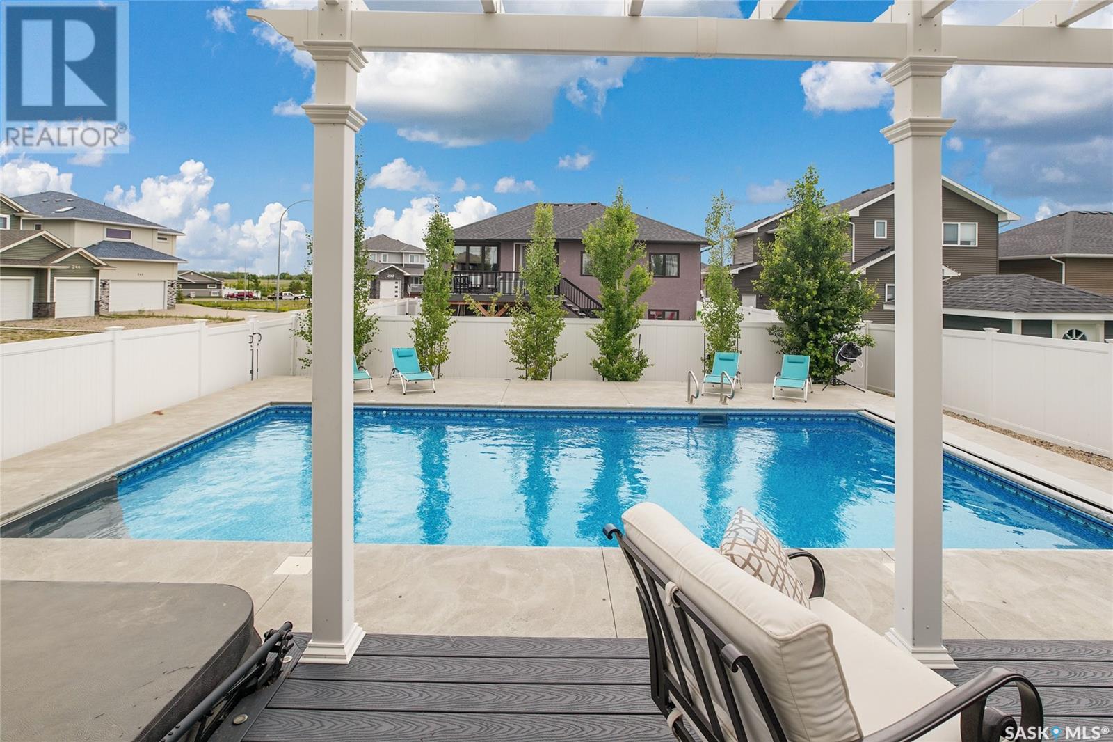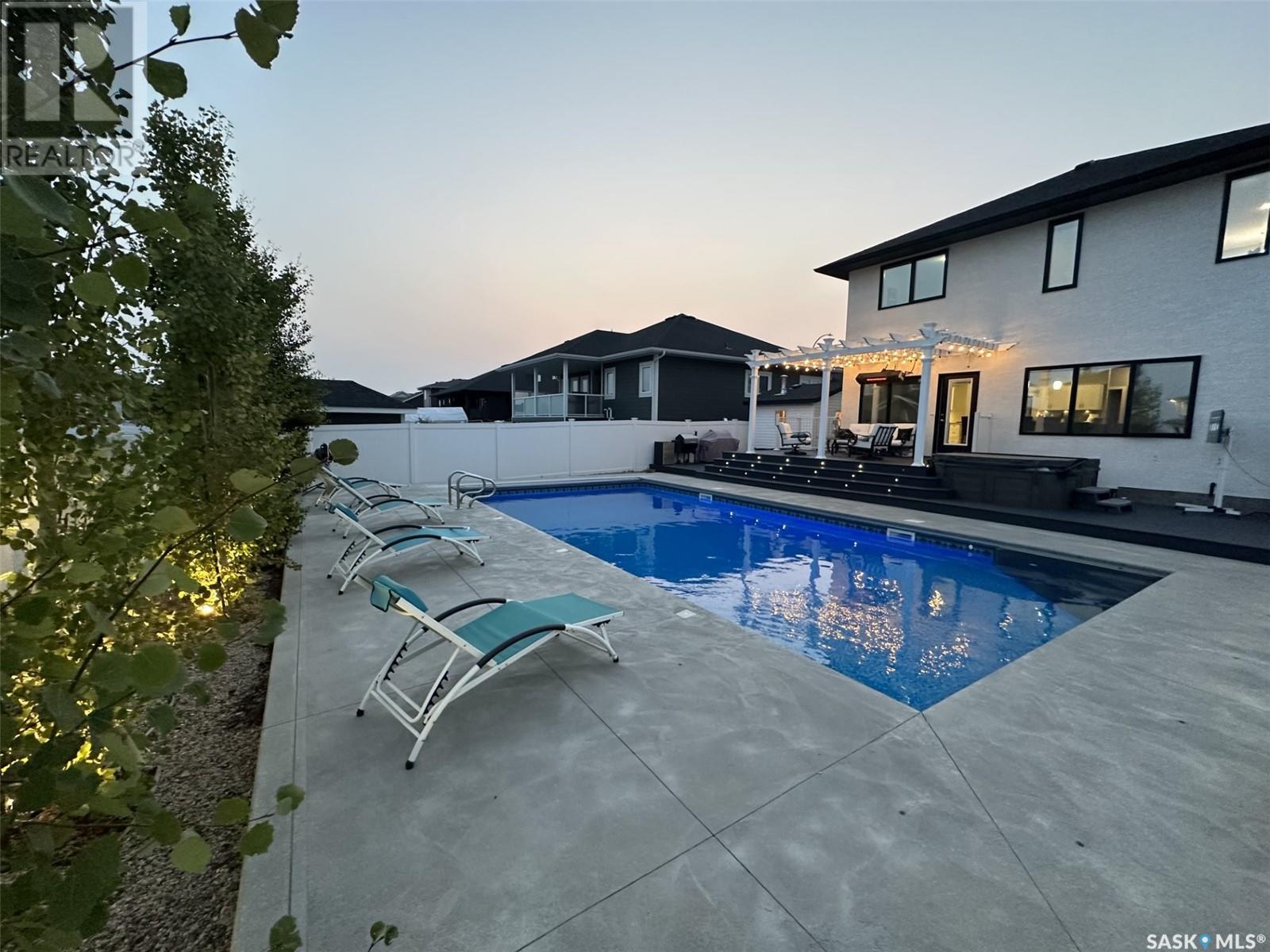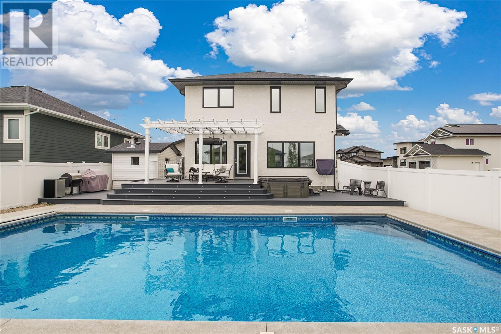 Rare find! Check out this stunning almost 2100 sq ft 2 Storey located at 275 Cowan Cres in Lake Vista, Martensville. Outside leaves you in awe with this huge Heated In ground pool with electric automatic security cover which allows one to walk on. Surrounding the pool is tons of concrete, hot tub, gas deck heater, natural gas BBQ pool shed, storage shed, LED lighting, and composite decking making the back yard maintenance free. Inside is turnkey and boasts 4 bedrooms, 4 bathrooms, bonus room on 2nd, main floor laundry, massive kitchen to entertain in, tons of triple pane windows with sun tint and a heated triple car garage with epoxy flooring. Other notables: high end security camera system, AC, C/V with floor sweeps, appliances, extra wide asphalt driveway, vinyl fencing, custom window treatments, luxury vinyl plank through out and much more. Location is key with views of ponds, steps from walking paths, and only block from school make this the perfect family home. Don't miss out! (id:22211)