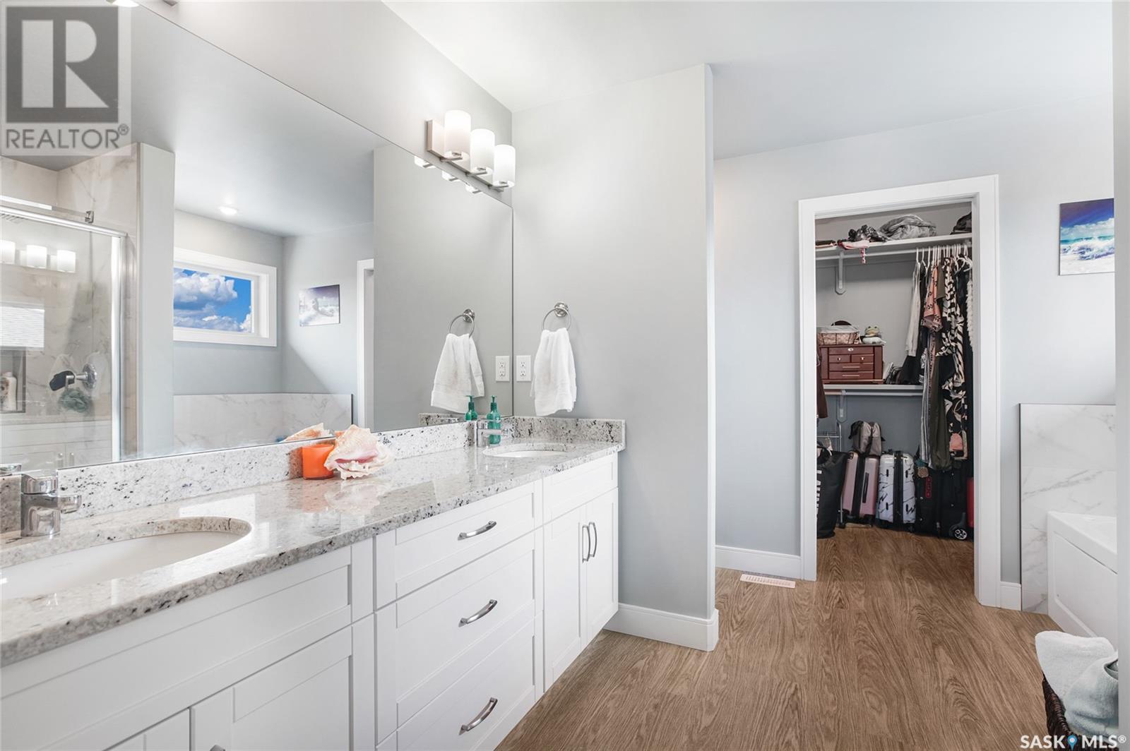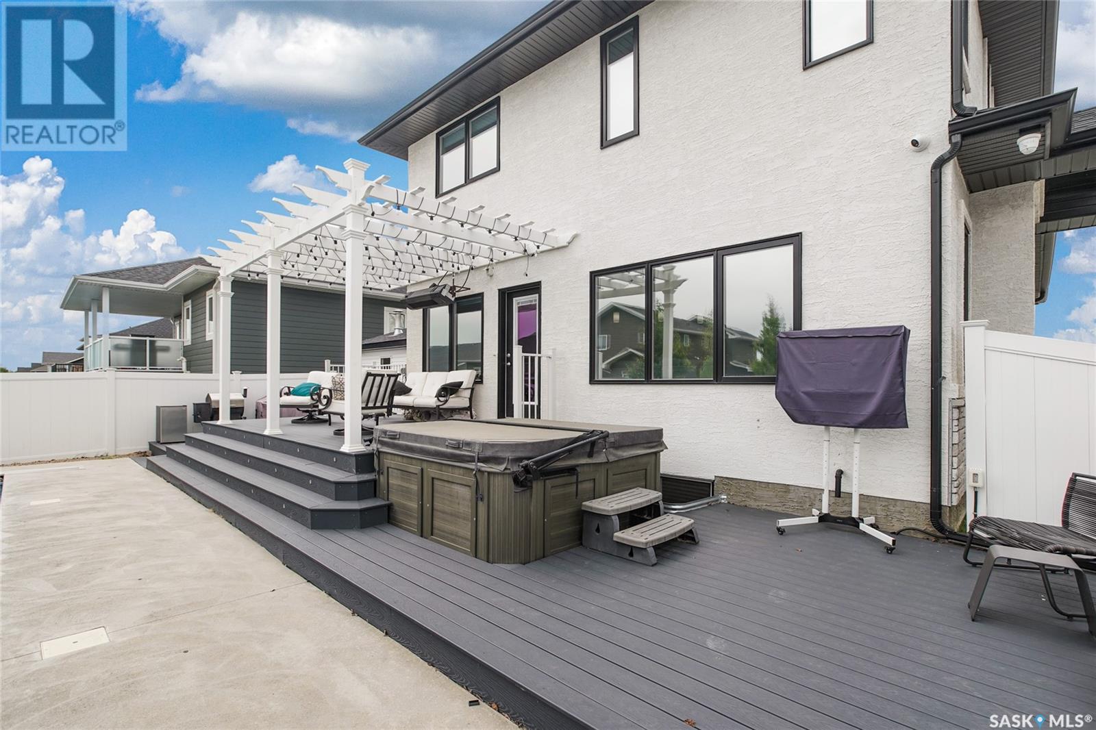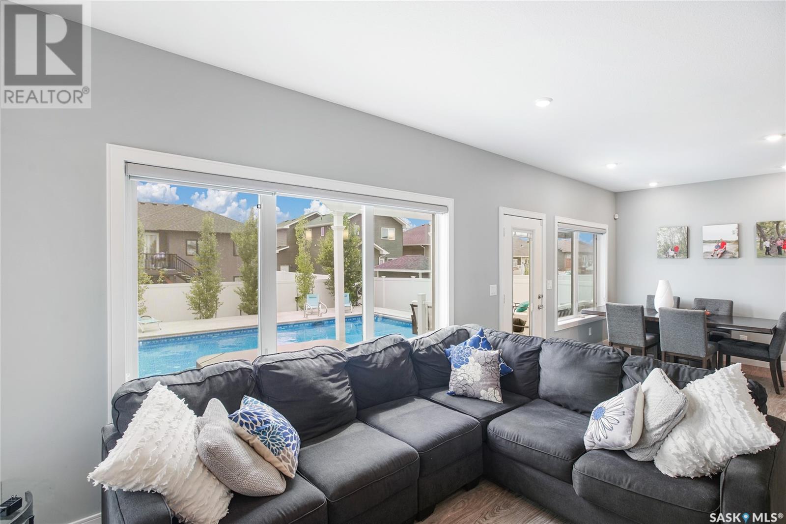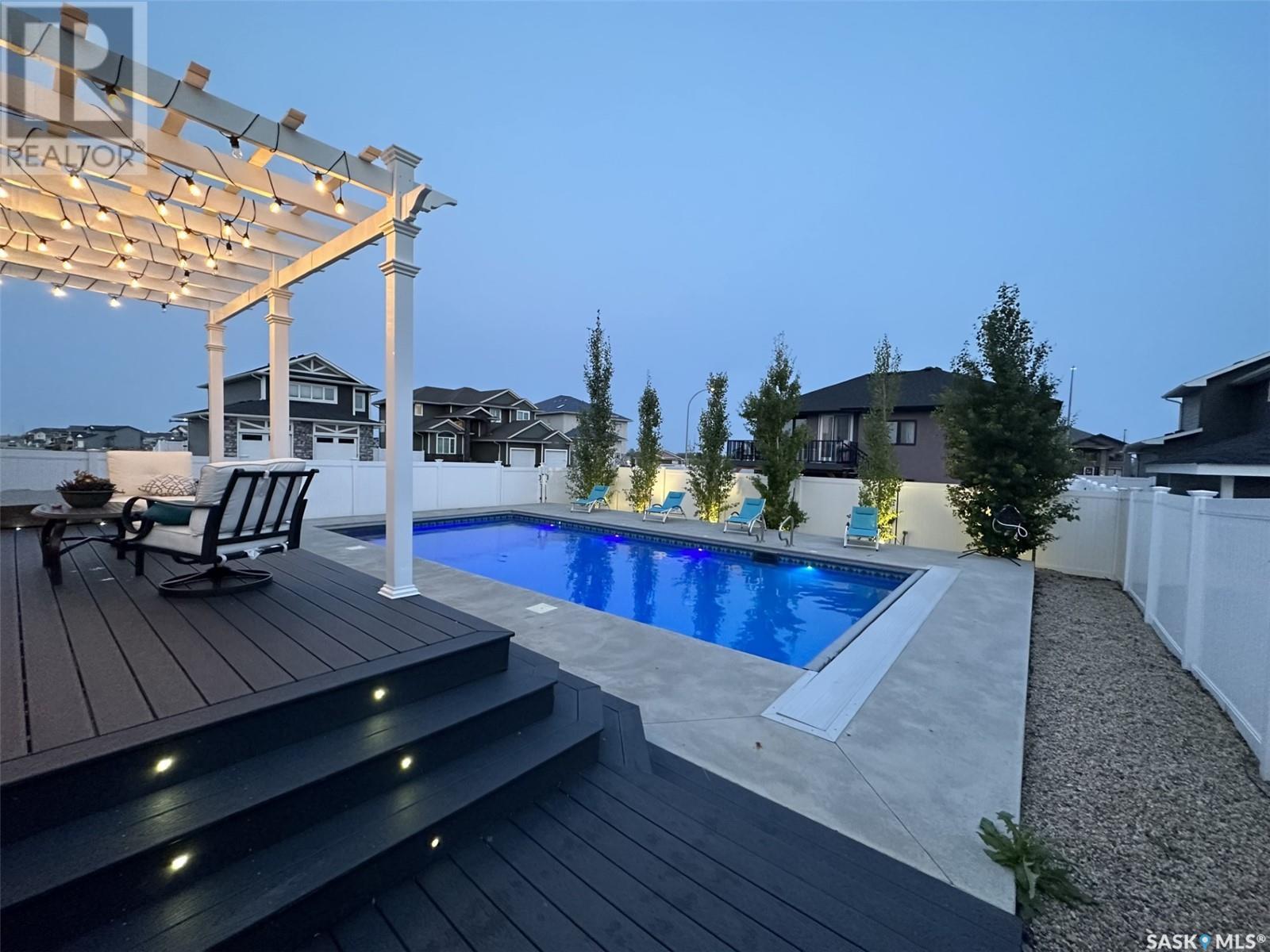 Rare find! Check out this stunning almost 2100 sq ft 2 Storey located at 275 Cowan Cres in Lake Vista, Martensville. Outside leaves you in awe with this huge Heated In ground pool with electric automatic security cover which allows one to walk on. Surrounding the pool is tons of concrete, hot tub, gas deck heater, natural gas BBQ pool shed, storage shed, LED lighting, and composite decking making the back yard maintenance free. Inside is turnkey and boasts 4 bedrooms, 4 bathrooms, bonus room on 2nd, main floor laundry, massive kitchen to entertain in, tons of triple pane windows with sun tint and a heated triple car garage with epoxy flooring. Other notables: high end security camera system, AC, C/V with floor sweeps, appliances, extra wide asphalt driveway, vinyl fencing, custom window treatments, luxury vinyl plank through out and much more. Location is key with views of ponds, steps from walking paths, and only block from school make this the perfect family home. Don't miss out! (id:22211)