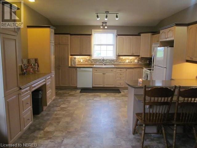 Four bedroom open concept bungalow. Master bedroom with ensuite. Main floor laundry room. Nine foot ceilings. Whirlpool bath. Large recroom in the finished basement with walk-out. Large sunroom. Plenty of storage area. Over 3500 sq ft living space. Wood/electric heat. Wired for a generator. 40' veranda. Attached heated two car garage. Landscaped. 6 acres (4 acres cleared). Paved road. minutes from town. (id:22211)