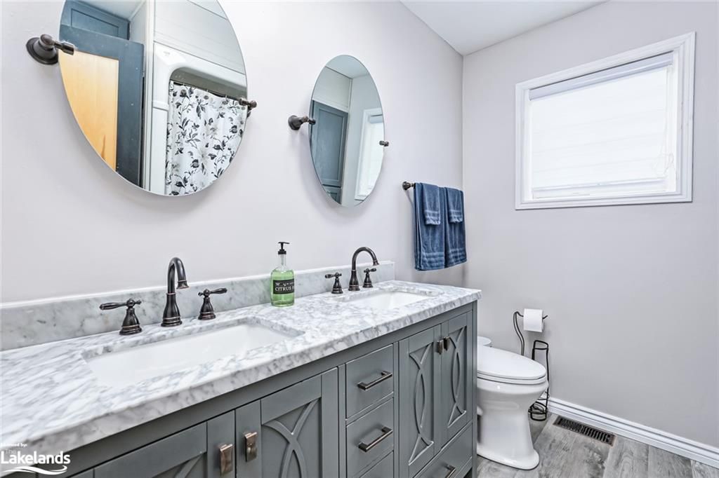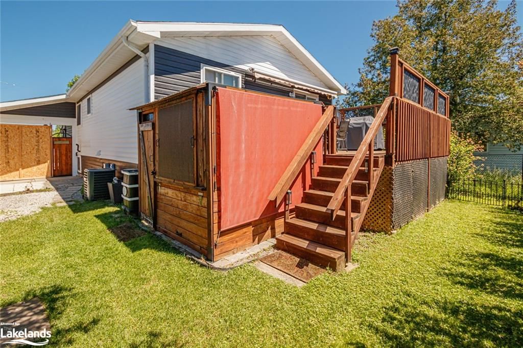 Fantastic 3 bedroom, 2 bath home with in-law capability located on a quiet street in the heart of Meaford. Walk to downtown shops, restaurants, park and beach along Meaford's beautiful waterfront. This lovingly maintained home has been freshly painted throughout and features a convenient enclosed front porch, inviting living room for entertaining family/friends, spacious eat-in kitchen, walk-out to large deck with remote control awning, main floor laundry and primary bedroom with walk-in closet. The finished basement offers in-law capability with a large family room, recently added kitchenette, bedroom, updated 3 piece bathroom with new shower and workshop. Relax and unwind in the private backyard with large deck and secluded hot tub area. Forced air heat and central air. Carport with oversized door to allow ease of access to the backyard. A perfect home for a young family, retirees or weekend get-away retreat! Just a 20 minute drive to Owen Sound and 25 minutes to skiing and the Village at Blue Mountain. This home shows really well and is move-in ready! If considering this property as an investment please note that the current Seller is willing to stay on as a rental tenant for 12 months+.