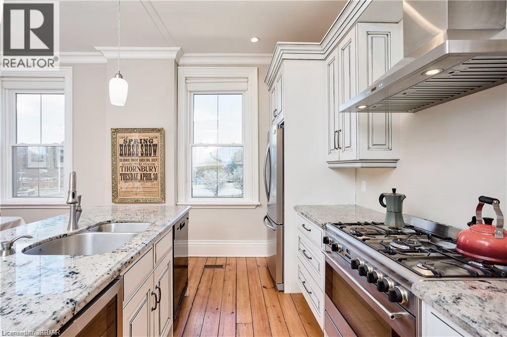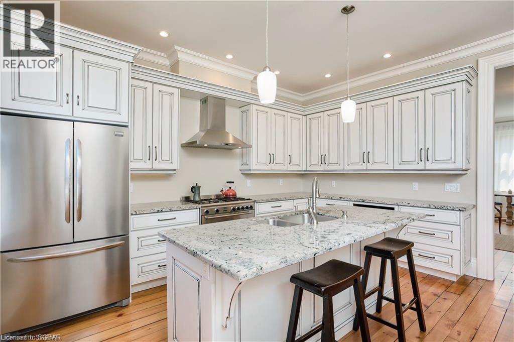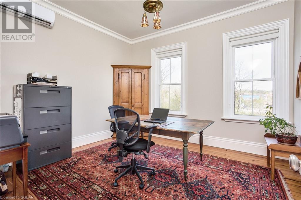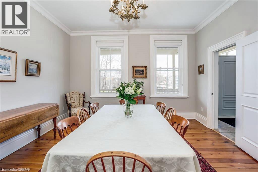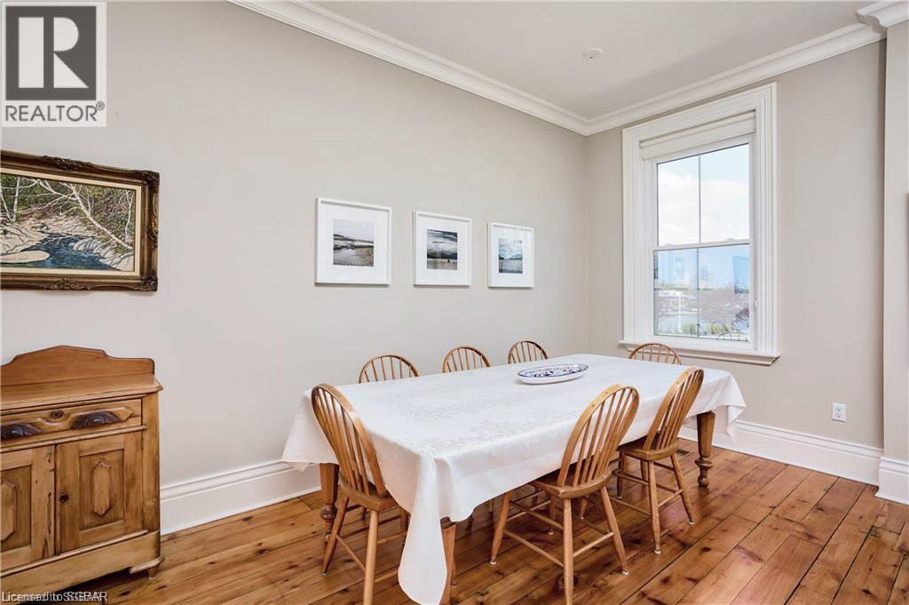 Lots of room to work from home, beautiful town of Meaford less than two hours to GTA. Most desirable location beside the harbour, walk to town amenities, boating, hiking & biking at your doorstep. Great schools, arts community and lifestyle awaits. Now is the time to invest in Meaford, with The Town of Blue Mountains and Thornbury only 10 minutes away and costing hundreds of thousands of dollars more. Meaford offers excellent equity growth opportunity that is unmatched along the southern shores of Georgian Bay. This gorgeous red brick home from another era has been meticulously restored by local craftsmen from top to bottom. This is a one of a kind home features a strategic location directly across from Georgian Bay and adjacent to beautiful Meaford harbour. Offering 3100+ sq ft. of elegant living that includes a main floor master that can double as a family room with three more bedrooms upstairs including a second master bedroom this home offers the utmost in layout flexibility to suit changing needs. There's even a studio suite with separate entrance for in-laws, nanny, income, home studio, etc. Desirable water views and bay access, leave your boat at the marina across the street, invite your guests to stay over in privacy (all bedrooms have ensuites), walk to dinner on the main street, to Meaford Hall for a live performance, then walk home along beautiful Georgian Bay shore! Georgian trail is across the street, walk to the beach. Skiing and golf a short drive away. No other home or location like it in Southern Georgian Bay. (id:22211)
