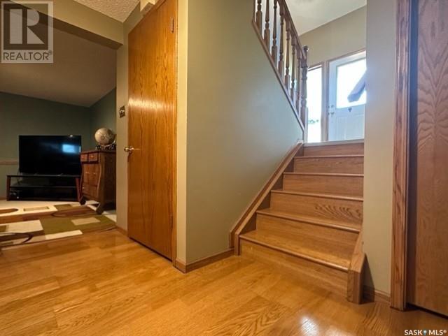Welcome to 36 Park Boulevard in Melville, Saskatchewan. Absolutely stunning, well manicured property in a highly desirable location on Melville's east side. Offering just over 1600 sq ft of main and 2nd level living as well 2 more lower levels adding to the living space this home provides, you will not be short on bedrooms, bathrooms or storage space. The lot is pie shaped and sits nestled in a cul de sac location perfect for families. A spacious foyer welcomes you into the home where you will find a formal sitting room to your right and to your left the laundry areas as well as direct access to the home from the attached garage. On the 2nd level of the home is a formal dining area, 3 bedrooms - master with 3 pc ensuite and walk in closet - 4-pc bathroom, kitchen with breakfast nook and just outside that nook the most beautiful views of your back yard fro the tierred deck on the East side of the home. As make your way to the start of the lower levels you will find an additional 2 spacious bedrooms, office space with built in desk, 3-pc bathroom and a familly room with a natural gas fireplace (this level is only partially below ground with large windows filtering lots of natural light. The lowest level of the home gives you a bonus space, an area with shelving for storage and additional storage in the crawl space. The outdoor enthusiast will absolutely adore the landscaping with many perrenial beds and we can't forget the tierred deck with composit deck boards, lower level concrete patio and firepit area along with 2 sheds located along the West and north perimeter of the yard. Updates include h/e furance - 2023, rubberized flooring in garage - 2022, gas water heater - 2021, quartz counter tops and kitchen refresh - 2018, gas fireplace 2000, windows last 10 years. Central air conditioning, built-in dishwasher - 2020 and underground sprinklers also deserve a mention. (id:22211)