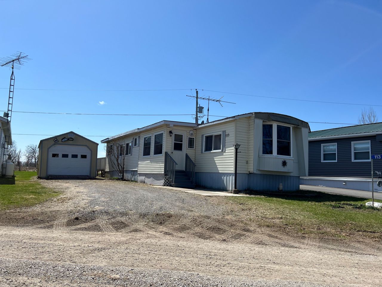 Welcome to your own piece of paradise along the Rideau River! This mobile home in a serene mobile park between Smiths Falls and Merrickville offers panoramic views from the large bright windows in the living room. With laminate flooring throughout and no carpet, this home is easy to maintain and perfect for enjoying the waterfront lifestyle. Launch your boat from your own private dock right in front of your unit, and enjoy the convenience of having everything on one floor. The open kitchen, dining, and living room layout is perfect for entertaining, while the sitting room and porch entrances at the front and back provide ample space for relaxation. Additional features include lots of storage, wall/window air conditioners, a single car garage, and a park fee of $364.37 that covers water, sewer, taxes, road maintenance, snow removal, and grass cutting. Plus, with friendly and helpful neighbors and park owners living in the community, you'll feel right at home in this peaceful setting.Don't miss out on the opportunity to own a cottage-like retreat without the big price tag. Schedule a viewing today and start living the waterfront lifestyle you've always dreamed of!