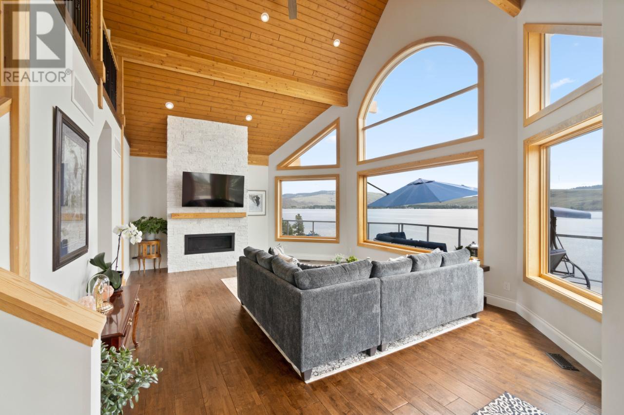 Welcome to Nicola Lakeshore Estates, a serene year round lakeside community that offers 4 season recreation at your door step. This beautiful 4-year-old, 4 bedroom, 4 bath home with a 40 x 23 two door 3 car detached garage and bonus room above provides the perfect recreational haven or year round residence. When you step through the front door you are immediately greeted by the commanding lake and majestic mountain views that lead you into the great room with dramatic vaulted ceilings, expansive windows, striking fireplace adorned by white ledgestone. The spacious kitchen features, white cabinetry, a large kitchen island with quartz countertops, stainless steel appliances and a bright dining area providing an exceptional space for large gatherings. The primary bedroom is on the main floor provides a walk-in closet, 5 piece sumptuous ensuite with heated tile floors, dual vanity, soaker tub, separate shower and French doors that lead to the sunny south facing deck overlooking the lake and sagebrush mountains. There is also a 4 piece bathroom, bedroom that is currently being used as an office and separate laundry room on the main level. The upper floor features 2 nice sized bedrooms, 4 piece bathroom and a flex space that could be an office or sitting area. The lower level daylight walk-out basement is an open canvas waiting for your finishings ideas. You will absolutely love the outdoor space here and enjoy those endless summer days relaxing on your expansive sunny deck or private sandy beach along the approx. 122' of waterfront. The recreation options are endless from swimming, boating, windsurfing, kayaking, fishing,hiking and more. The nearly one acre property offers plenty of space for parking vehicles, RV's and more. LR2 Zoning allows or nightly rentals and potential for future development. Only 3 hours from Vancouver, a mere 15 minutes from the historic town of Merritt, BC and less than an hour from Kamloops. Create lasting memories for your family and friends. (id:22211)