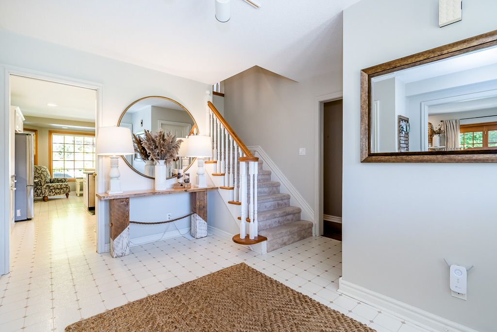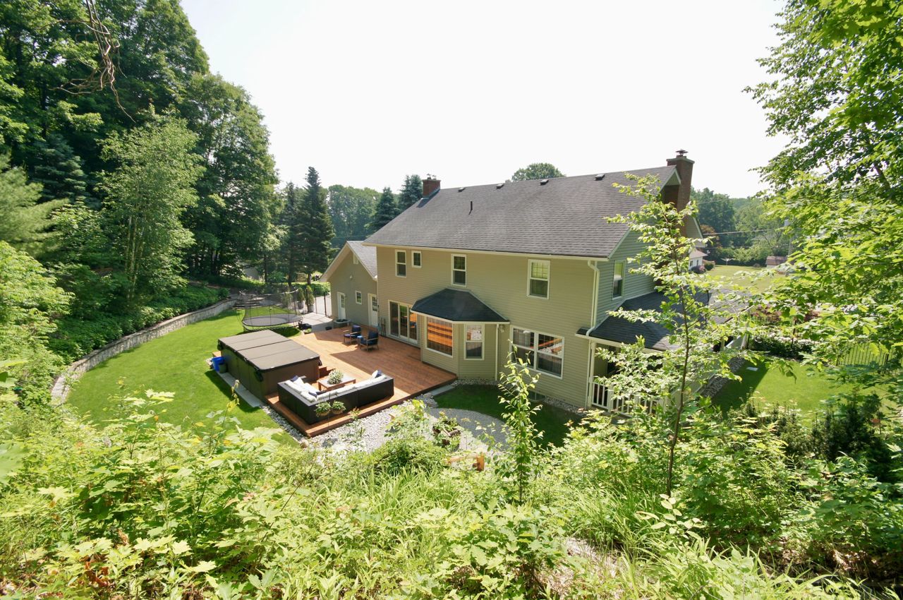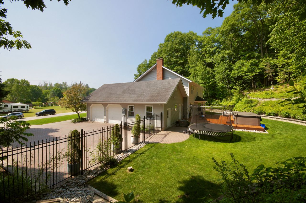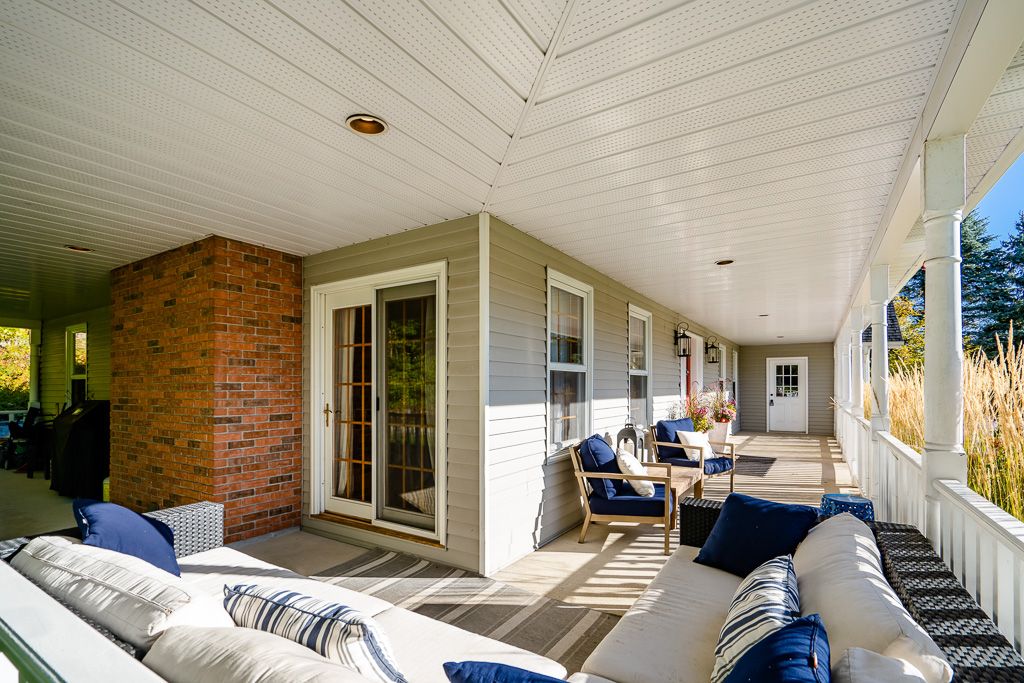 This timeless Colonial-style home boasts stunning curb appeal and is located in Midland, close to shopping amenities, golf courses, schools, and GBGH hospital. Featuring approximately 4000 sf, 5 beds, 4 baths, 2 wood-burning fireplaces, on a 1-acre lot backing onto 265 Acres of Simcoe County Forest. The 2-storey home has 4 beds, 2 baths on the upper level, with a large primary bed and ensuite bath and walk-in closet. The main floor includes a family room and living room both with fireplaces, kitchen with sitting area, a formal dining room, 2- 2pc baths, a main floor bedroom, laundry, and garage access. Lower level: rec room, bonus room, utility room, cold cellar. The 636 sf porch leads to a fully fenced landscaped backyard with fire pit, 18' swim spa. walking path to trails, skiing, and nature. Updates: sprinklers, landscaping, swim spa, cedar decking, bathrooms, AC, hot water tank, electrical service, paint, fenced. Relax on the porch, hike, enjoy the swim spa—this home has it all.