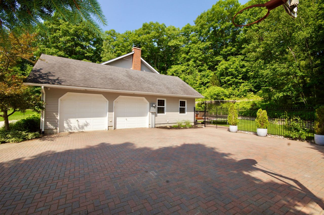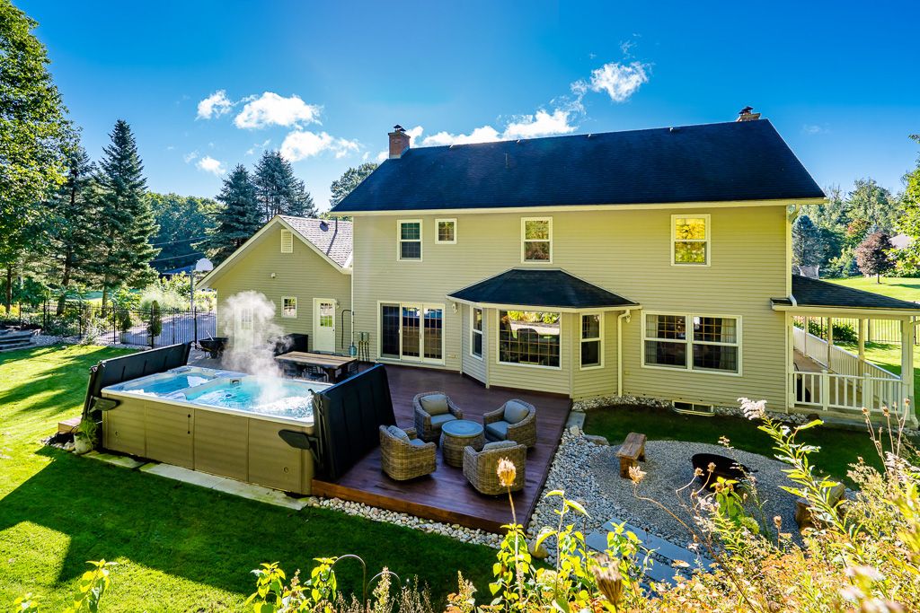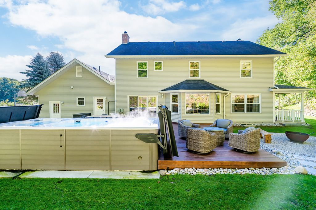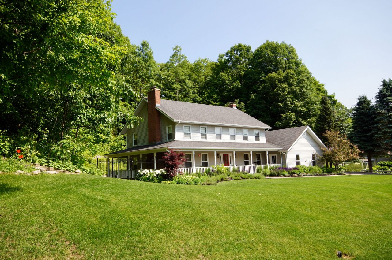 This timeless Colonial-style home boasts stunning curb appeal and is located in Midland, close to shopping amenities, golf courses, schools, and GBGH hospital. Featuring approximately 4000 sf, 5 beds, 4 baths, 2 wood-burning fireplaces, on a 1-acre lot backing onto 265 Acres of Simcoe County Forest. The 2-storey home has 4 beds, 2 baths on the upper level, with a large primary bed and ensuite bath and walk-in closet. The main floor includes a family room and living room both with fireplaces, kitchen with sitting area, a formal dining room, 2- 2pc baths, a main floor bedroom, laundry, and garage access. Lower level: rec room, bonus room, utility room, cold cellar. The 636 sf porch leads to a fully fenced landscaped backyard with fire pit, 18' swim spa. walking path to trails, skiing, and nature. Updates: sprinklers, landscaping, swim spa, cedar decking, bathrooms, AC, hot water tank, electrical service, paint, fenced. Relax on the porch, hike, enjoy the swim spa—this home has it all.